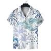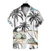 Cardigan Casual de Verão Masculino para Exportação 2025 com Lapela de Manga Curta e Estampa de Coco, Camisa Floral Havaiana Europeia e Americana para Homens