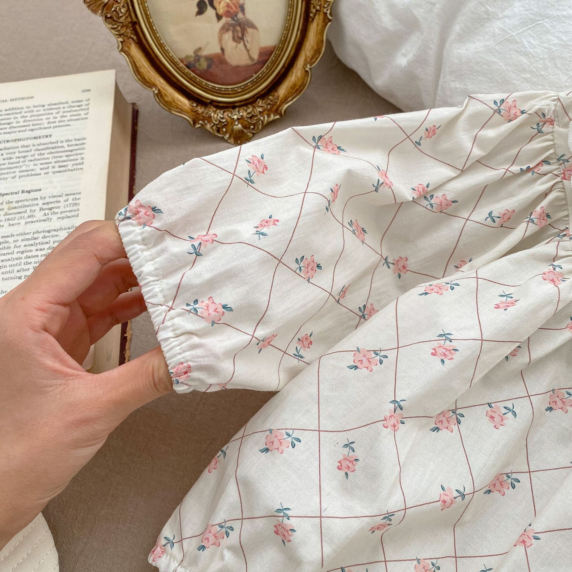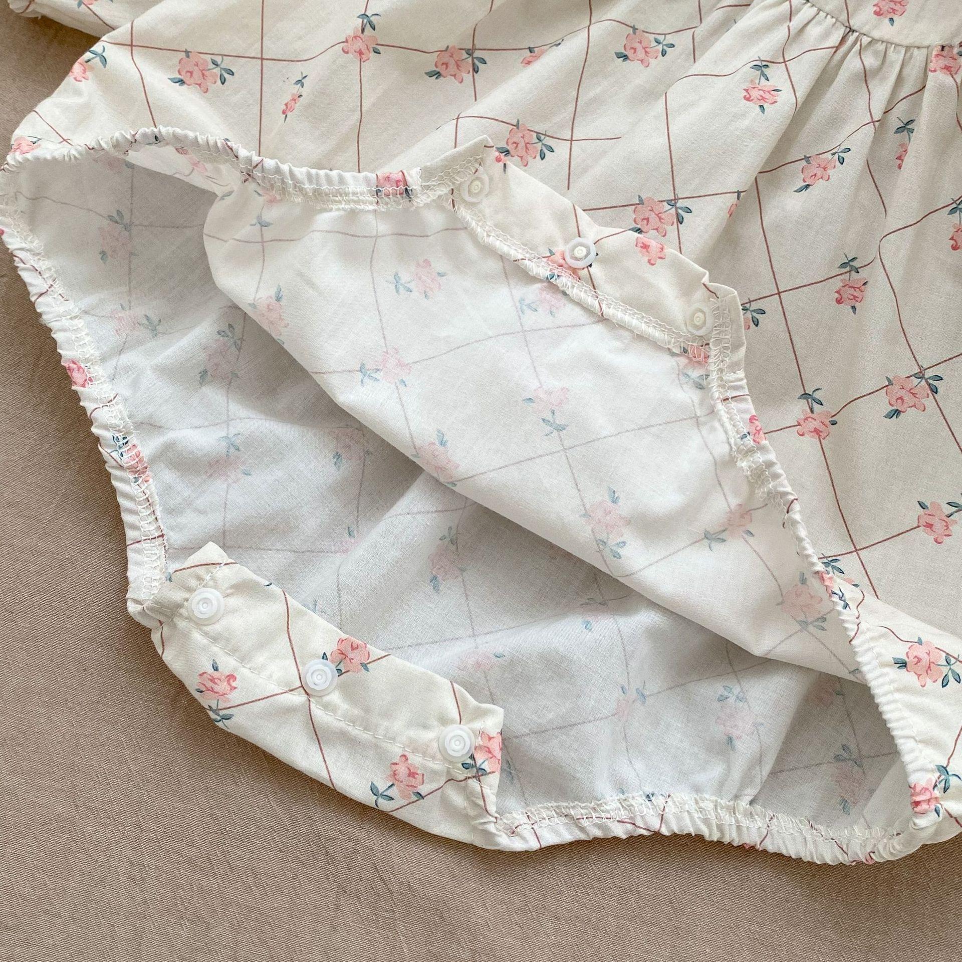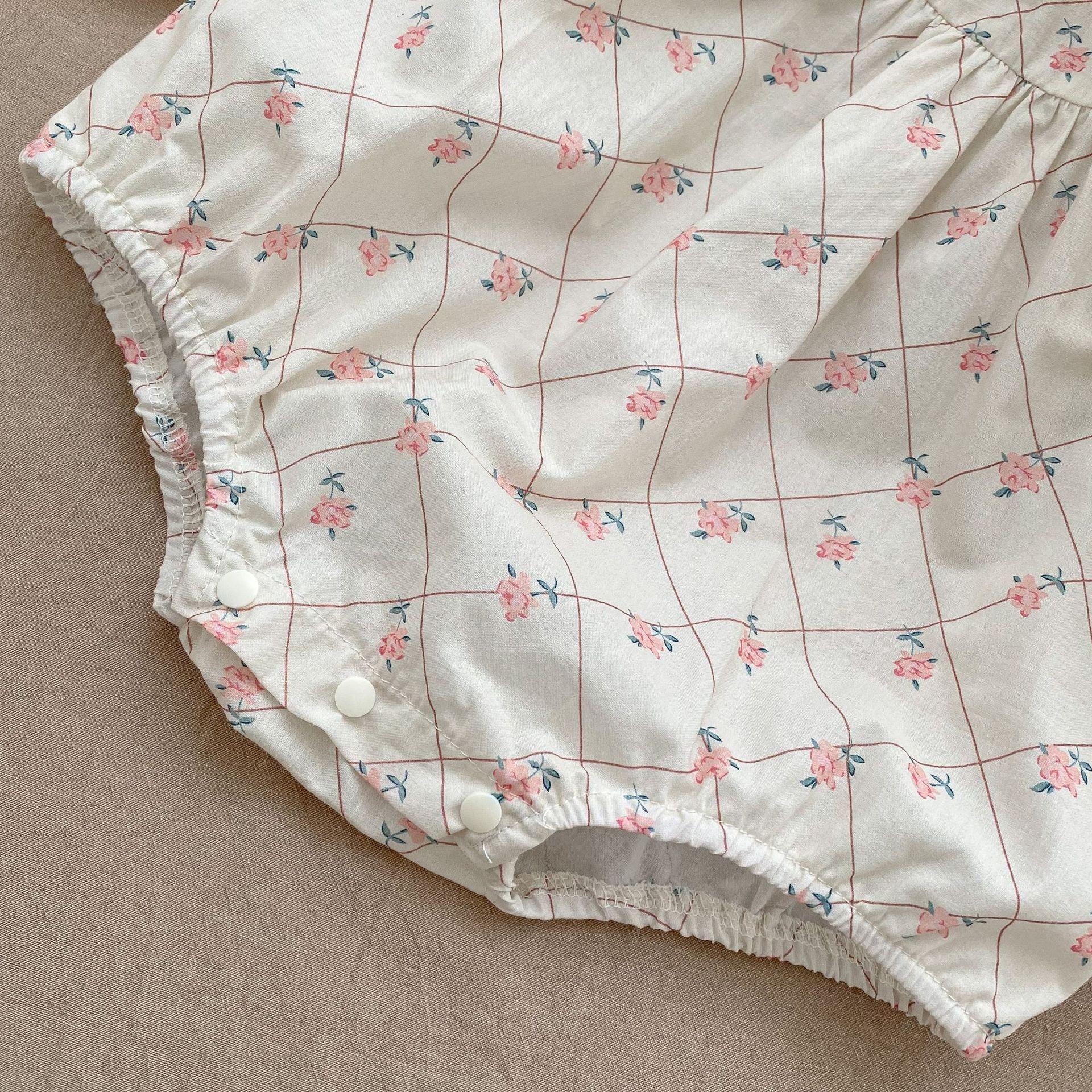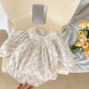 Ins2023 roupas de bebê para meninas, macacão triangular, gola de renda, elegante, pequeno, floral, roupas para engatinhar