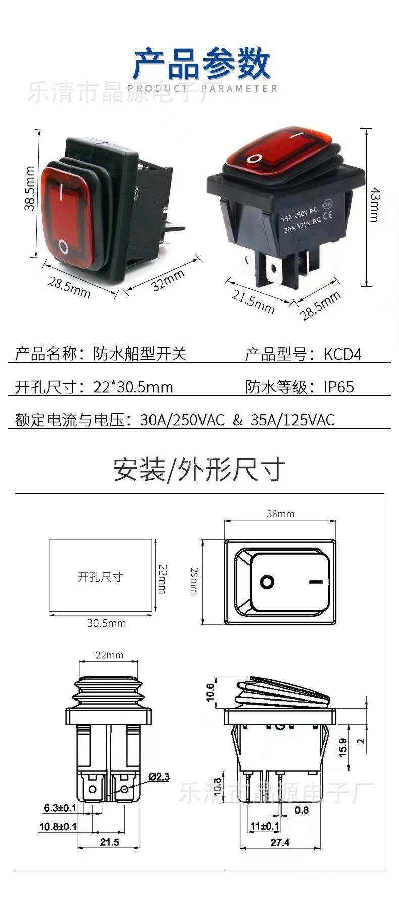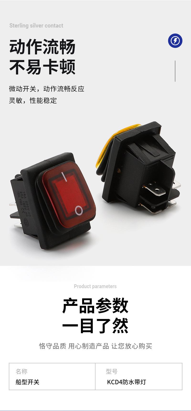 Compre Interruptor balancim KCD4 impermeável 2/3 engrenagem impermeável 4 pés com interruptor balancim leve grande contato prata pés de cobre no atacado no Joom.pro