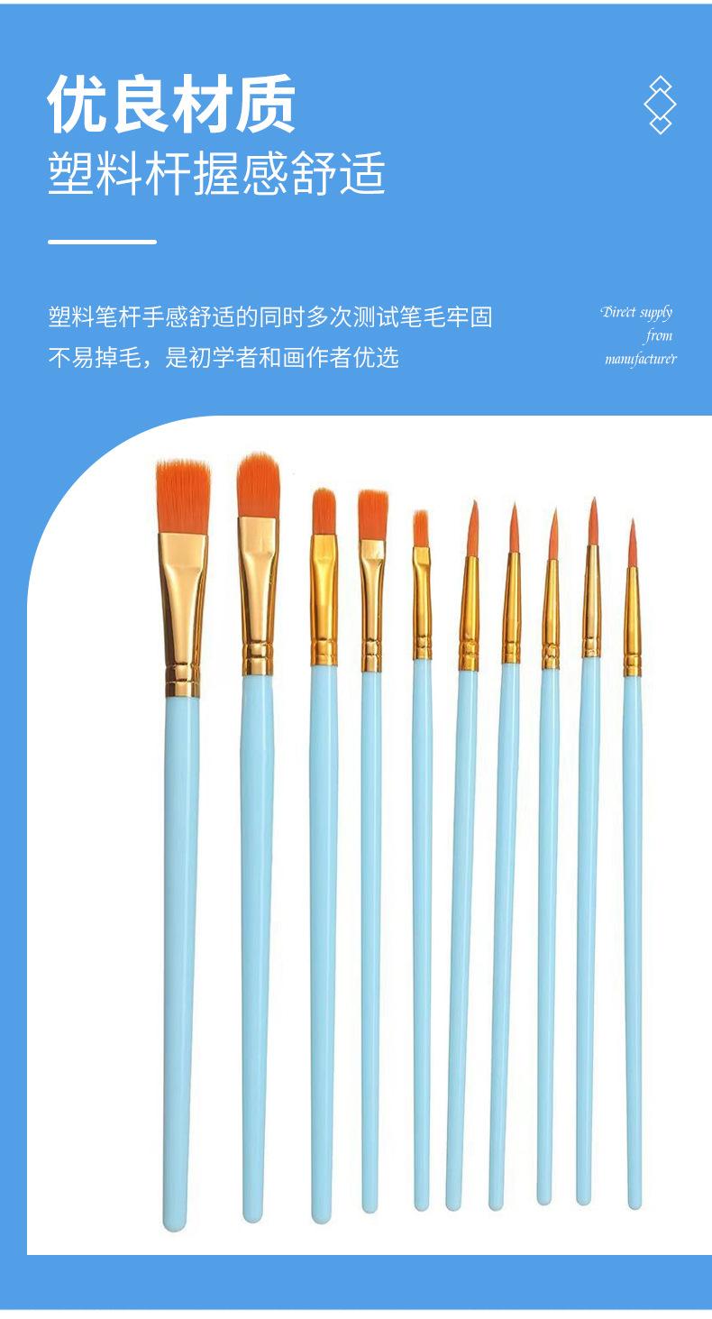 Conjunto de 10 Pincéis de Tinta a Óleo Azuis com Cabo de Plástico Pintura Aquarela Arte Pintada à Mão Pintura a Óleo Pincel Yangzhou