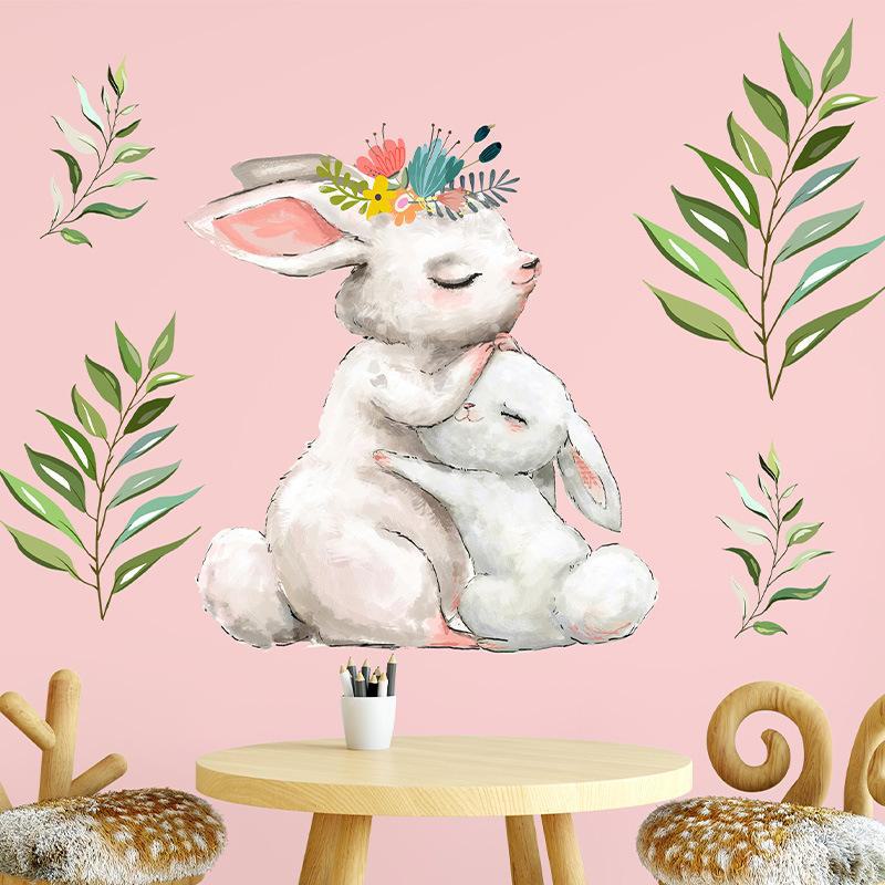 Adesivos de parede de abraço de coelho sala de estar quarto quarto infantil adesivos decorativos autoadesivos