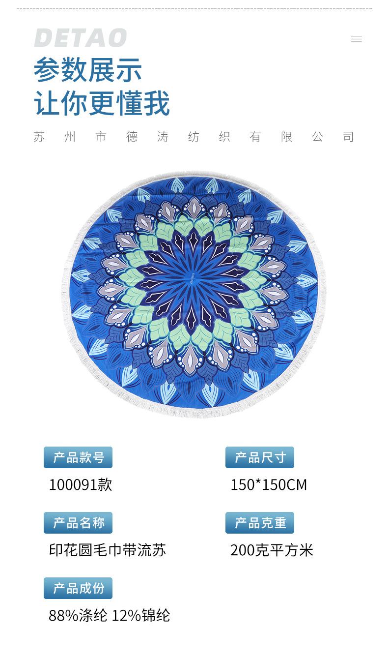 Toalha redonda de impressão exclusiva transfronteiriça com borla impressão digital por transferência de calor com borla toalha redonda à beira-mar pode cobrir toalha de banho