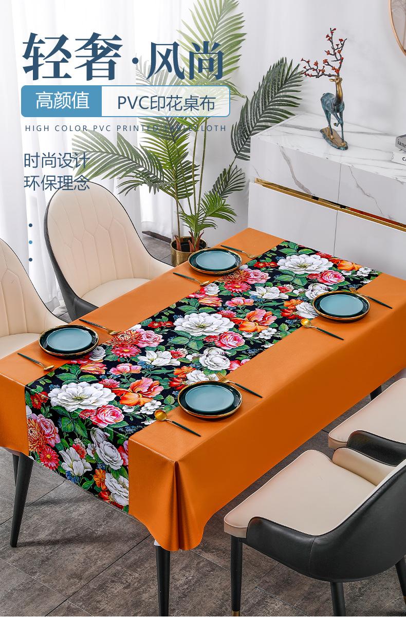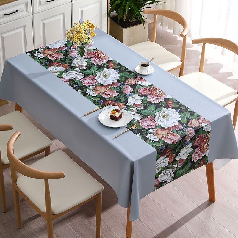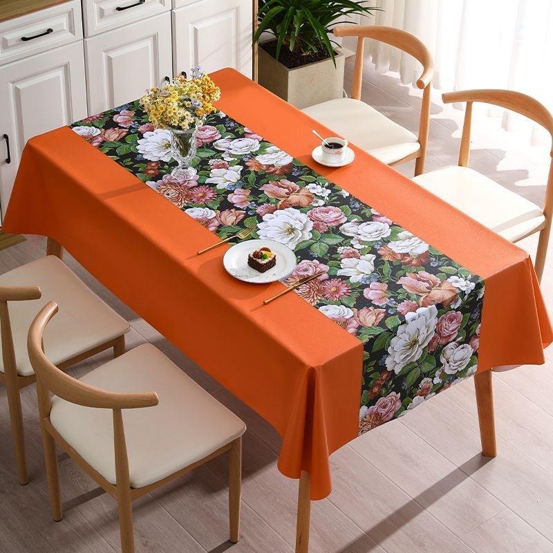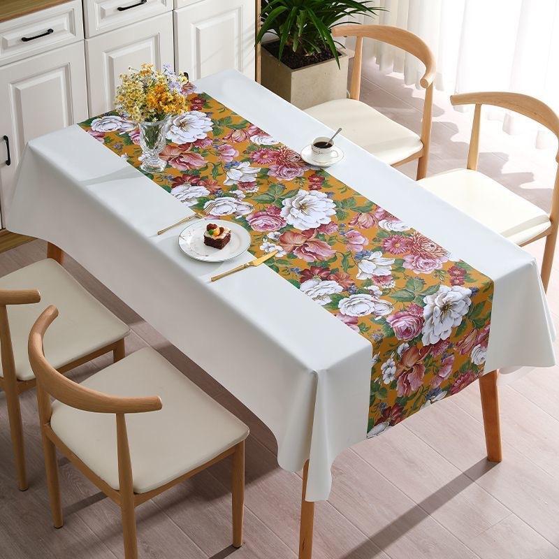 Toalha de mesa doméstica à prova d'água e à prova de óleo Anti-escaldante Toalha de mesa retangular não lavável Toalha de mesa de centro de estilo avançado Flor simples