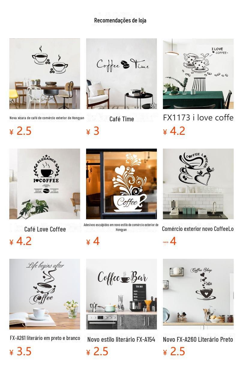 Comércio exterior Clássico criativo xícara de café sala de estar estudo decoração para casa adesivos de parede autoadesivos atacado transfronteiriço FX1089