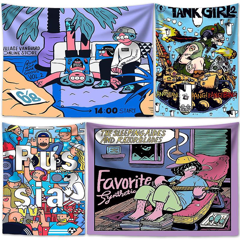 Americano retro tendência ilustração pendurado pano ins menina pendurado pano dormitório renovação decoração pano anime tapeçaria pano de fundo
