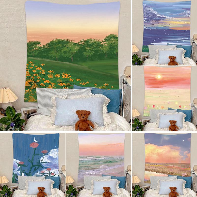 Ins estilo coreano paisagem pintura a óleo pendurado pano primavera e verão atmosfera menina pendurado pano quarto decoração ao vivo pendurado pano