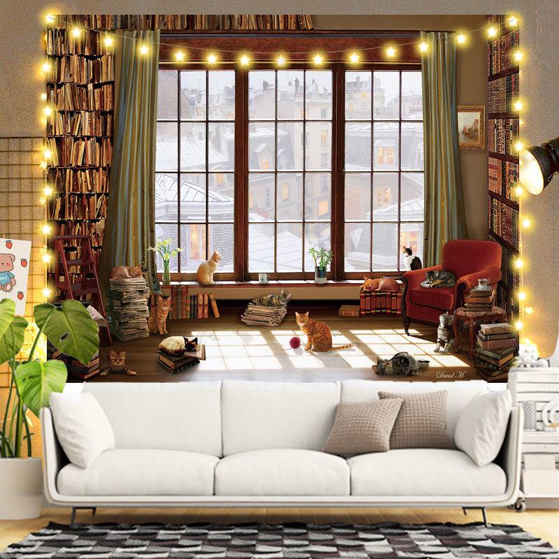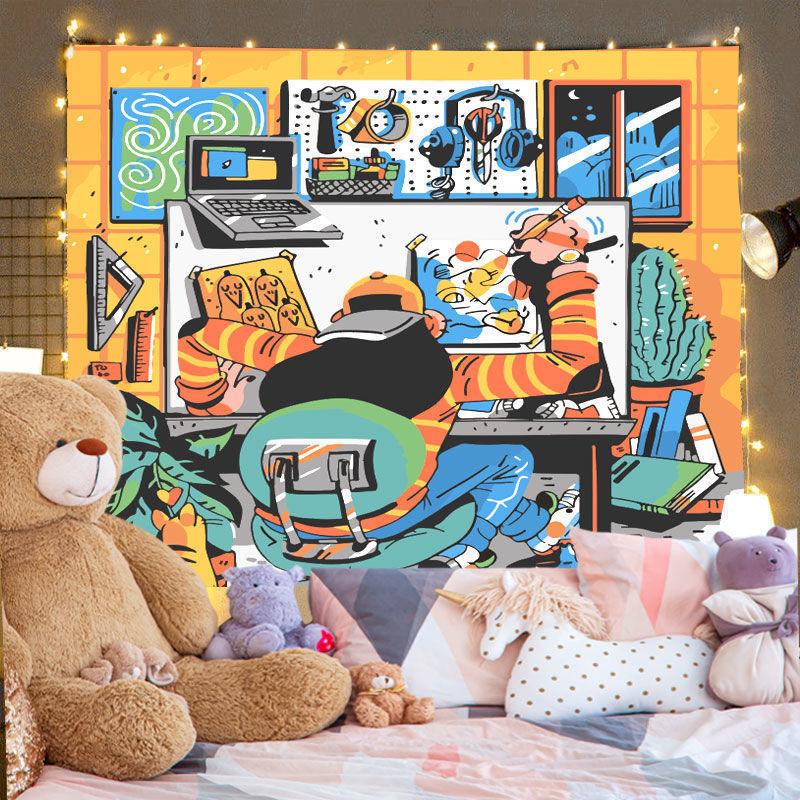 Estilo americano pano pendurado ins fundo pano dormitório renovação pano de parede Internet popular cabeceira quarto snoopy janela tapeçaria decorativa