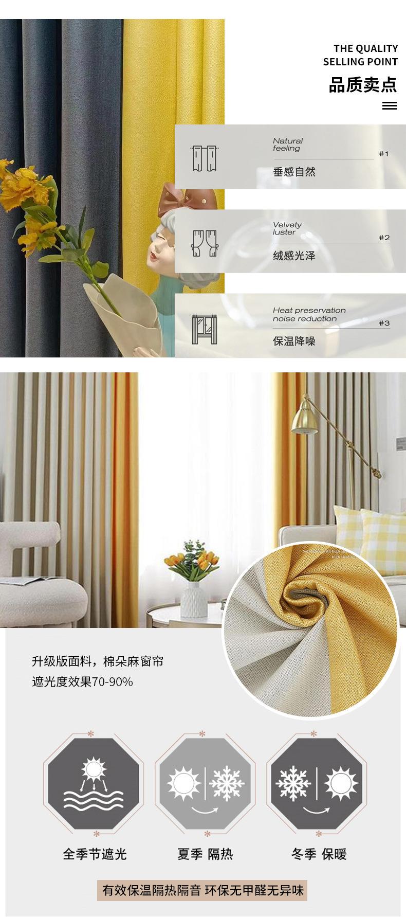 Cortina de linho de algodão nórdico Quarto simples sombreamento Piso Cortina Sala de estar Varanda pano de cortina de pano engrossado