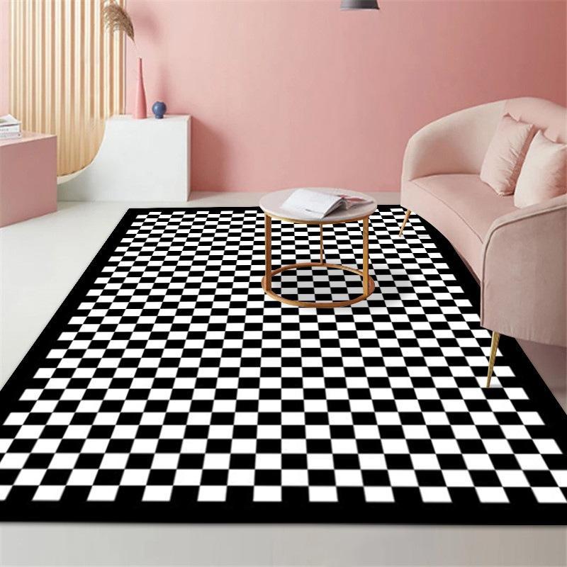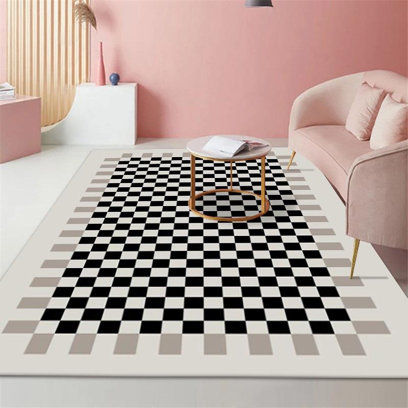 Cross-border imitação cashmere tapete sala de estar estilo japonês silent light luxo casa quarto de cabeceira xadrez mesa de centro tapete