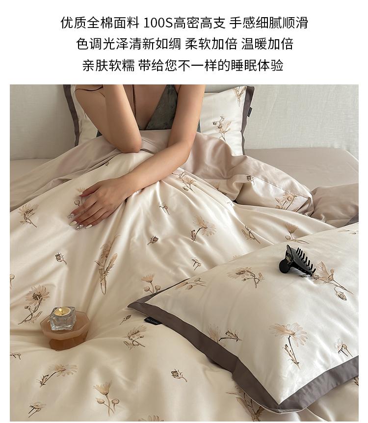 Pure Cotton 100s high-count long-staple cotton quatro peças retro flor impressão digital capa colcha de algodão 1.8m roupa de cama