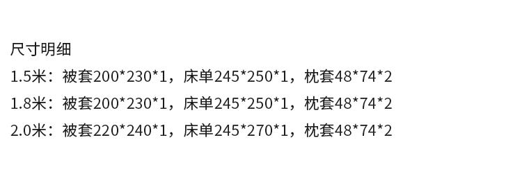 1.5 m (suitable for quilt core 200*230), 1.8 m (suitable for quilt core 200*230), 2.0 m (suitable for quilt core 220*240)
