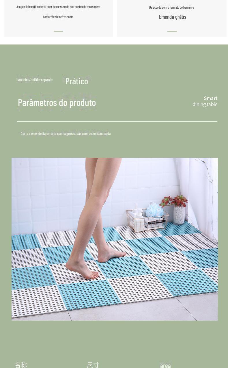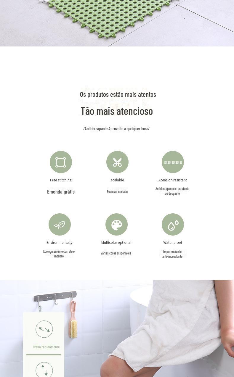 Tapete Antiderrapante para Banheiro Tapete de Chão Grande Emendado para Banheiro Cozinha Banho Chuveiro Banheiro Vaso Sanitário Plástico Impermeável Tapete para os Pés