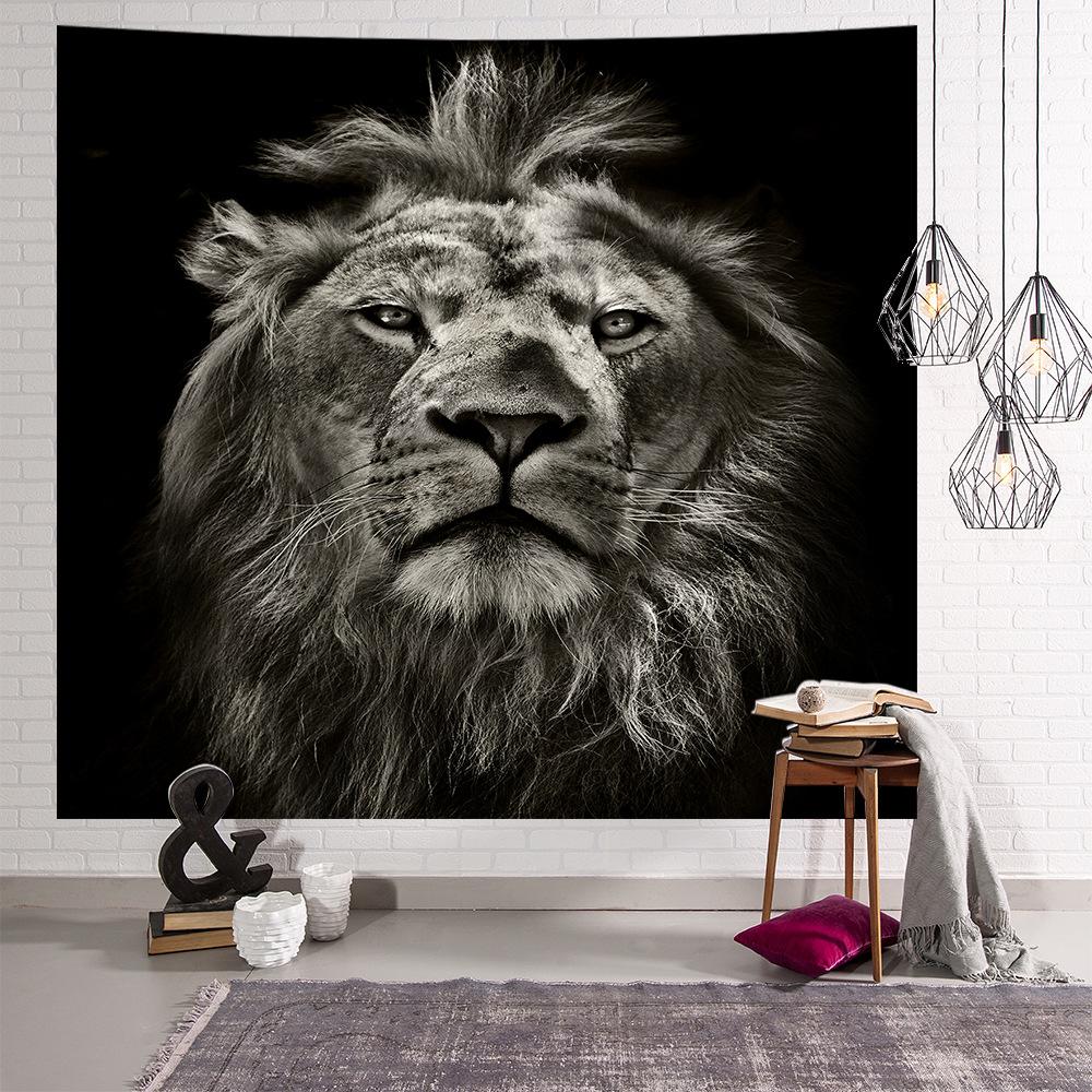 Nordic ins casa americana preto e branco animal leão tapeçaria tecido decorativo quarto de fundo de cabeceira pano impresso pendurado pintura