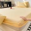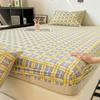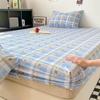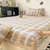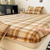 Estilo japonês estilo creme lavado lençol de três peças simples xadrez colcha único Simmons colchão capa protetora