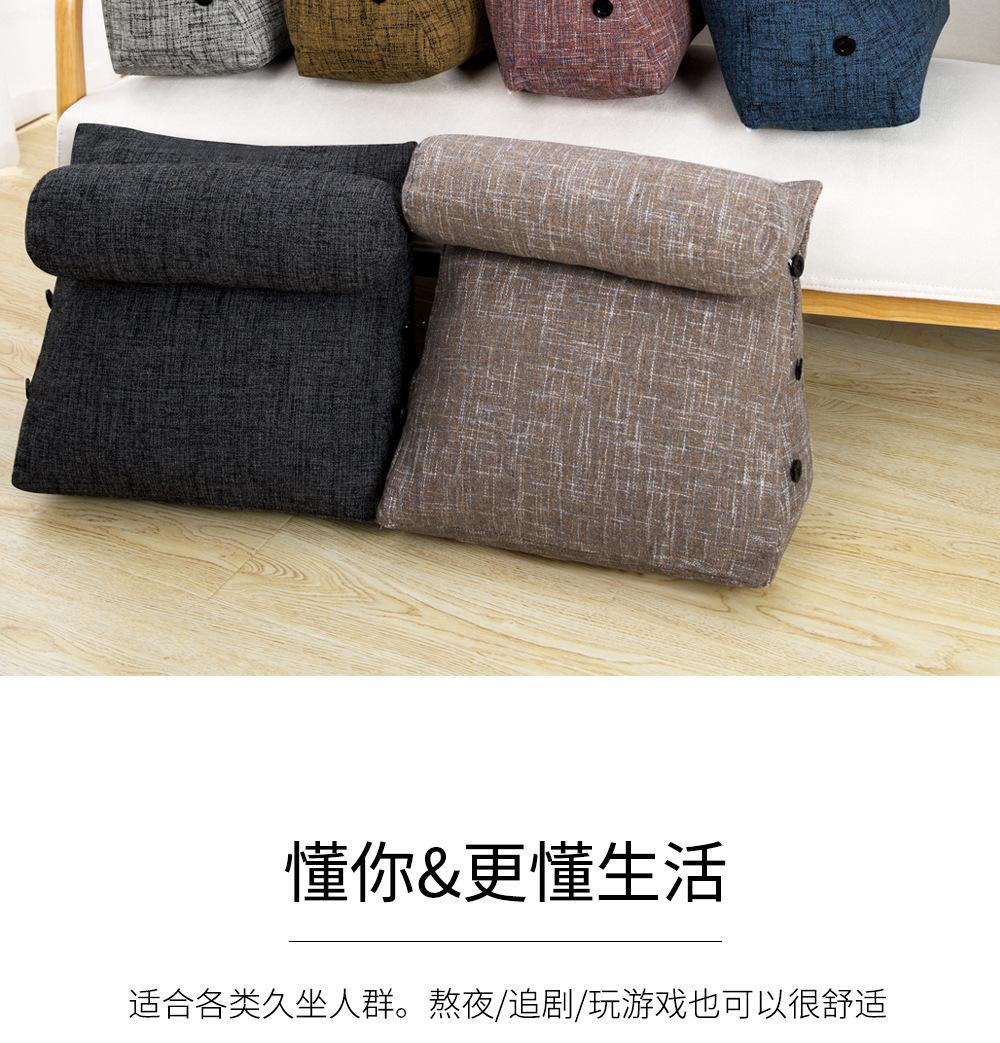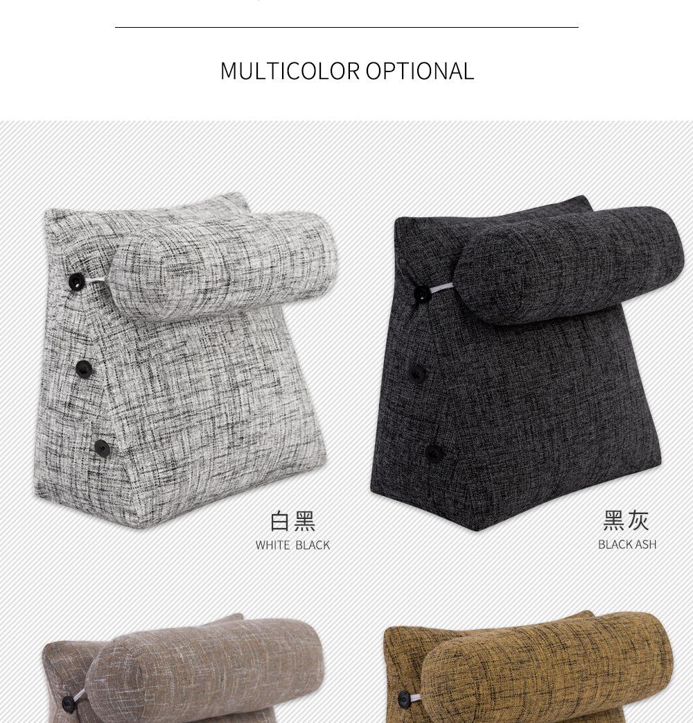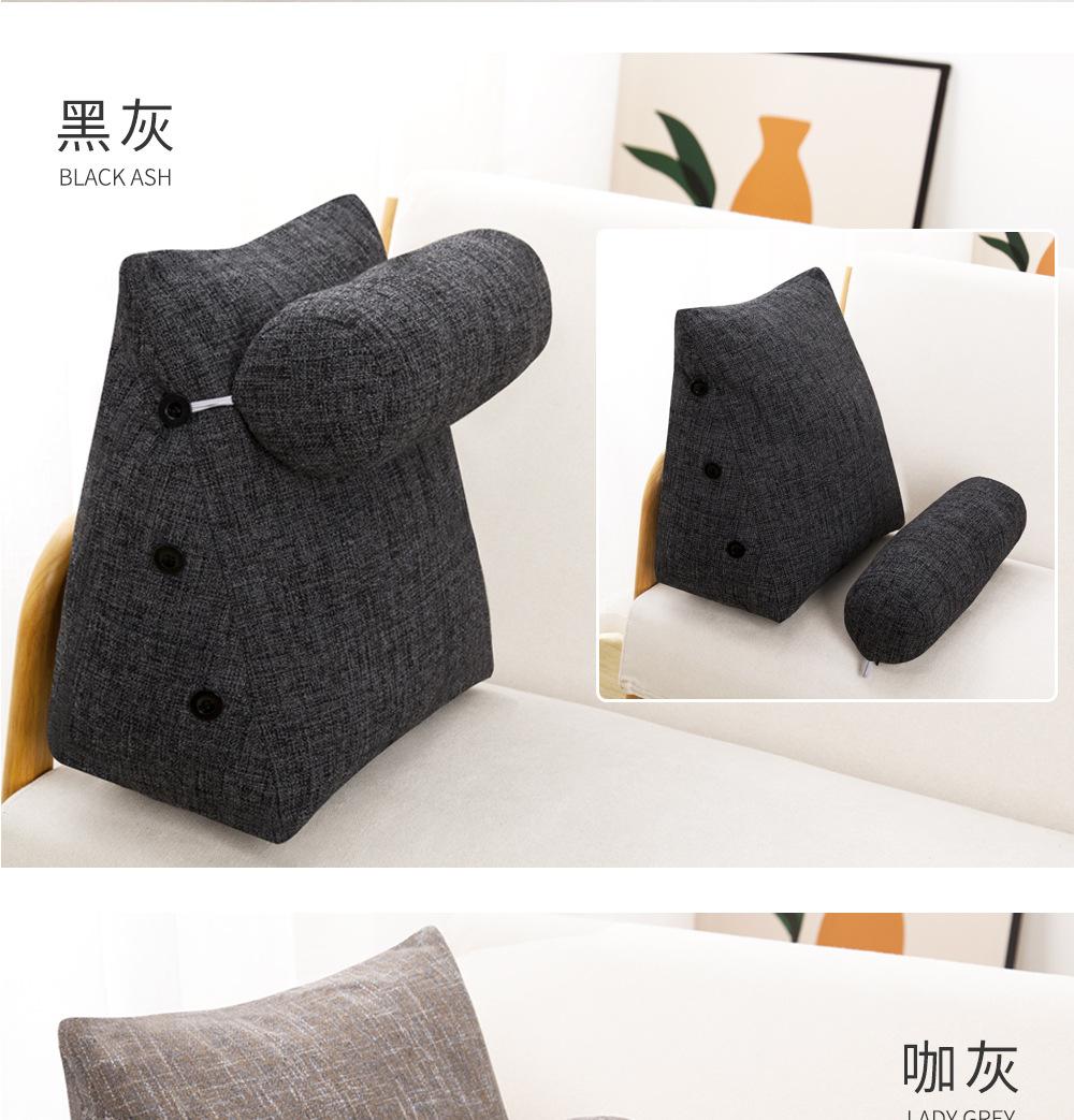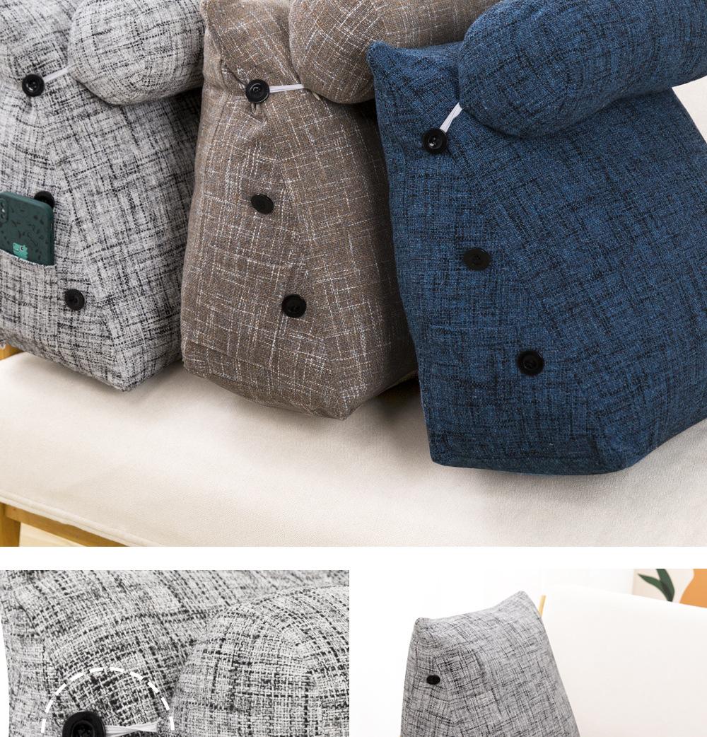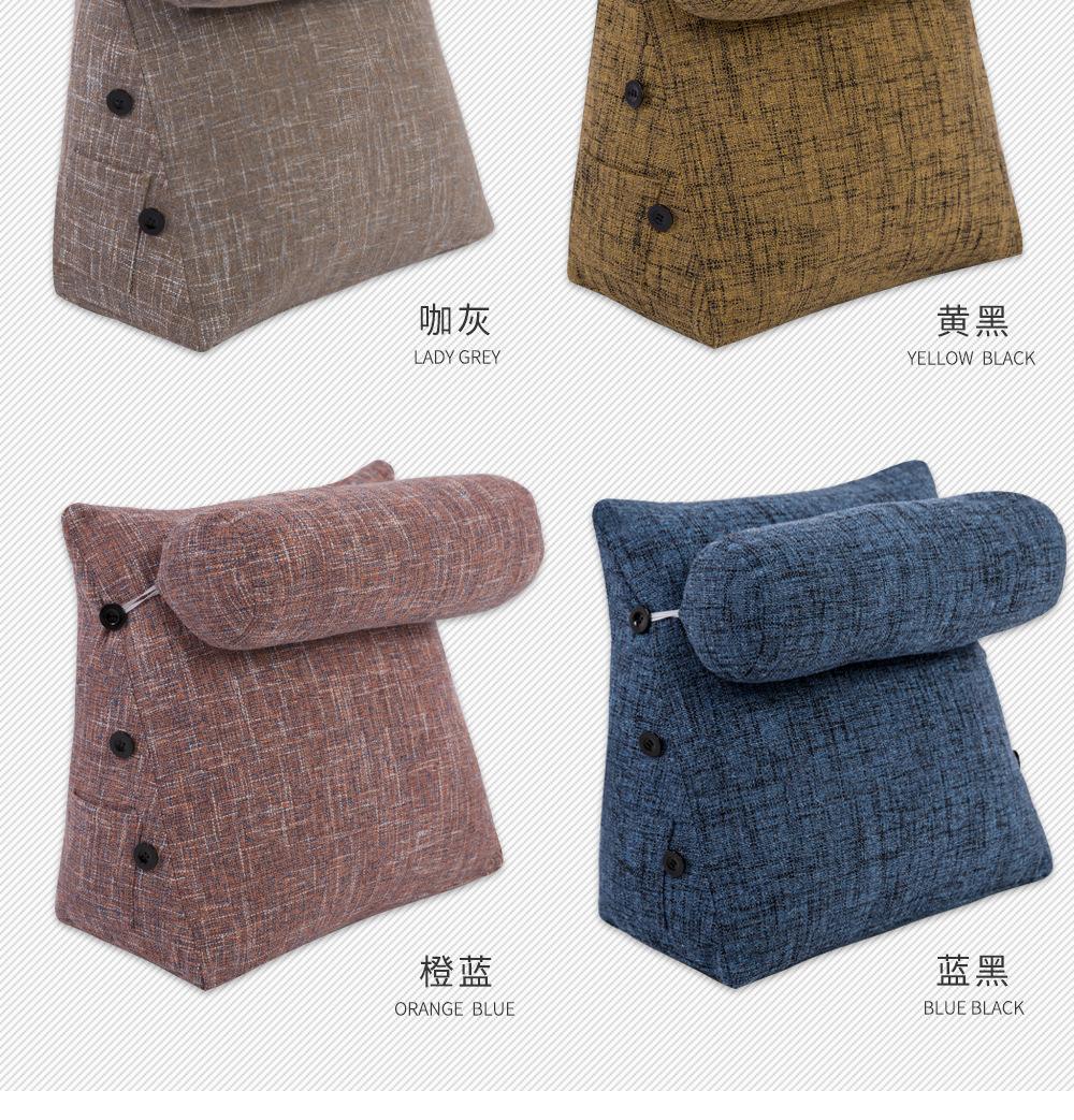 Cor grossa de linho travesseiro cama cama cama soft bag triângulo grande encosto sofá travesseiro dormitório quarto cintura apoio travesseiro
