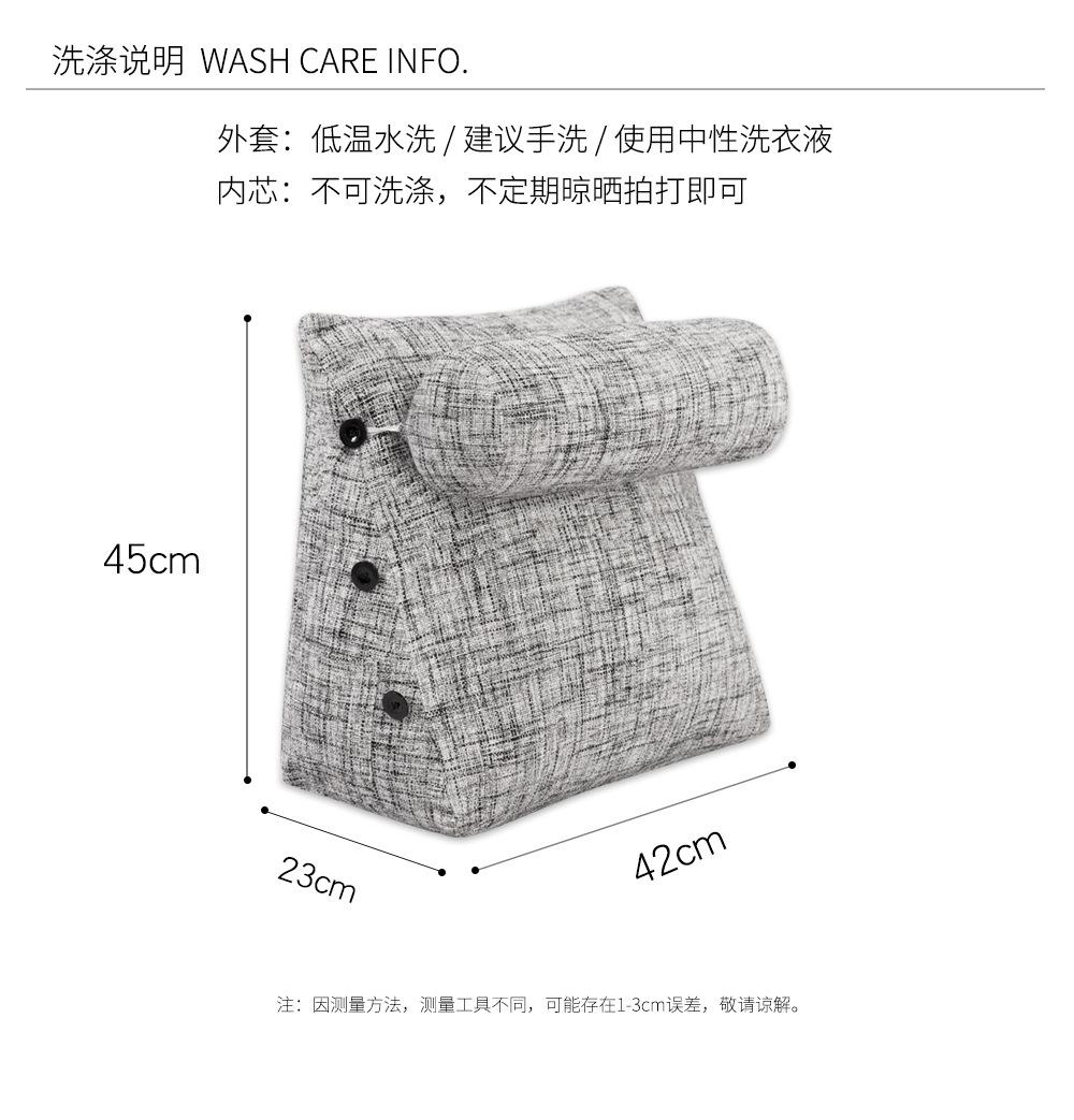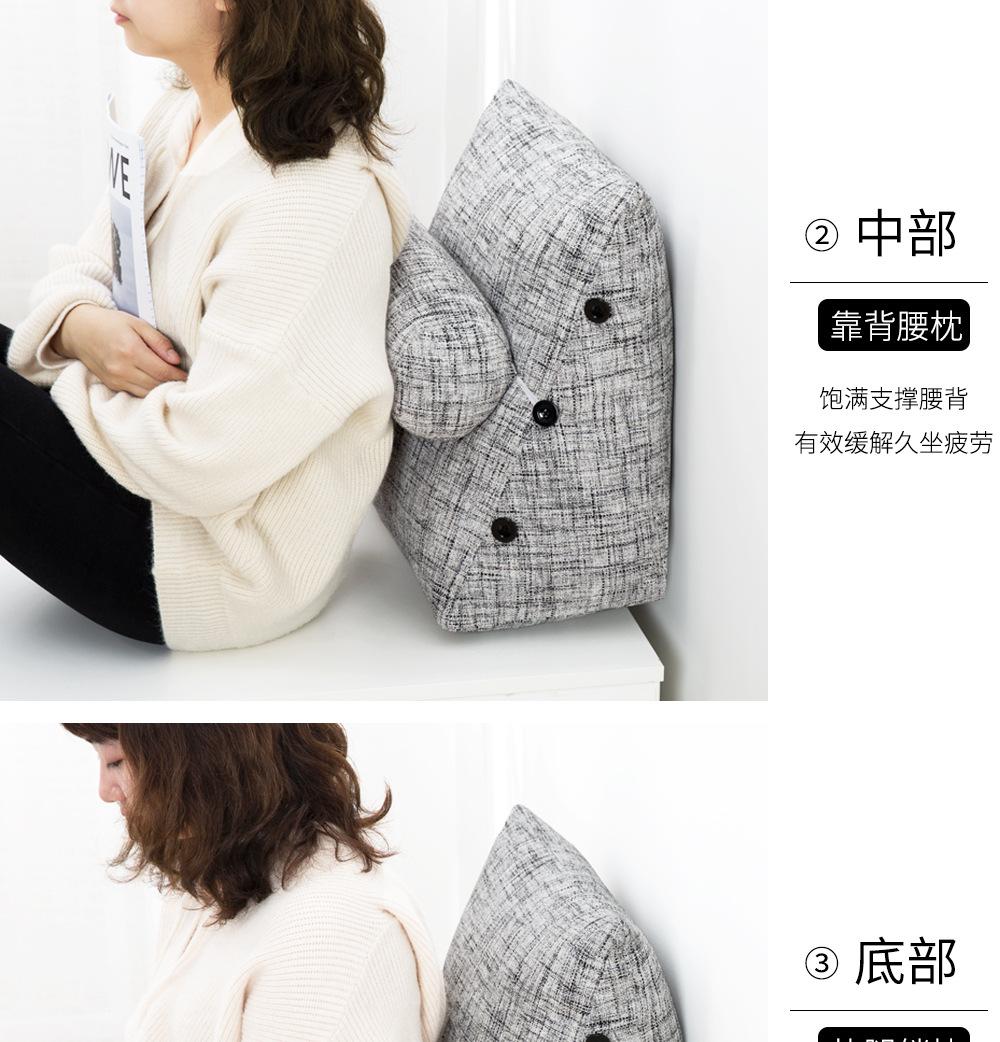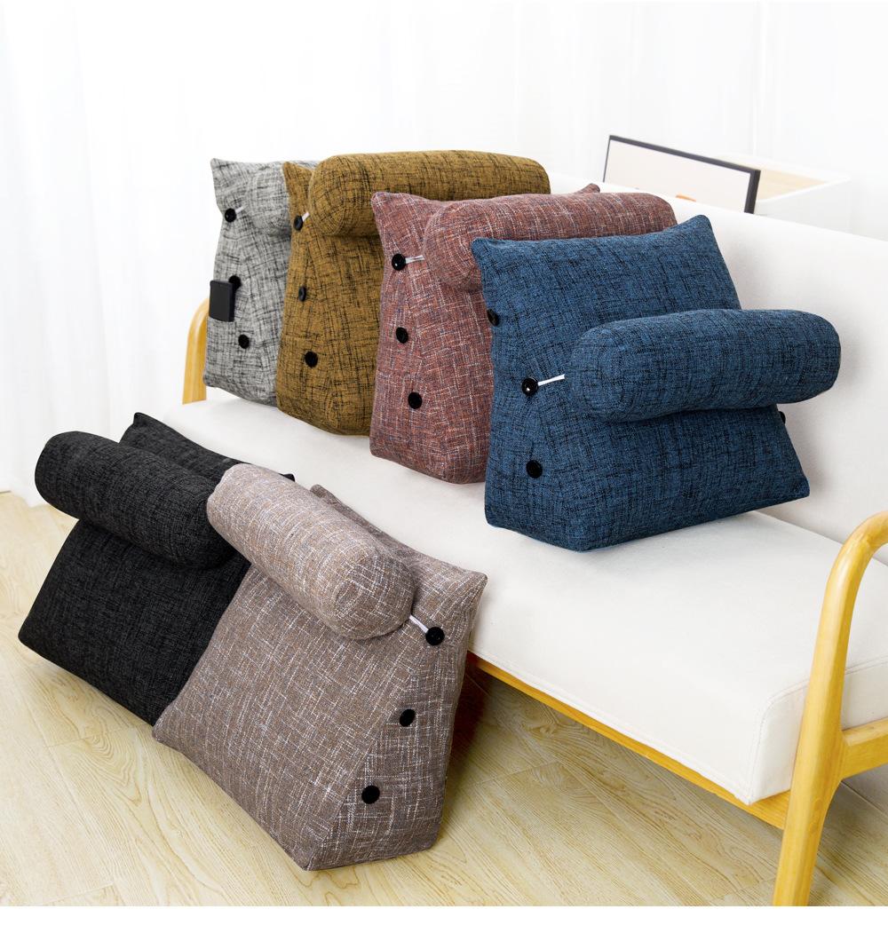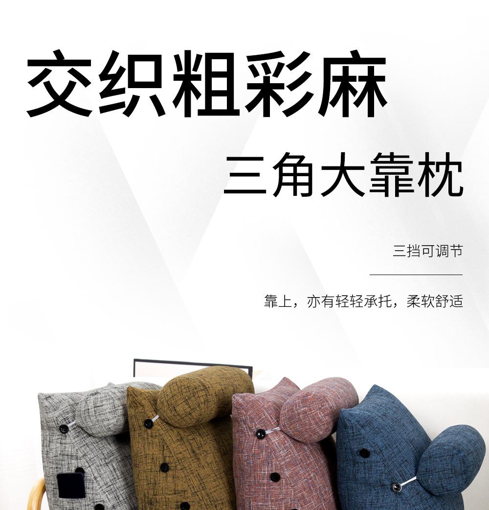 Cor grossa de linho travesseiro cama cama cama soft bag triângulo grande encosto sofá travesseiro dormitório quarto cintura apoio travesseiro