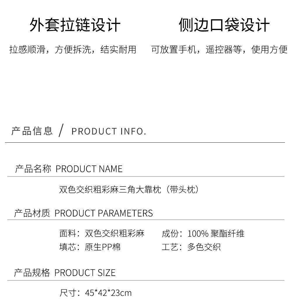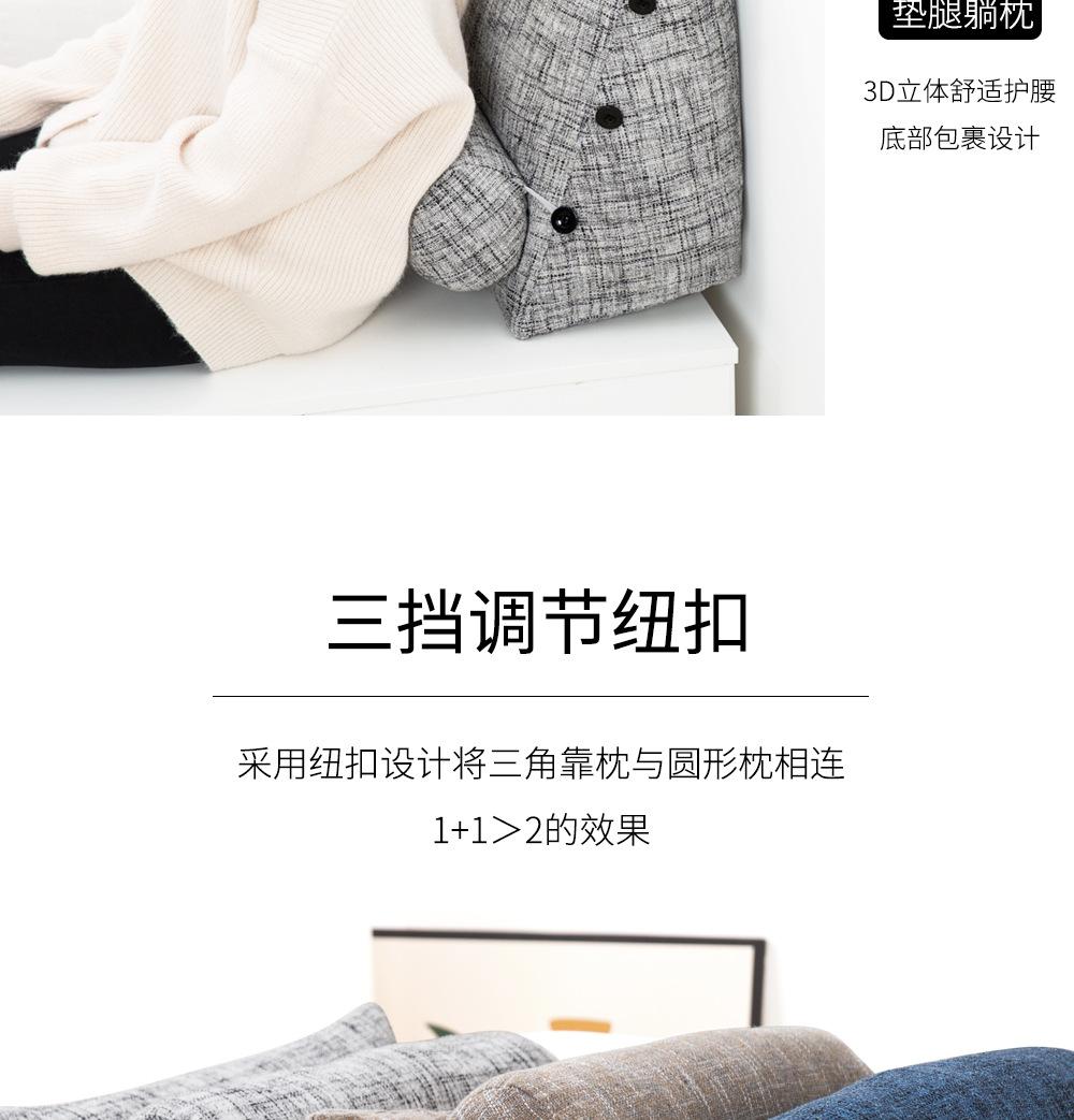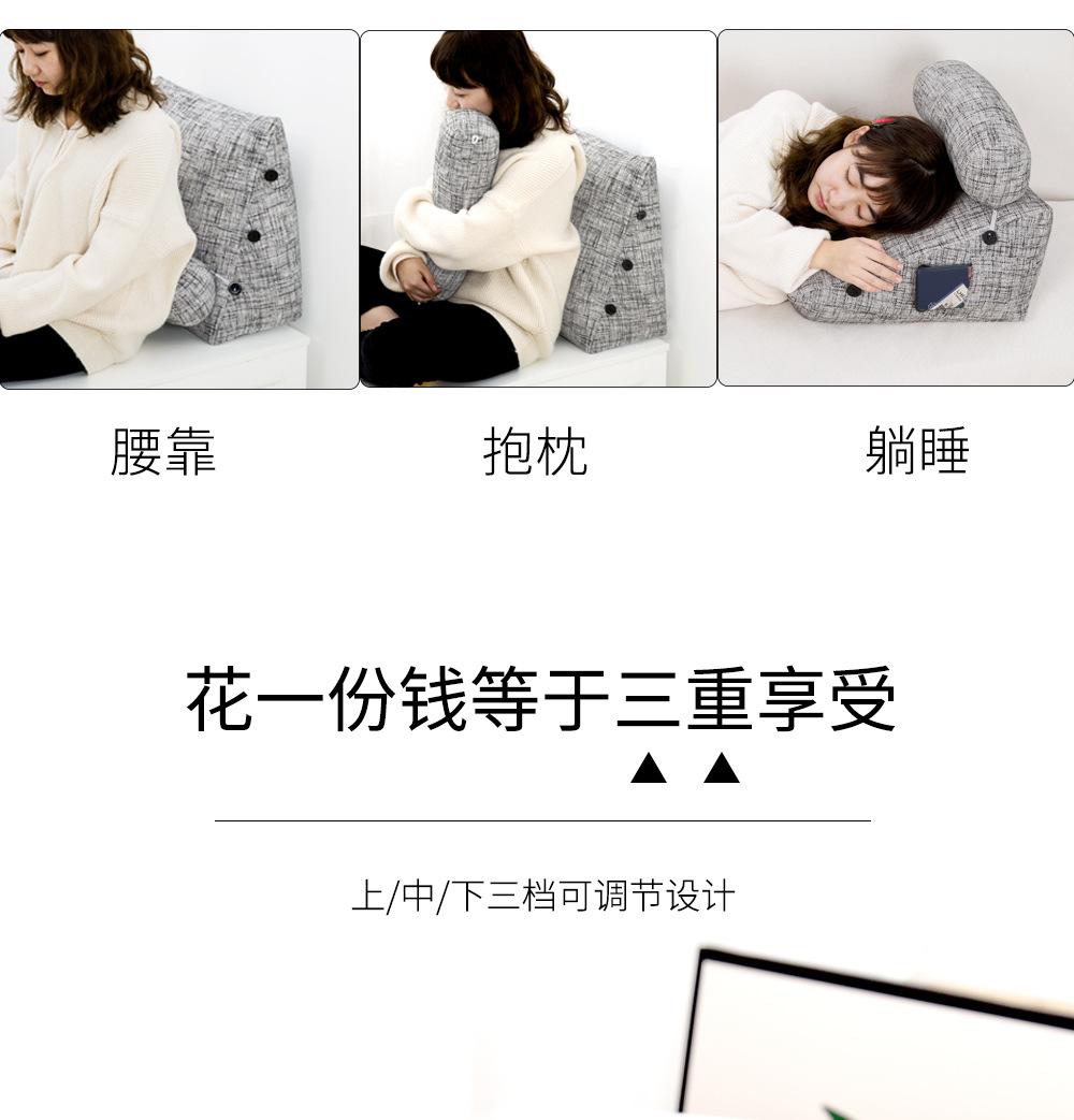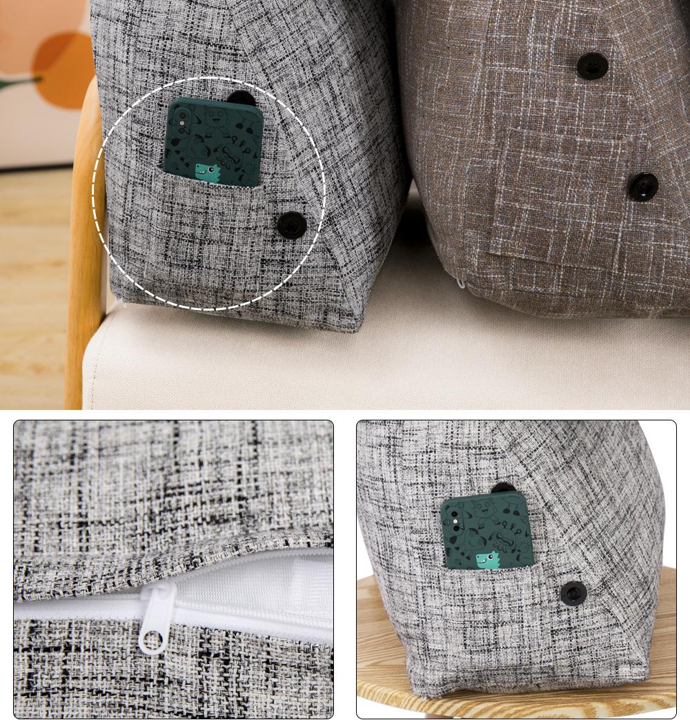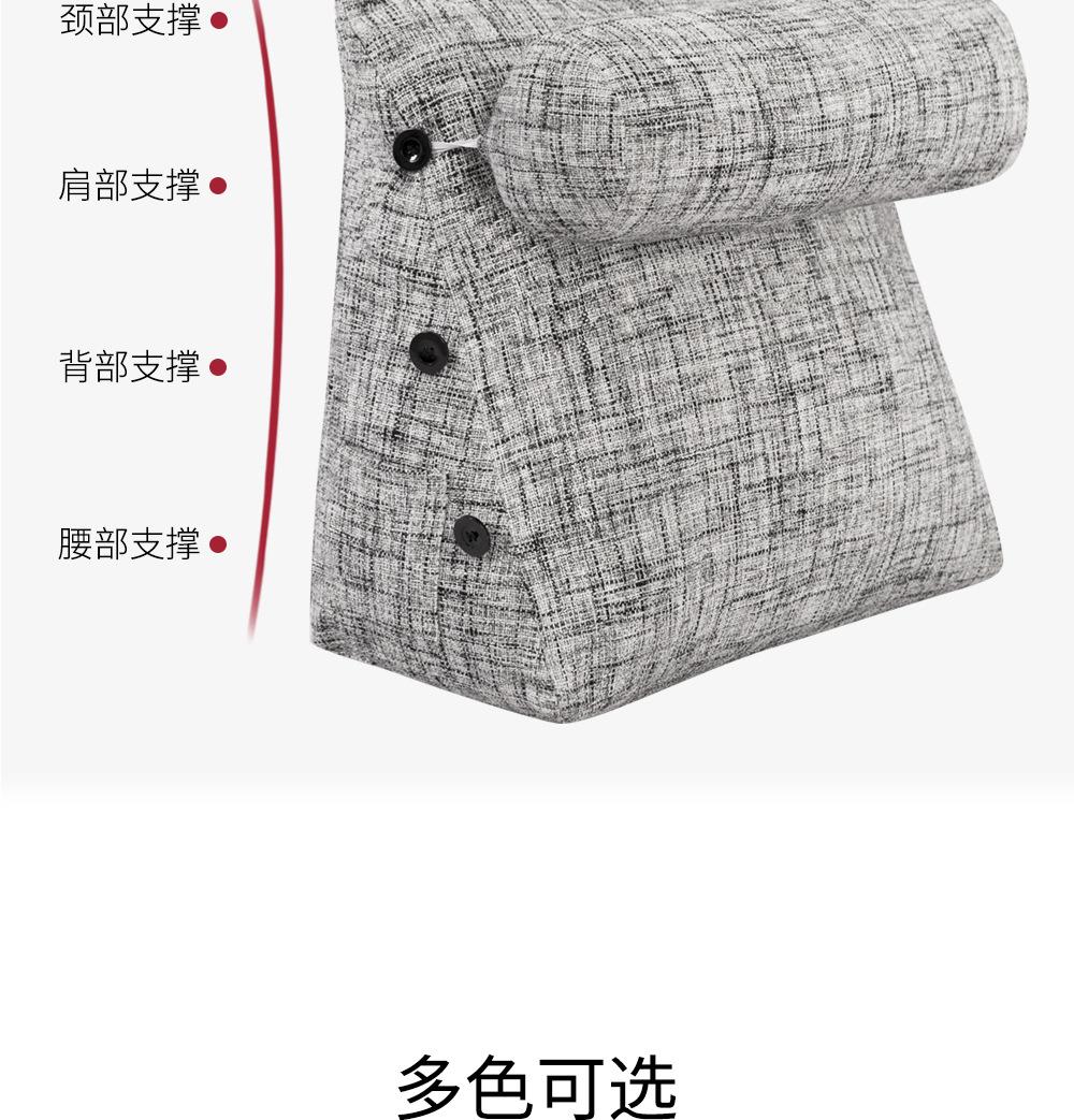 Cor grossa de linho travesseiro cama cama cama soft bag triângulo grande encosto sofá travesseiro dormitório quarto cintura apoio travesseiro