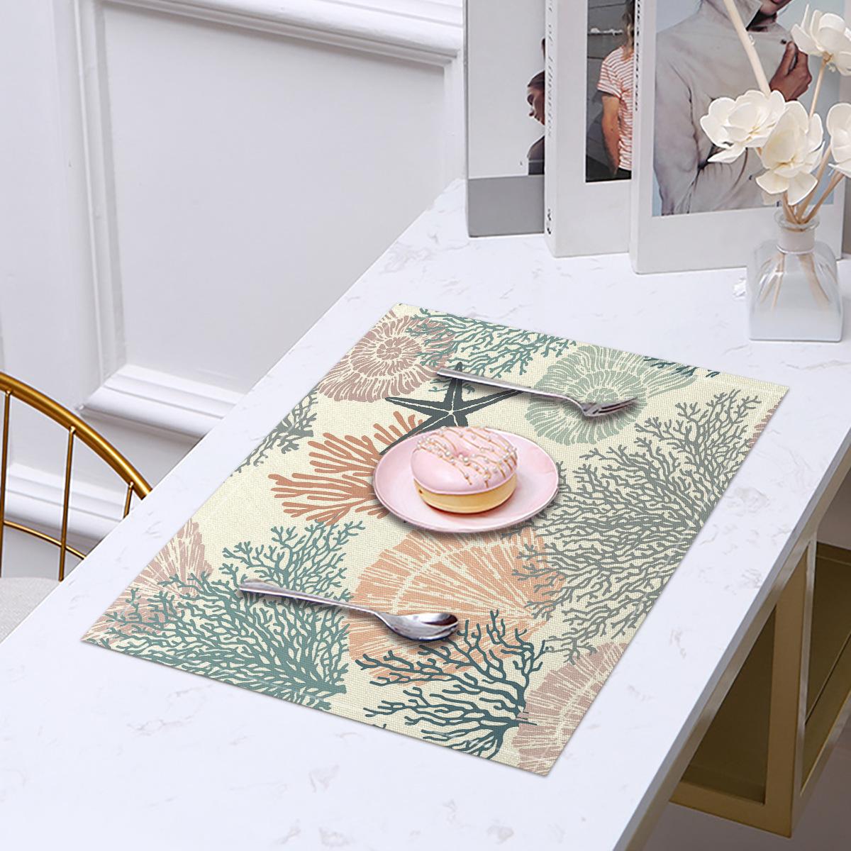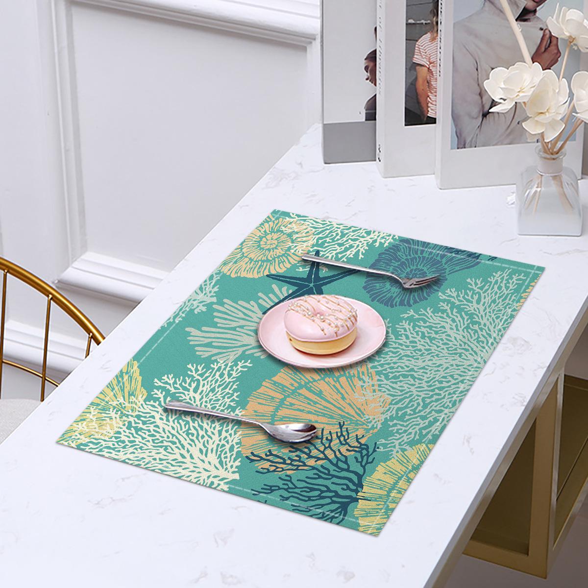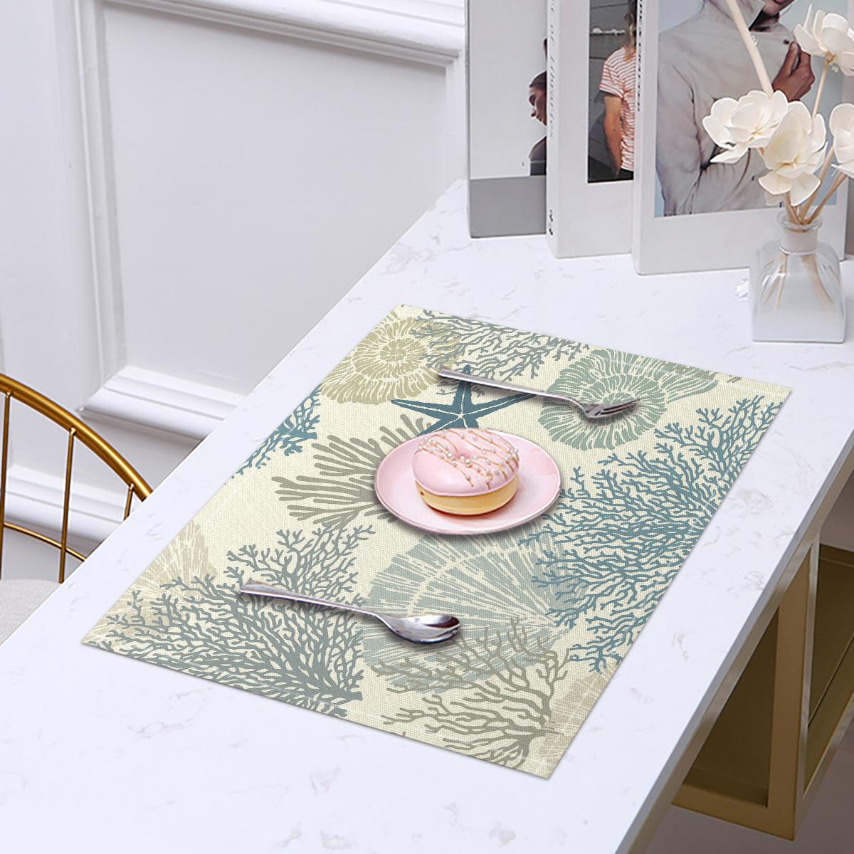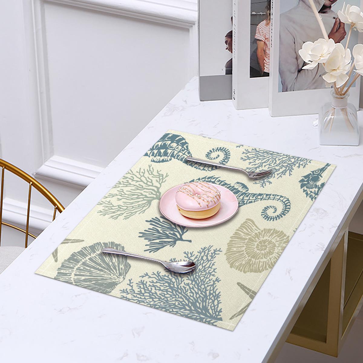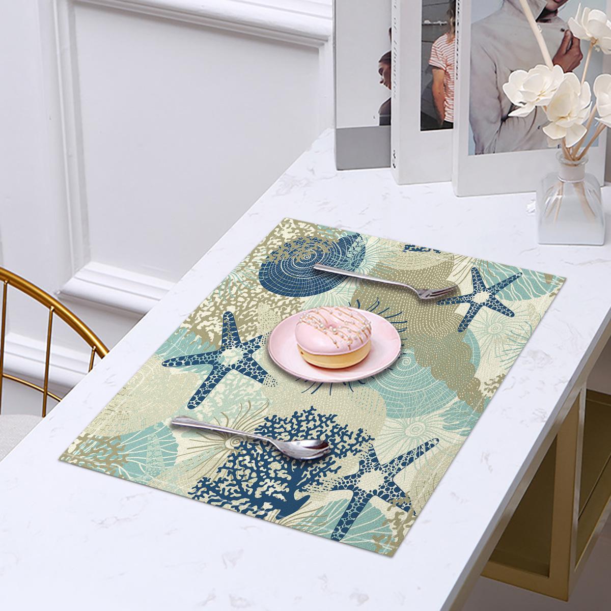 Cross-border Linho Placemat Marine Life Series Placemat Home Kitchen Isolamento térmico Coaster Anti-escalding Linen Western Placemat