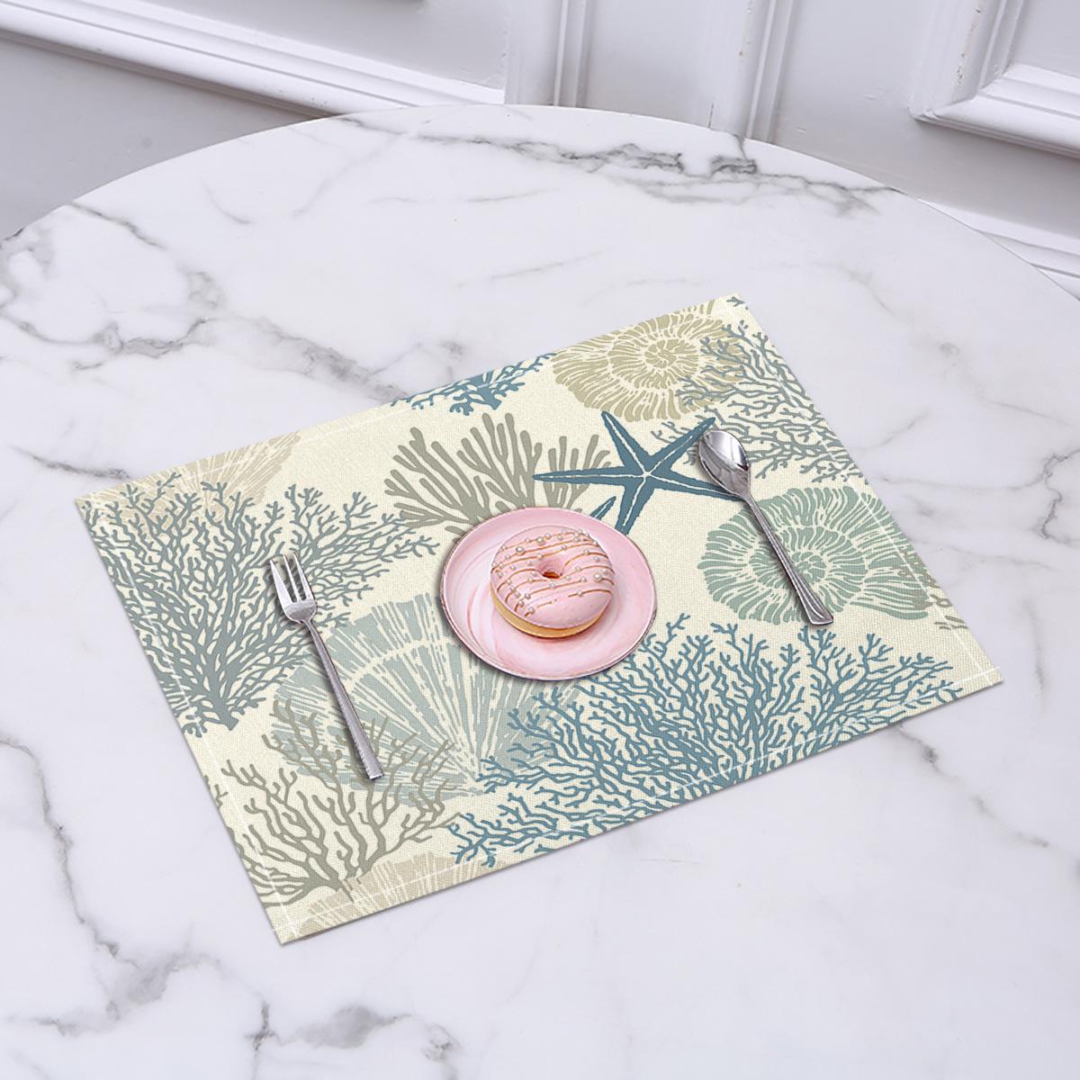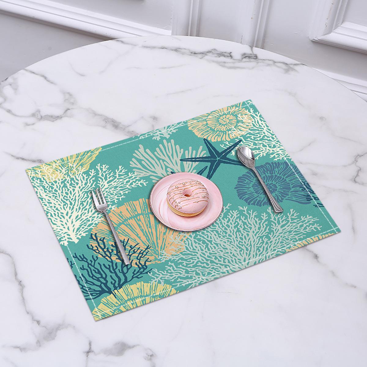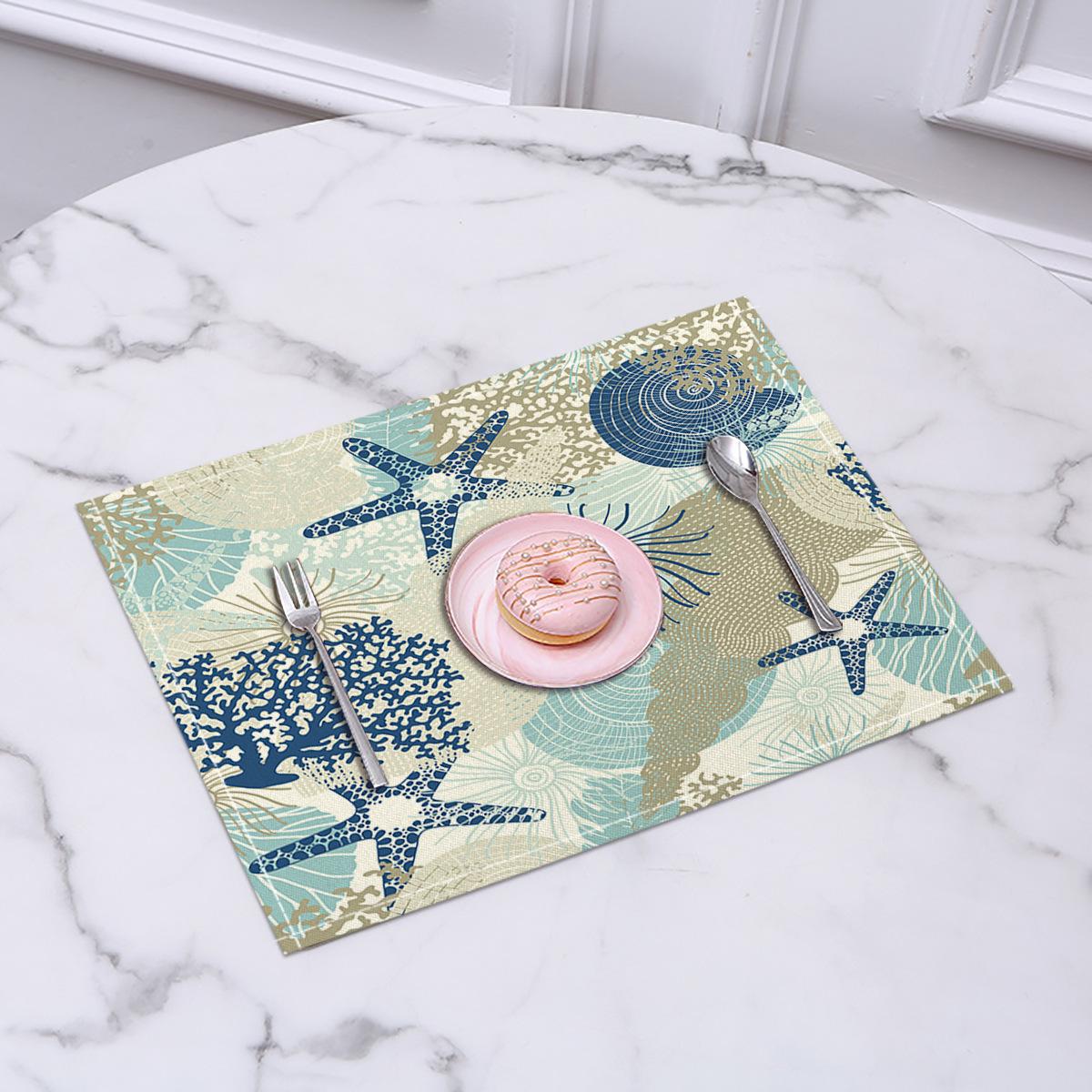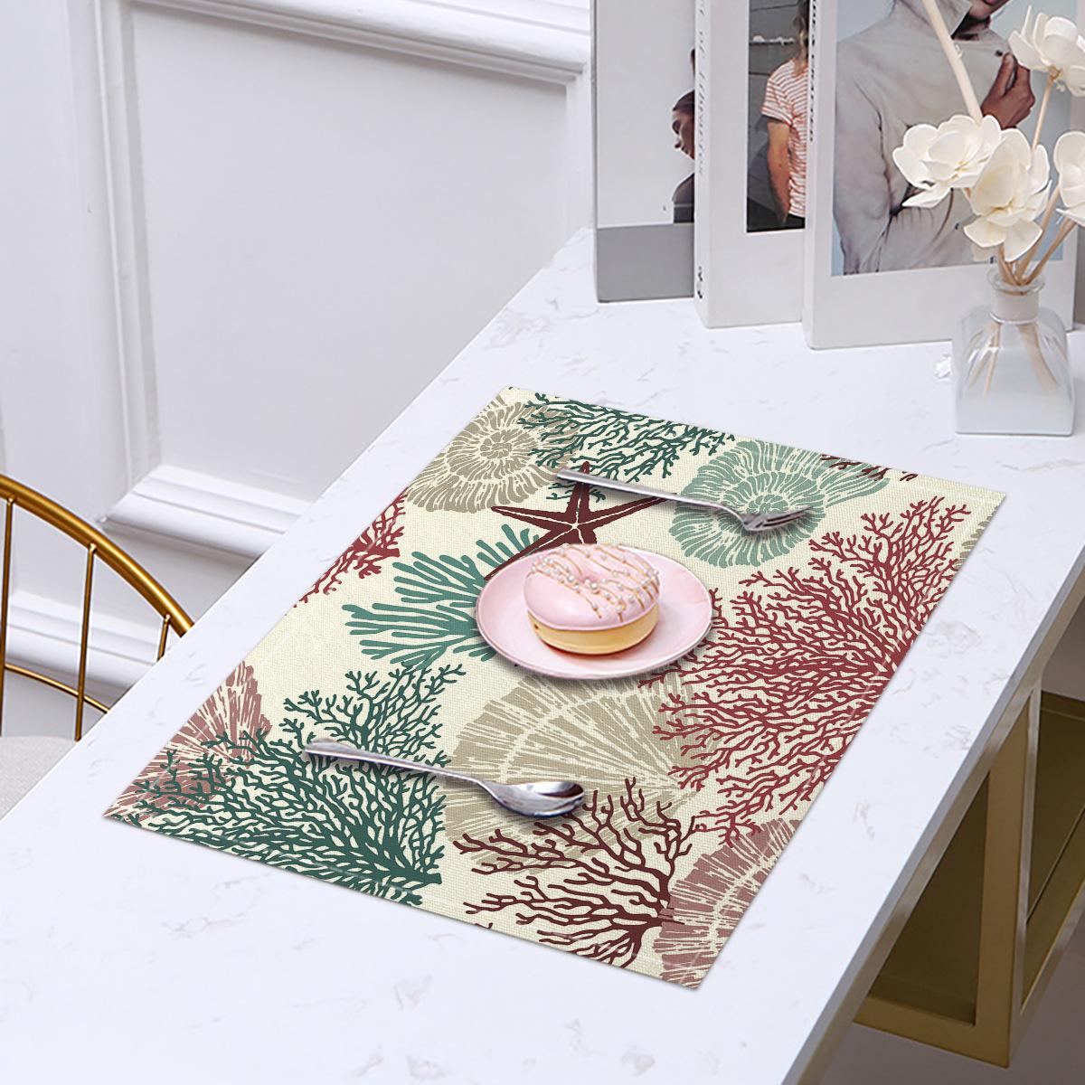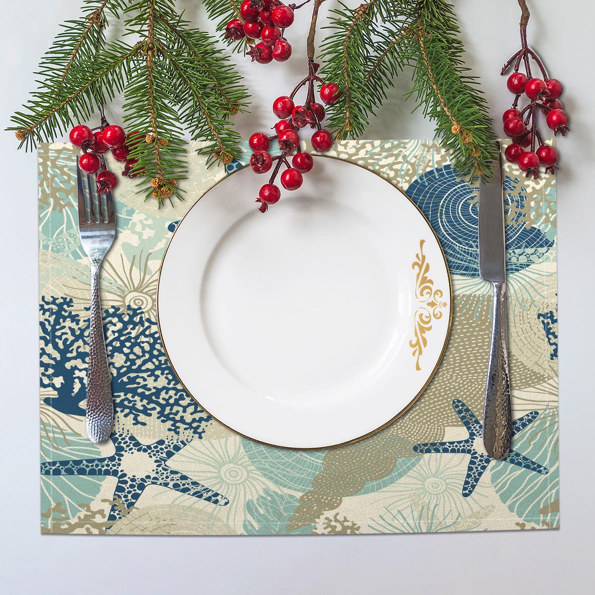 Cross-border Linho Placemat Marine Life Series Placemat Home Kitchen Isolamento térmico Coaster Anti-escalding Linen Western Placemat