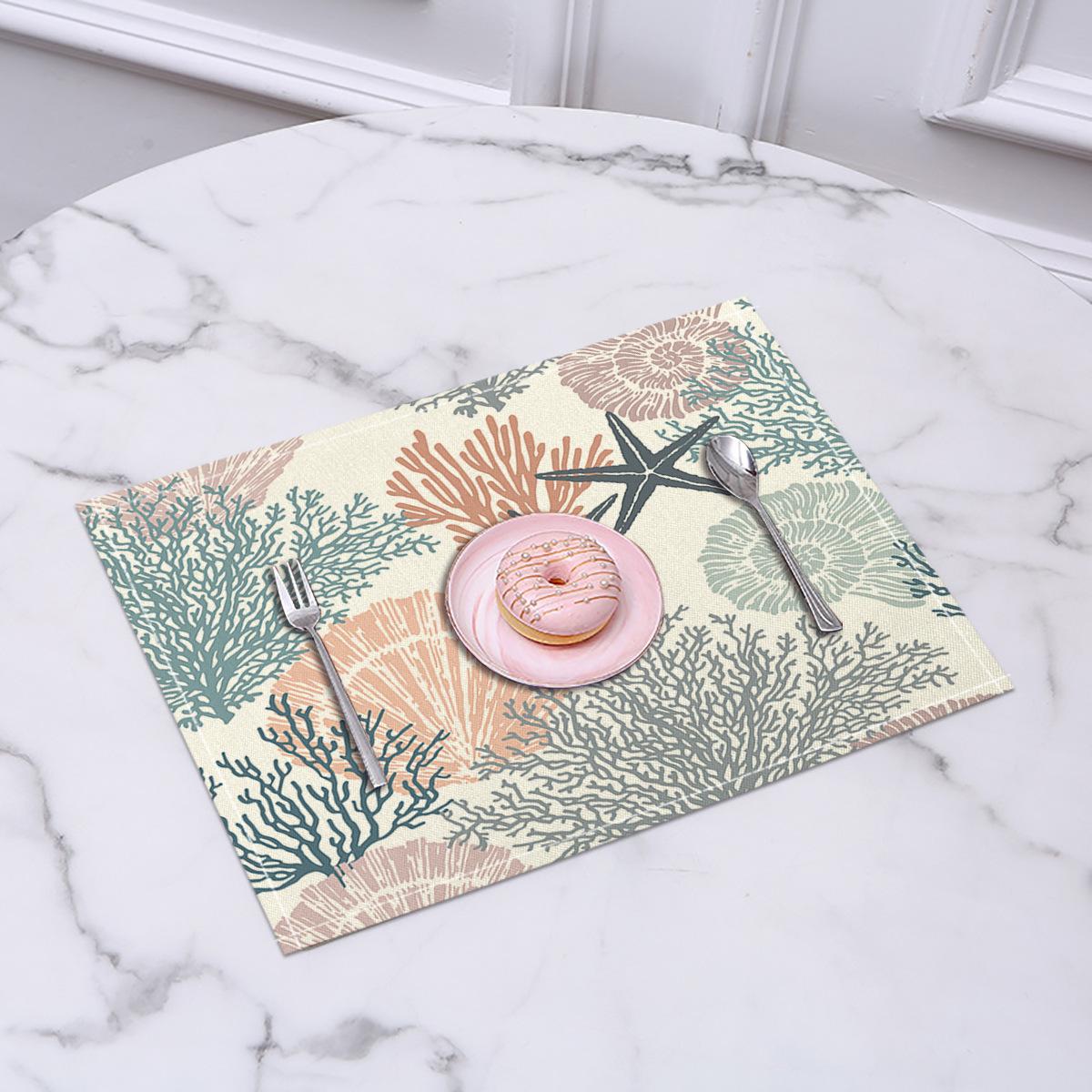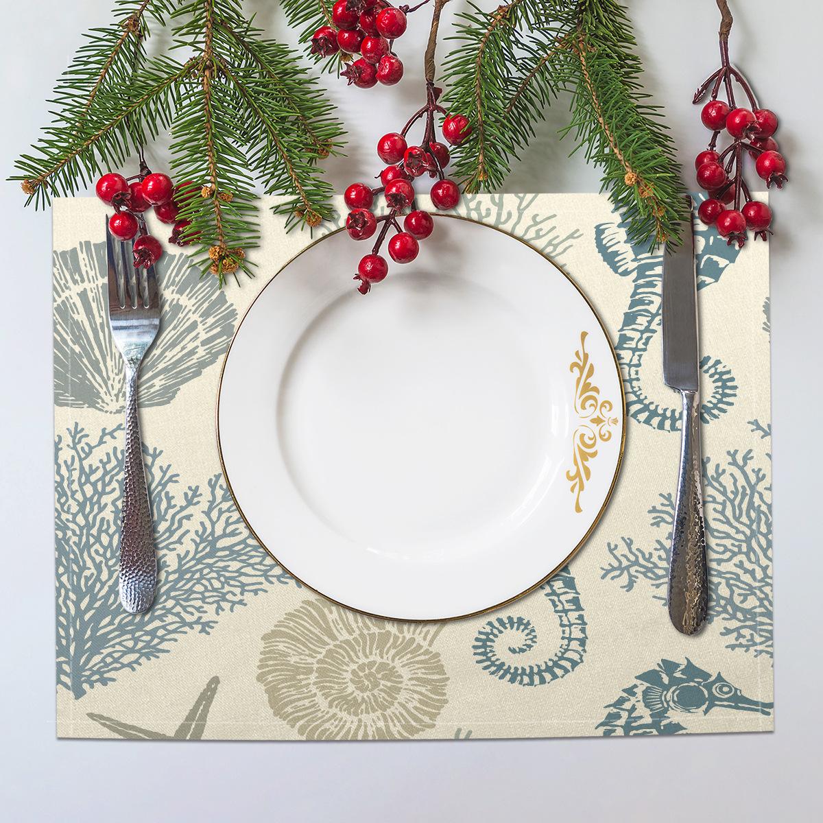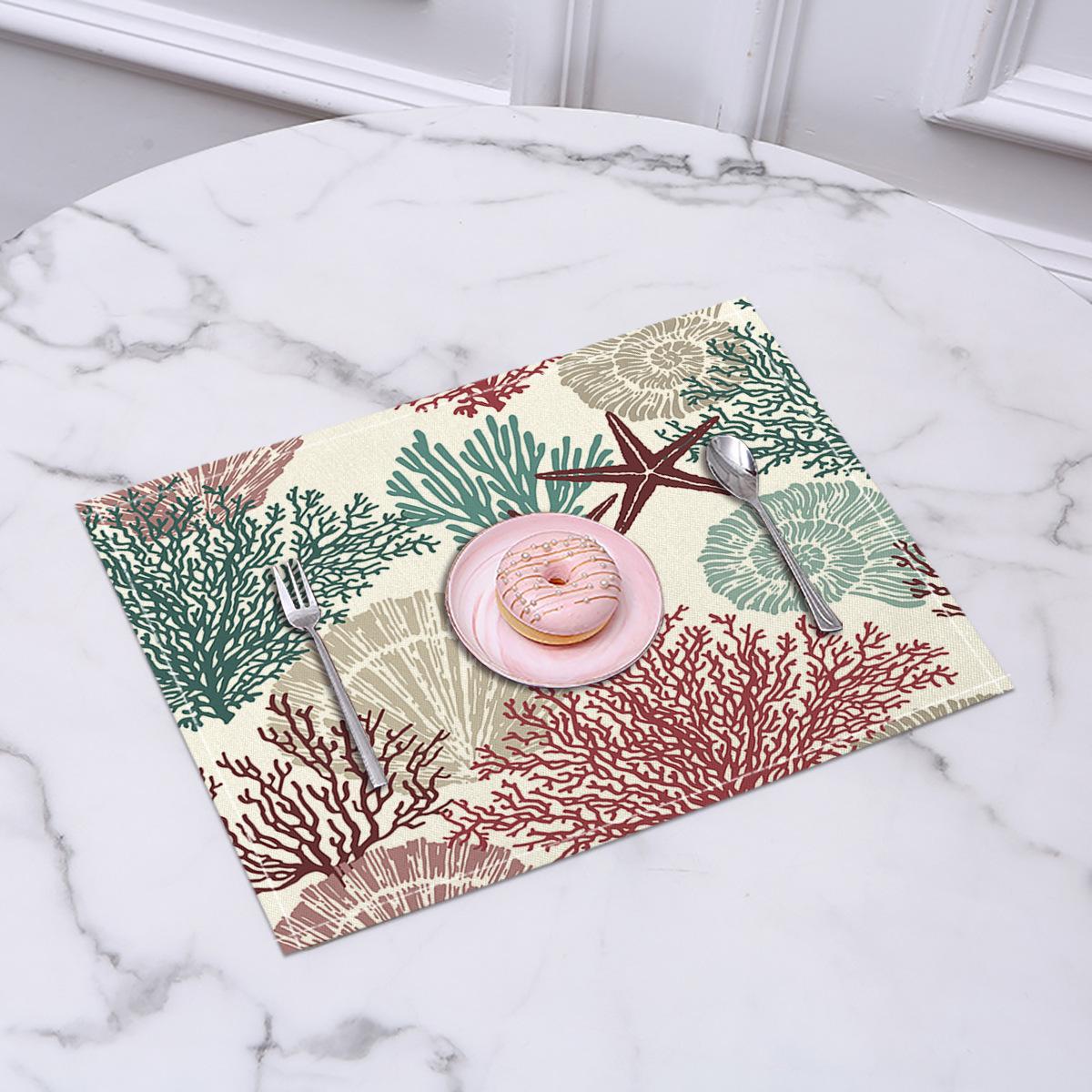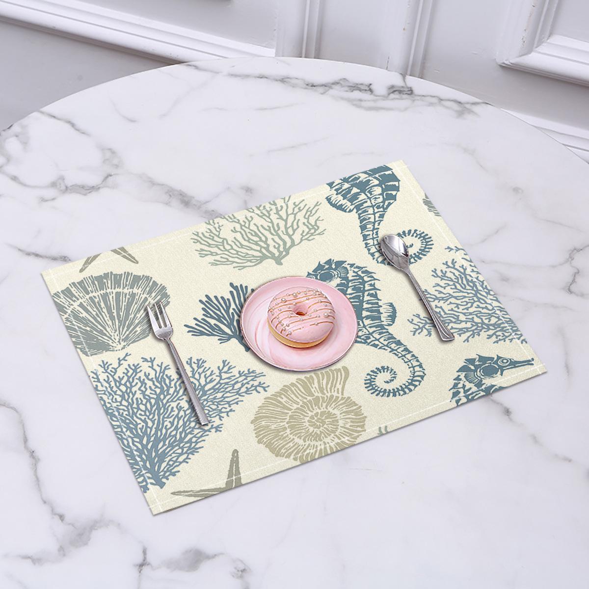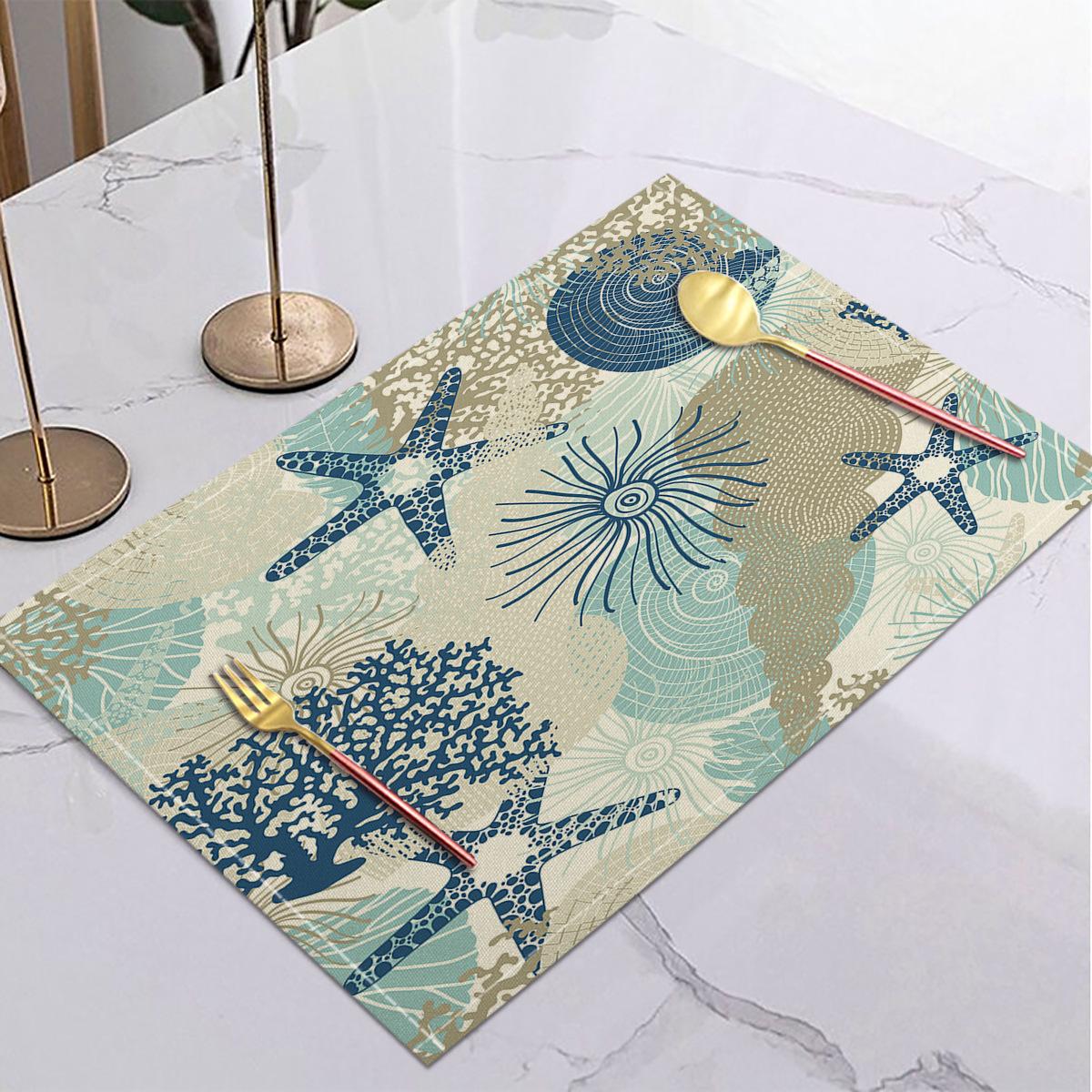 Cross-border Linho Placemat Marine Life Series Placemat Home Kitchen Isolamento térmico Coaster Anti-escalding Linen Western Placemat