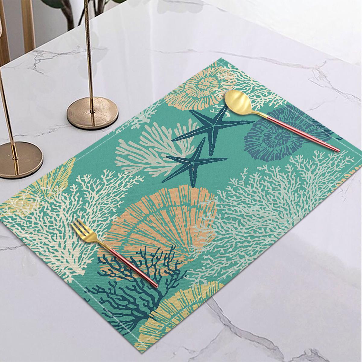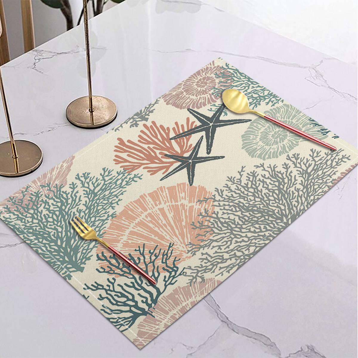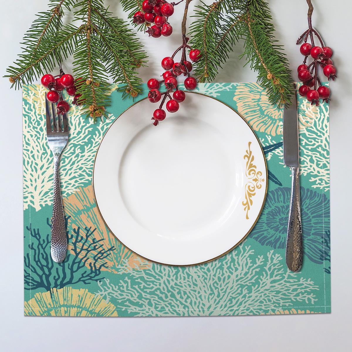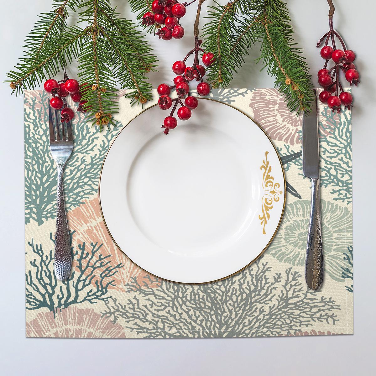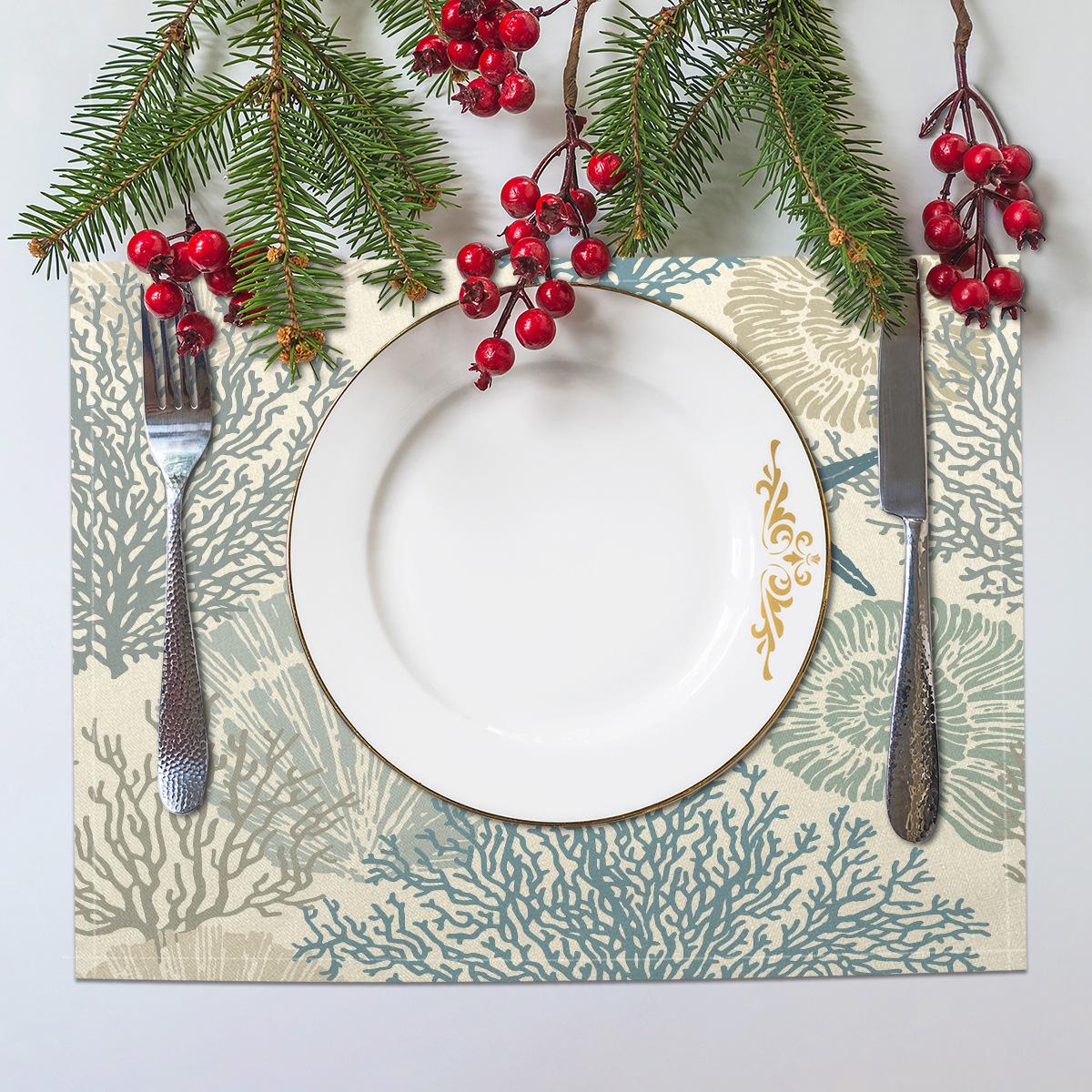 Cross-border Linho Placemat Marine Life Series Placemat Home Kitchen Isolamento térmico Coaster Anti-escalding Linen Western Placemat
