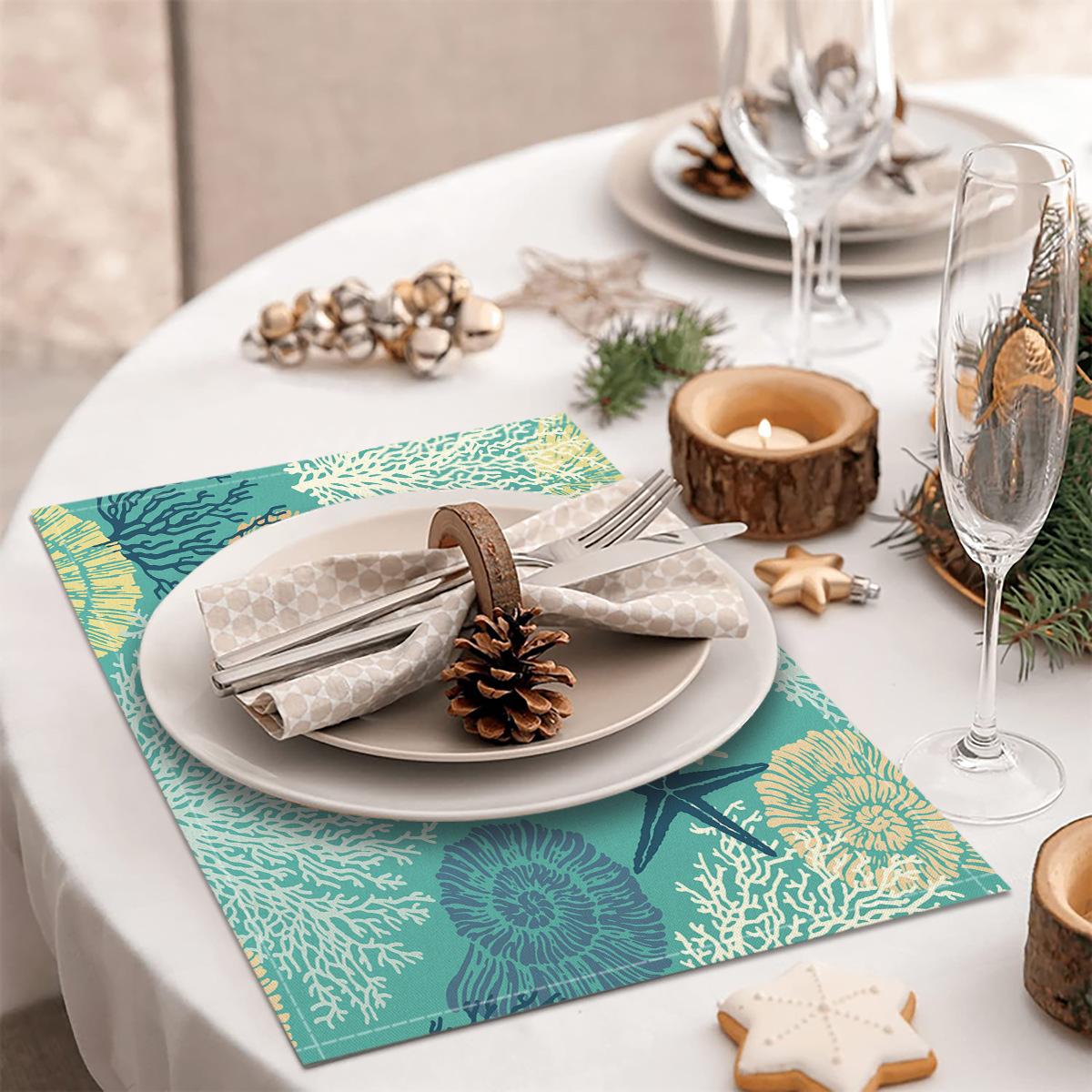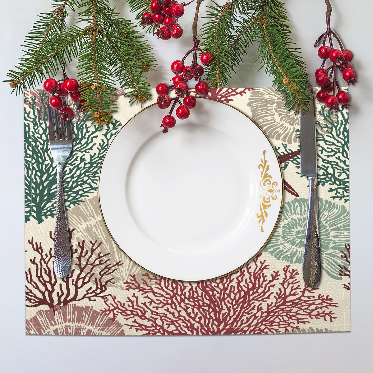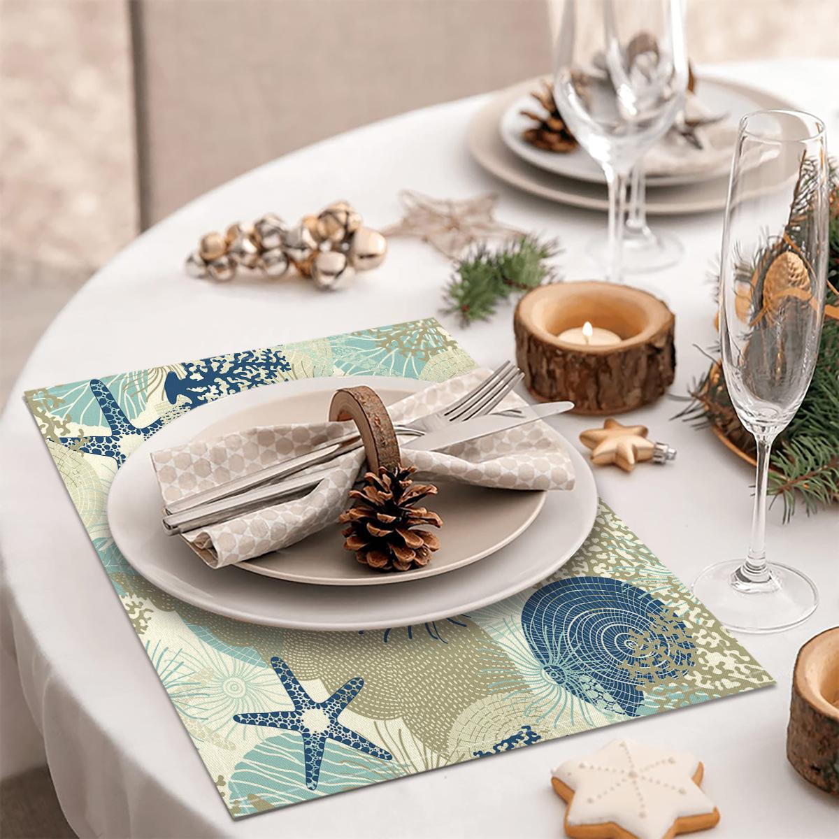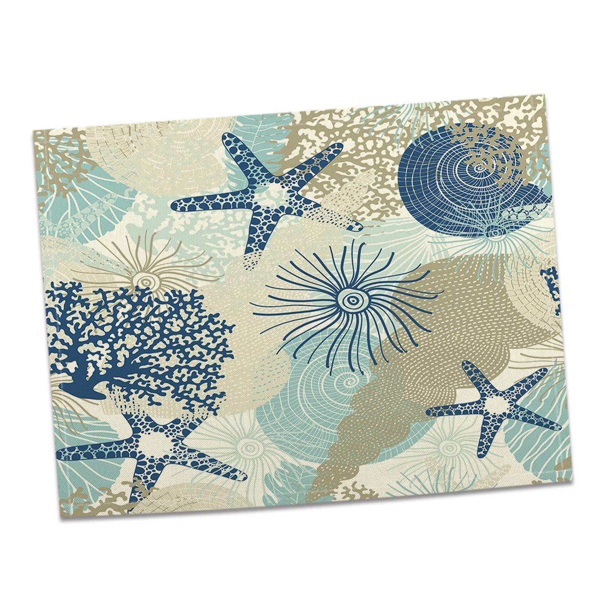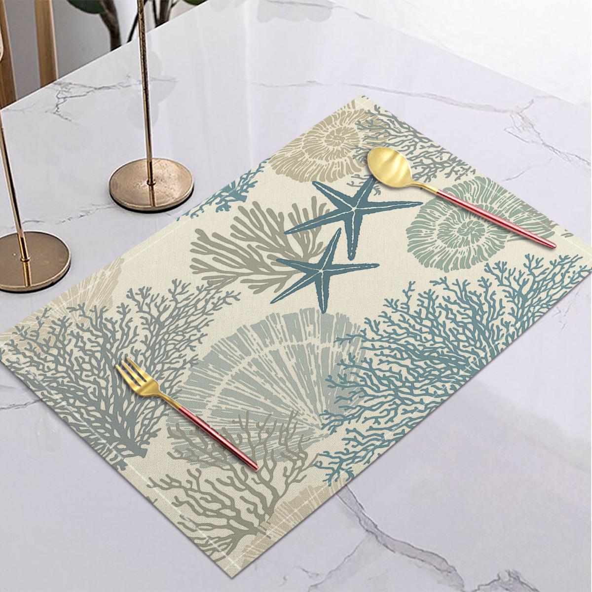 Cross-border Linho Placemat Marine Life Series Placemat Home Kitchen Isolamento térmico Coaster Anti-escalding Linen Western Placemat