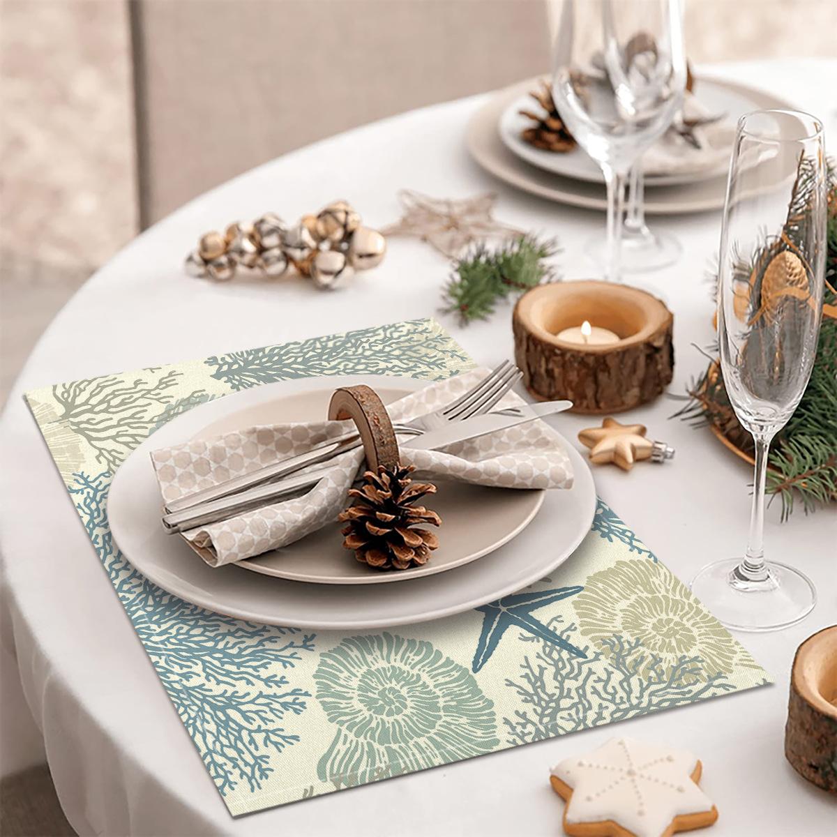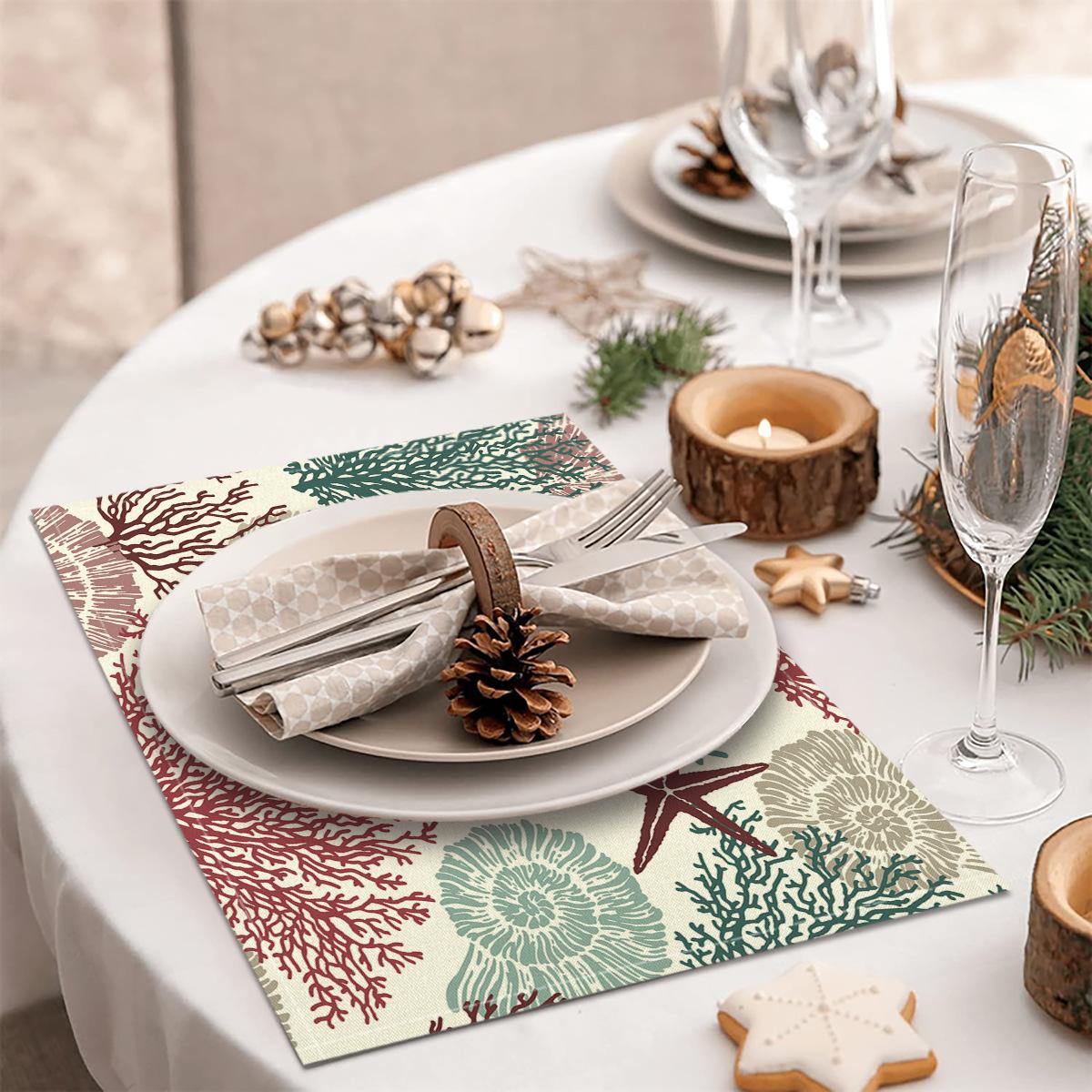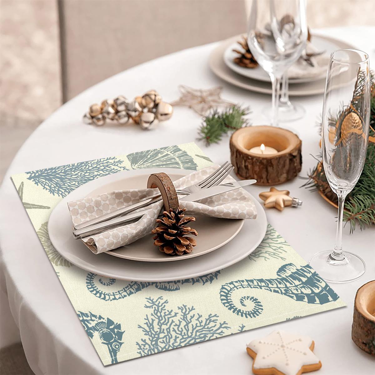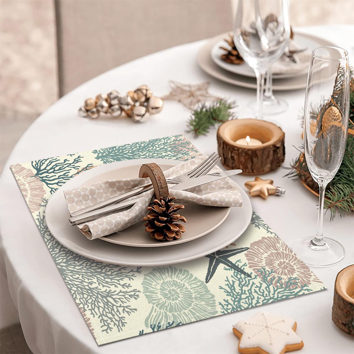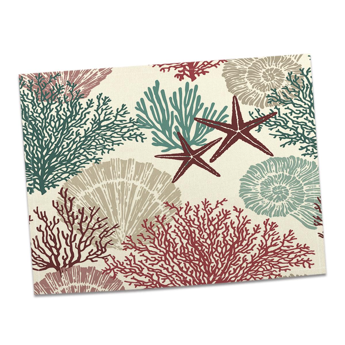 Cross-border Linho Placemat Marine Life Series Placemat Home Kitchen Isolamento térmico Coaster Anti-escalding Linen Western Placemat