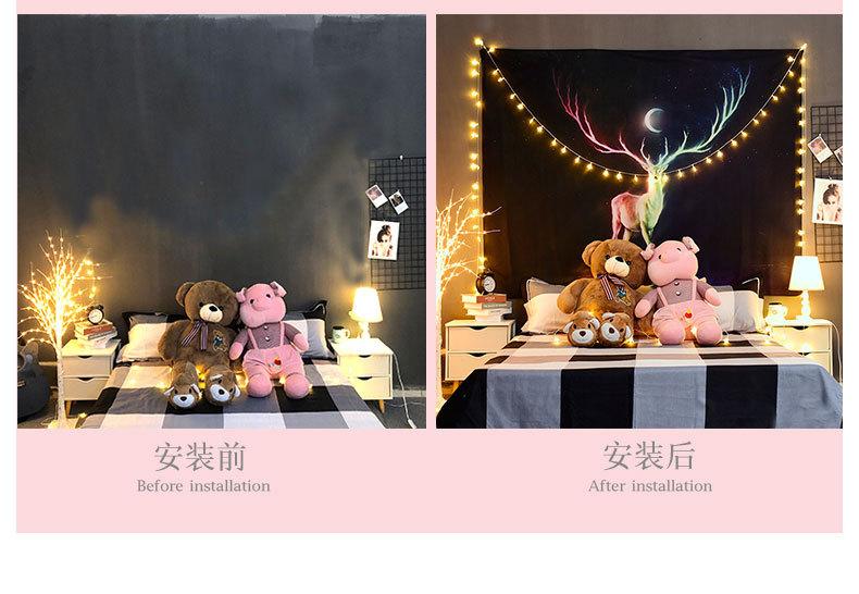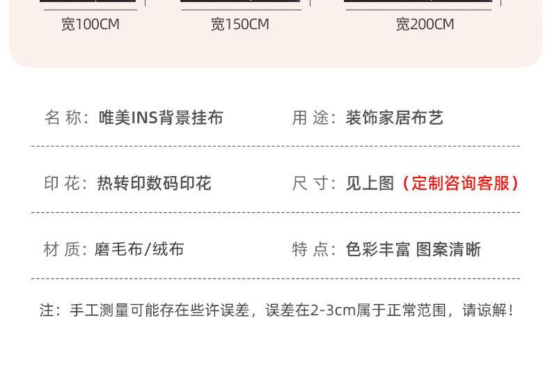 Nome: tapeçaria nórdica Utilização: tapeçarias, tapetes de parede, tapetes decorativos, toalhas de mesa; pode ser usado em ambientes internos e externos. Obrigado por gostar de nossas tapeçarias. Primeiro, deixe-me apresentar nossas tapeçarias para que você possa entendê-las melhor. 1. A loja possui dois materiais para você escolher. Um: Flanela! É feito de flanela, tem toque levemente liso, não tem elasticidade, tem espessura moderada e é opaco. Dois: Pano escovado: A superfície é sedosa e leve, adequada para o comércio exterior, reduzindo custos logísticos. 2. Impressão unilateral com fundo branco puro. Microelasticidade, 3. Usando tecnologia de impressão 3D, as cores são brilhantes e bonitas, não desbotam e são fáceis de limpar. 4. Usado para decoração de parede, pano de fundo, toalha de mesa, cortina de porta, toalha de praia, toalha, etc. 5. Os produtos não são devolvidos ou trocados por questões de não qualidade. Tenha cuidado antes de comprar. 6.Se você precisar de um pacote de instalação de tecido suspenso e uma luz estrelada de 6 metros, entre em contato com o atendimento ao cliente separadamente.