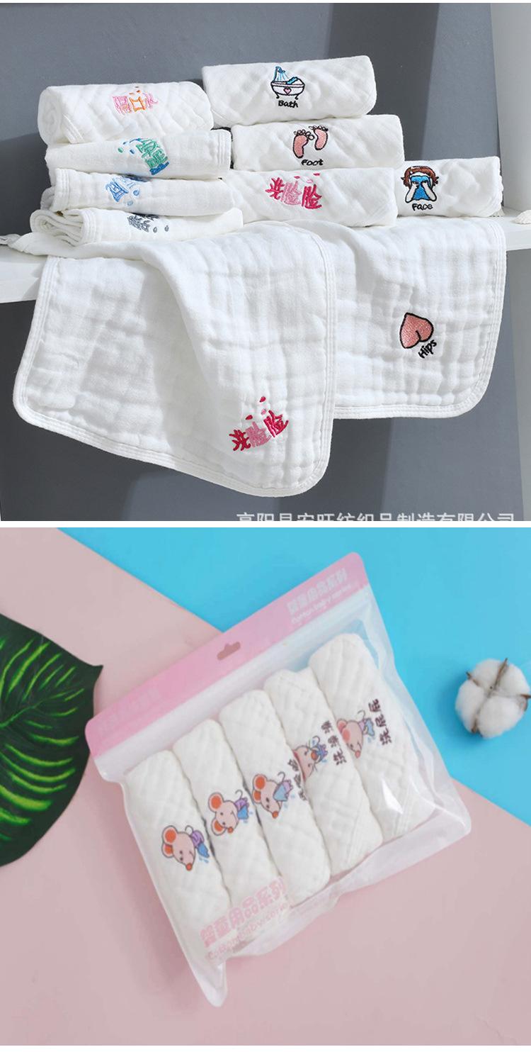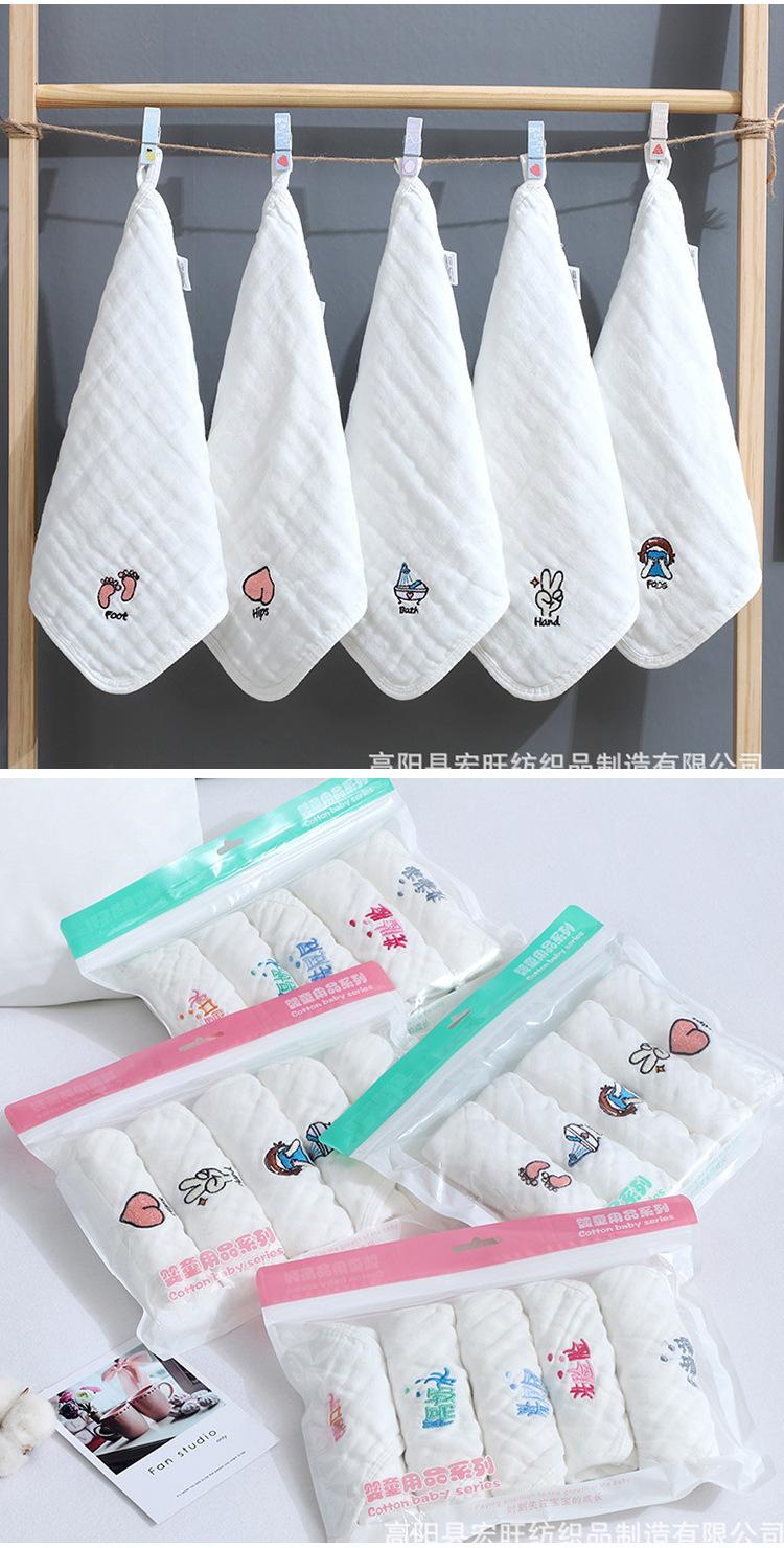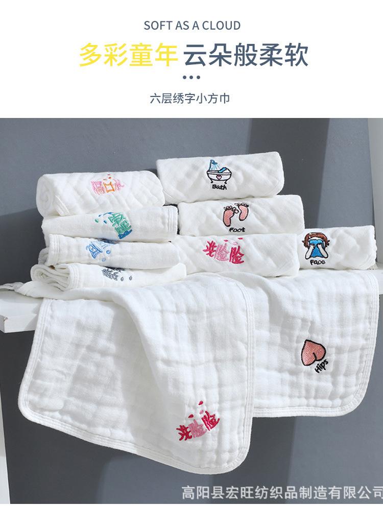 Toalha quadrada bordada de seis camadas gaze jardim de infância crianças toalha de mão absorvente macio bebê saliva toalha atacado
