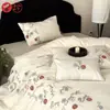 Yurun Huayan Estilo Fresco Ins Algodão de Fibra Longa 100S Bordado Toalha Capa de Edredom Simples Conjunto de Três Peças Lençol de Elástico Cama de Dormitório