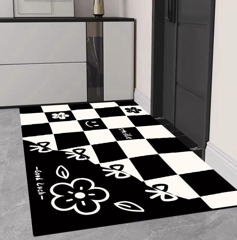 Tapete de porta xadrez dos desenhos animados impermeável à prova de óleo lavável resistente a manchas tapete de espuma de espuma tapete de couro