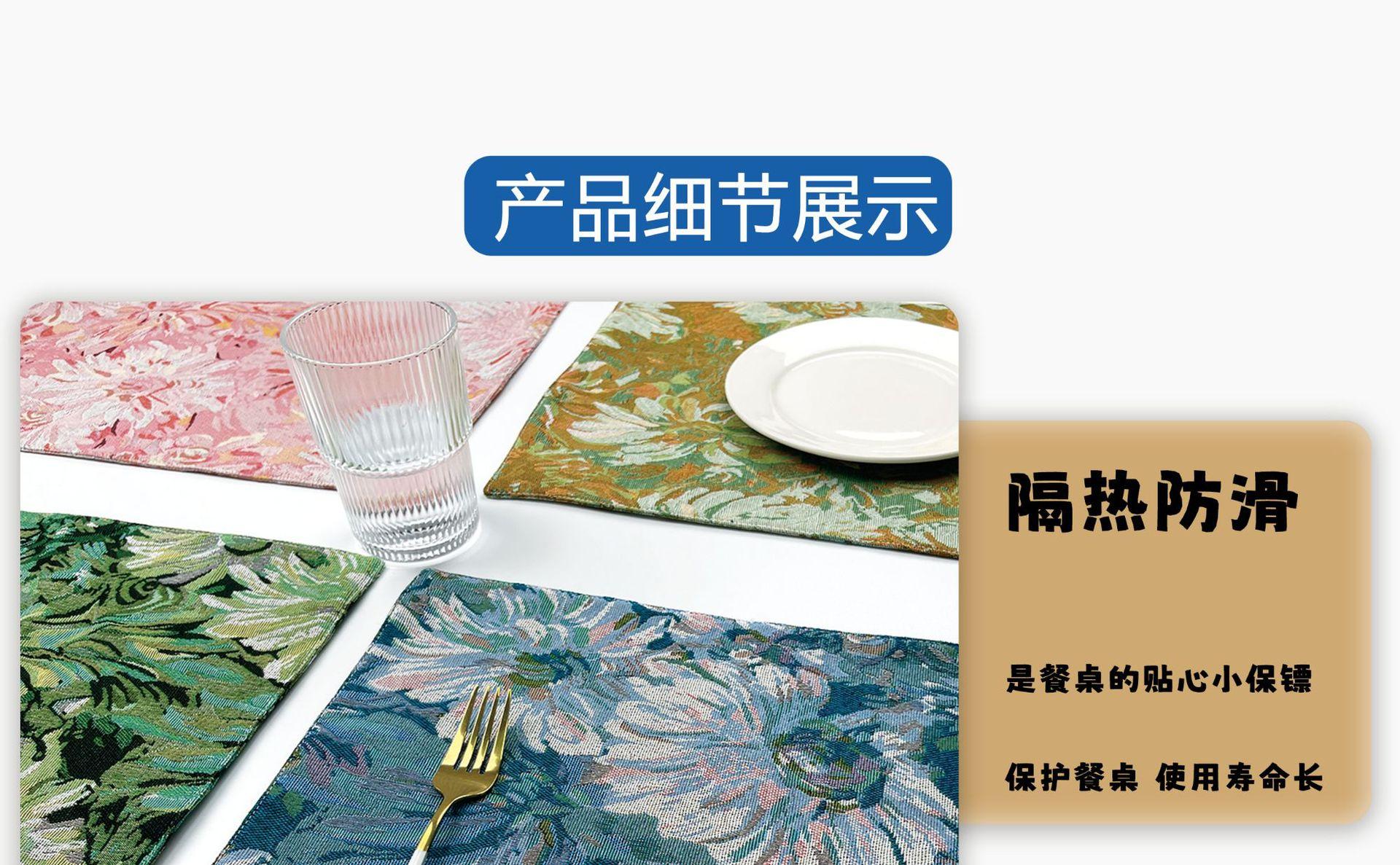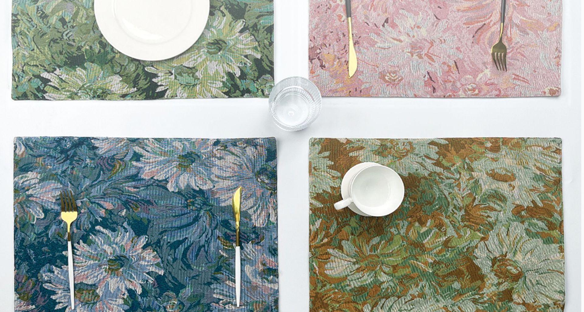 Compre Novo jacquard pintura a óleo placemat Monet chrysanthemum vintage western placemat tapete de isolamento térmico anti-escalda hotel coaster tapete de mesa no atacado no Joom.pro