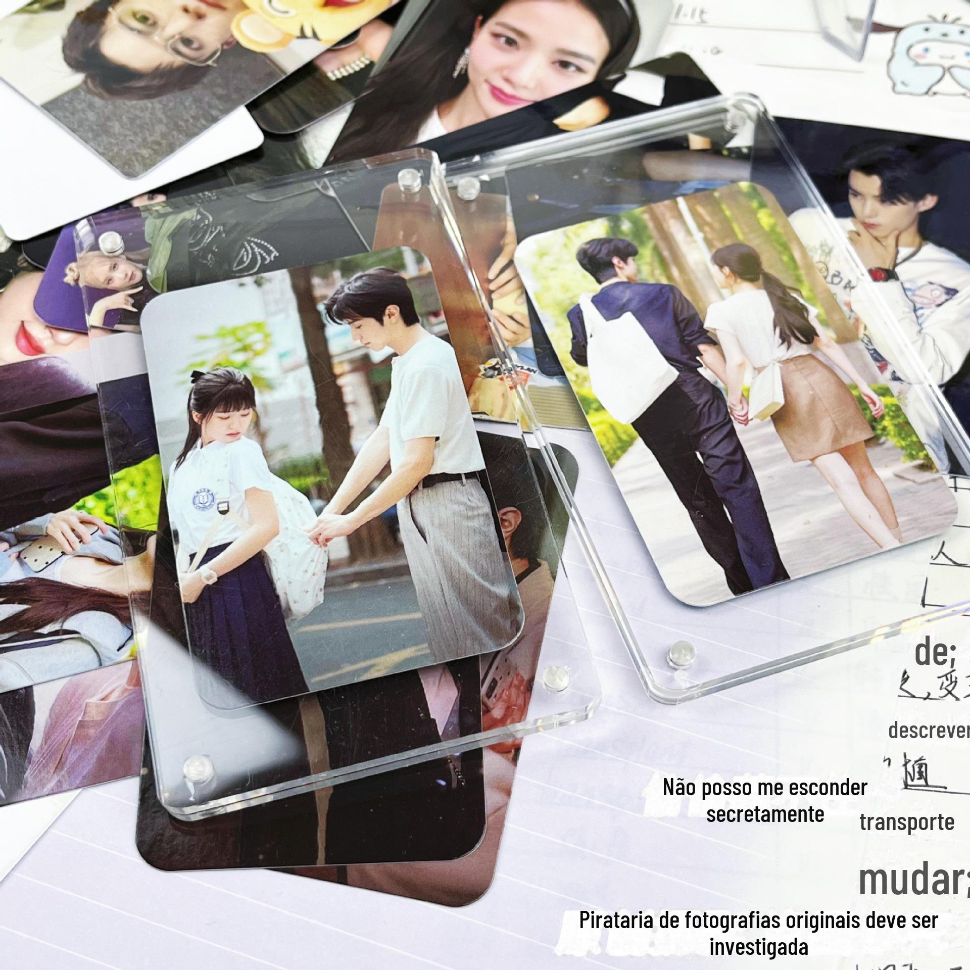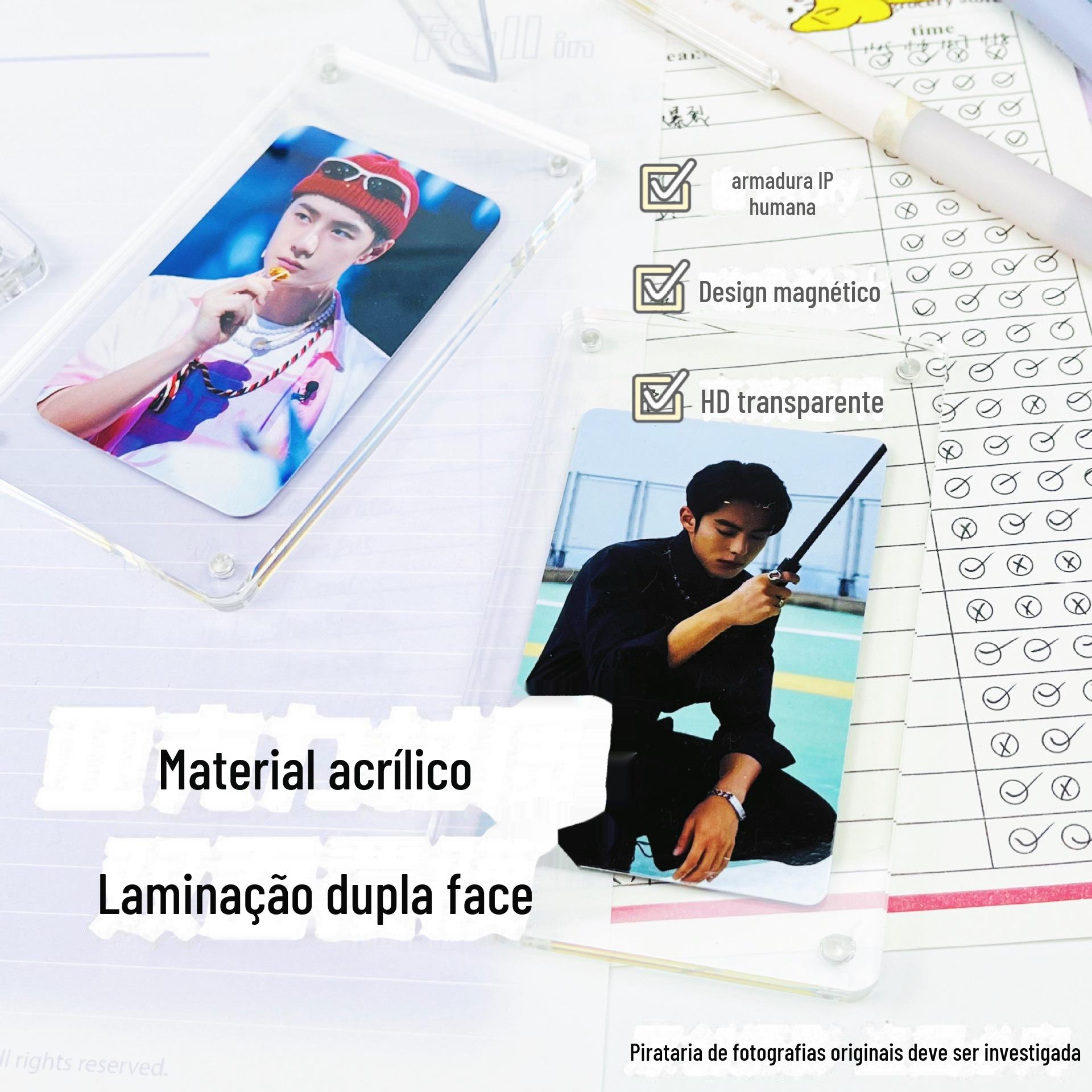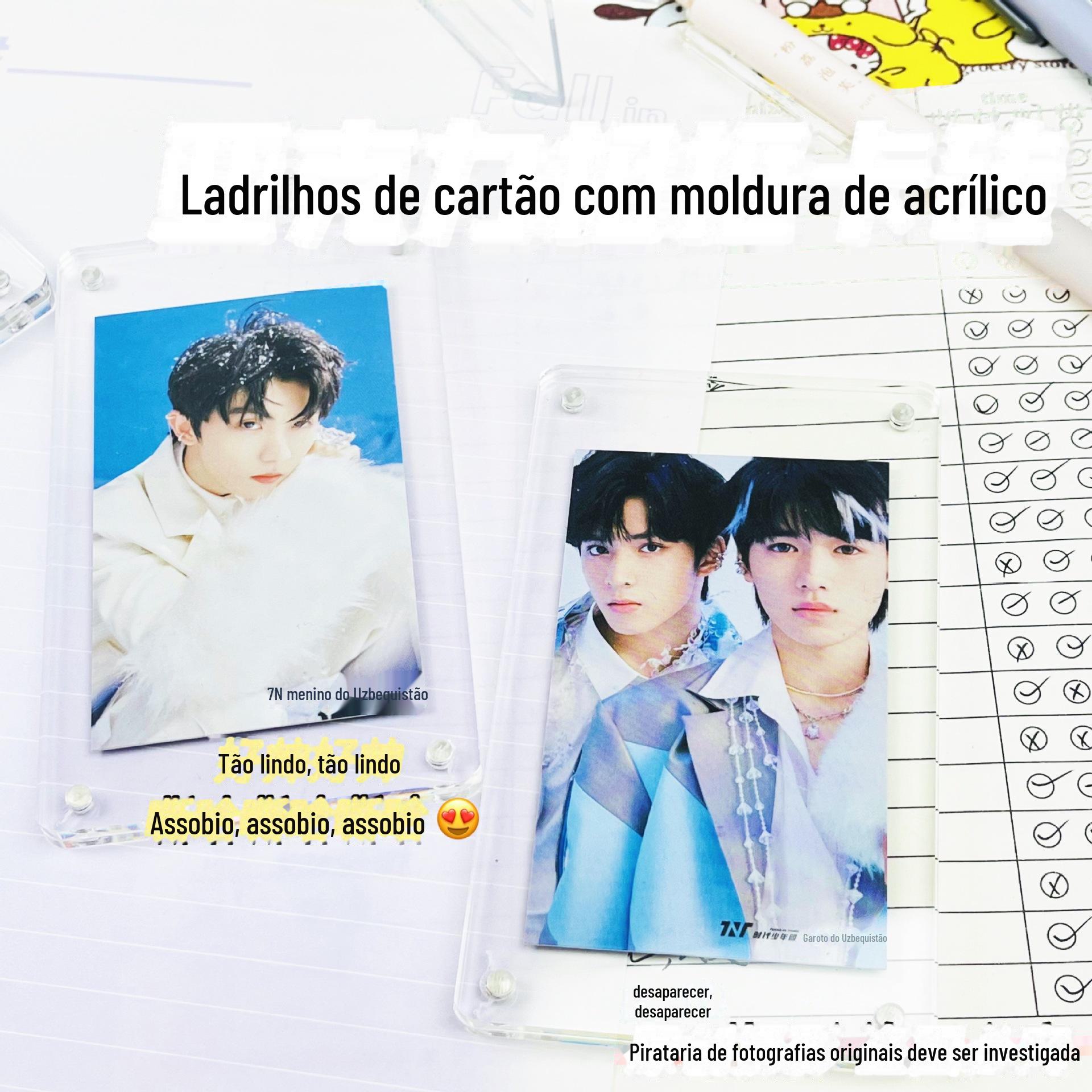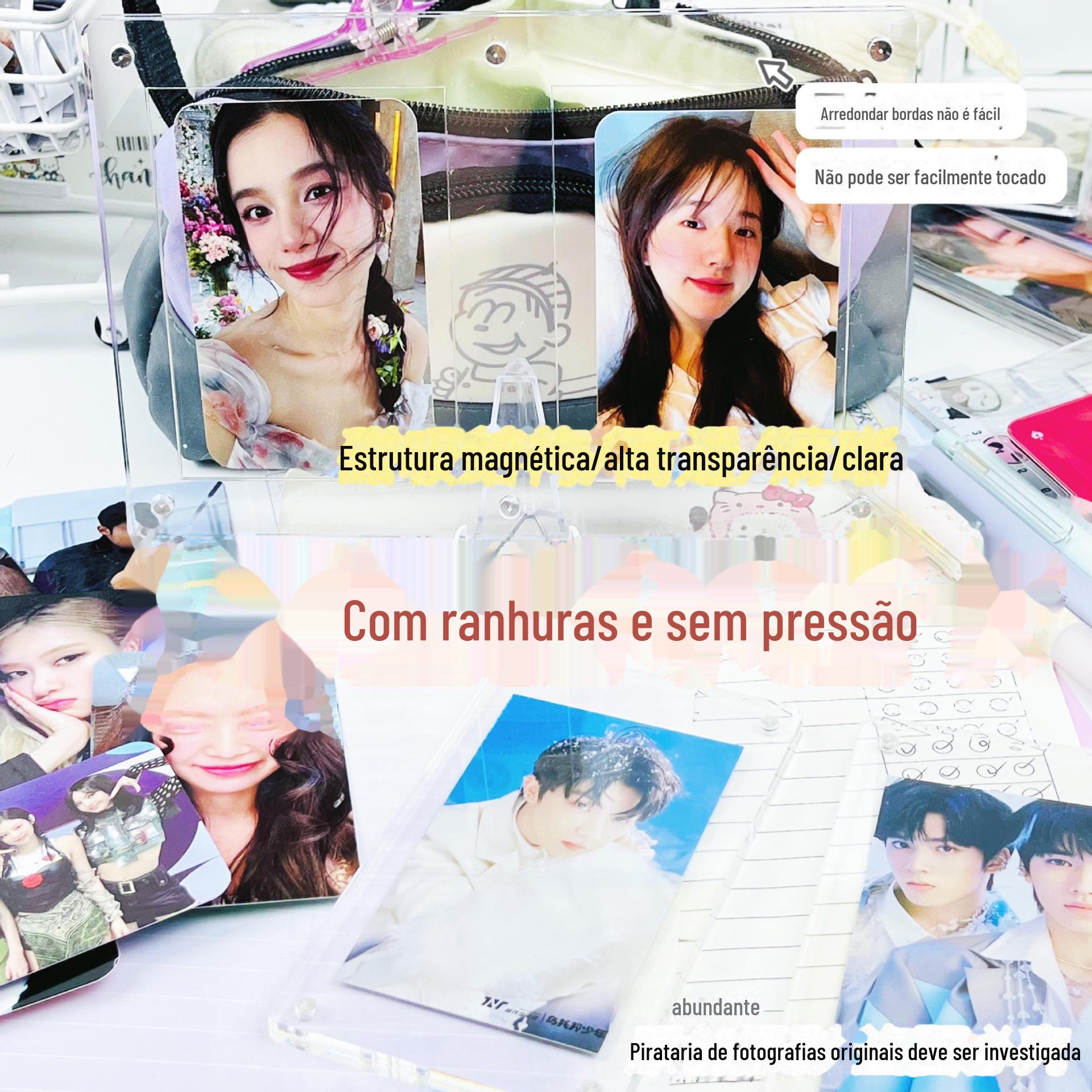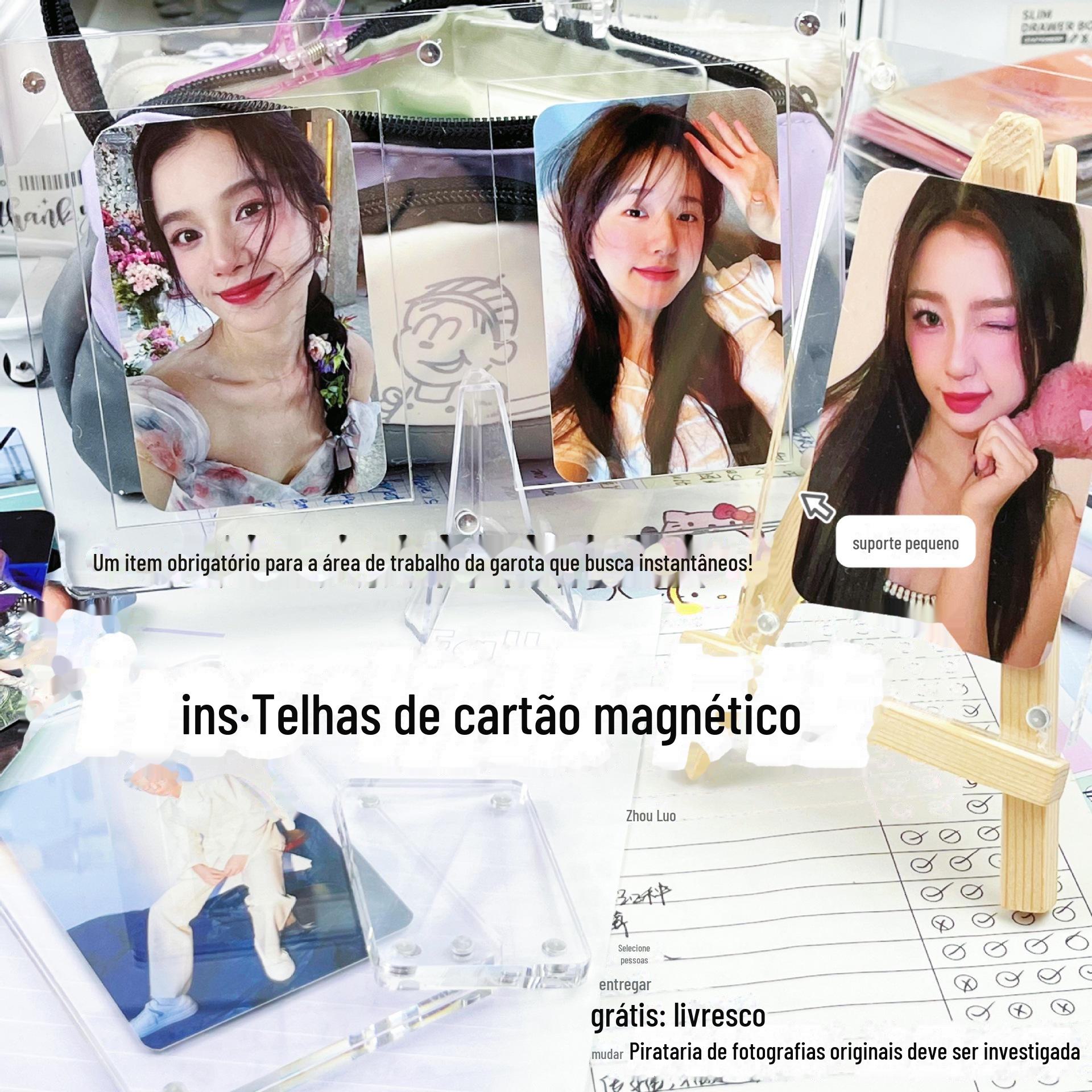 Ins transparente arredondado acrílico magnético moldura da foto cartão pequeno cartão antiaderente cartão de mão tijolo star-chasing decoração de mesa aidou foto