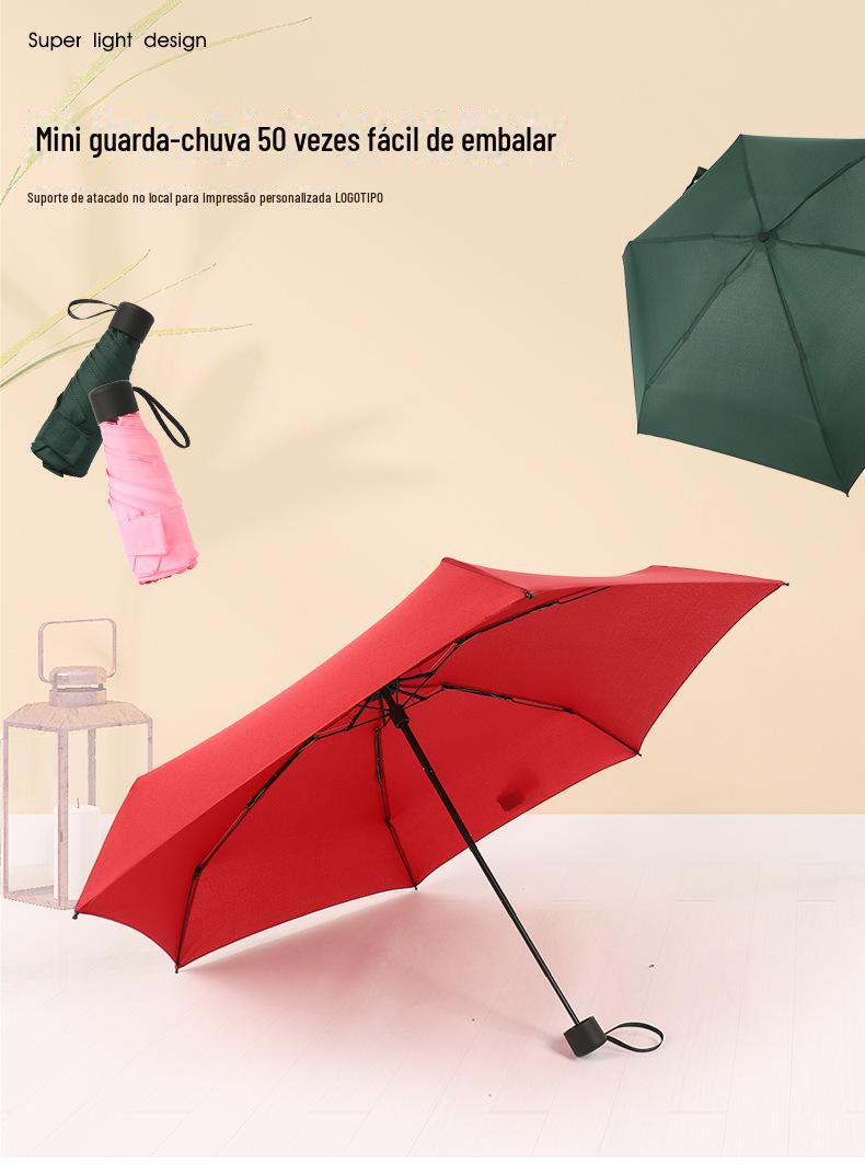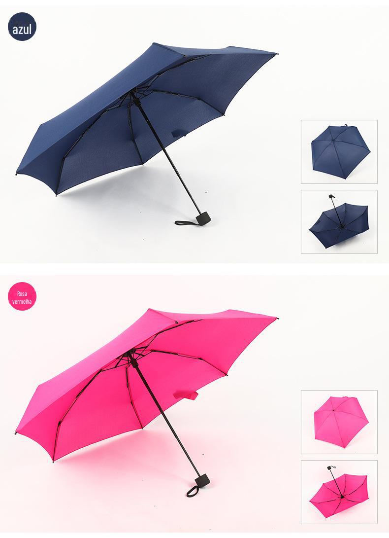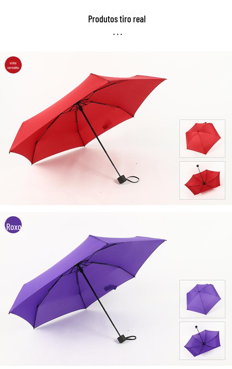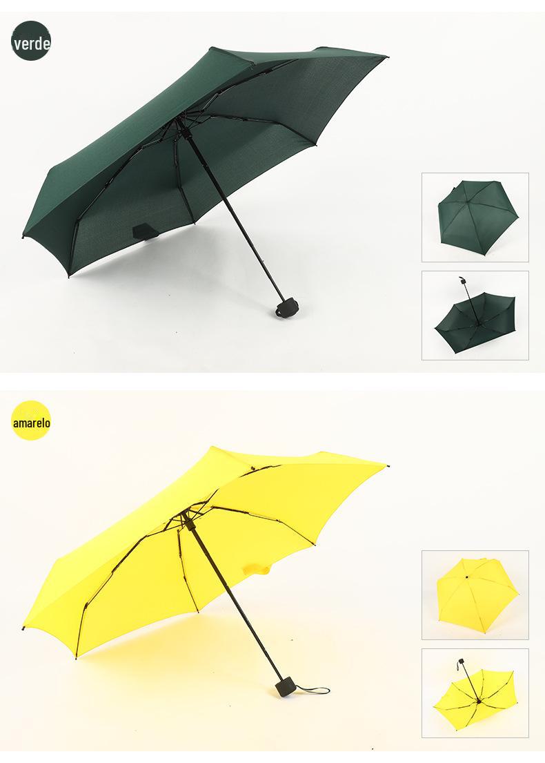 Fornecimento Guarda-chuva Mini Portátil de Bolso Dobrável em Cinco Partes de Cor Sólida Logotipo Personalizável Publicitário Bolso Dobrável em Cinco Partes Guarda-chuva de Sol