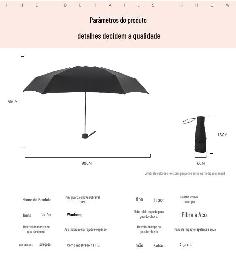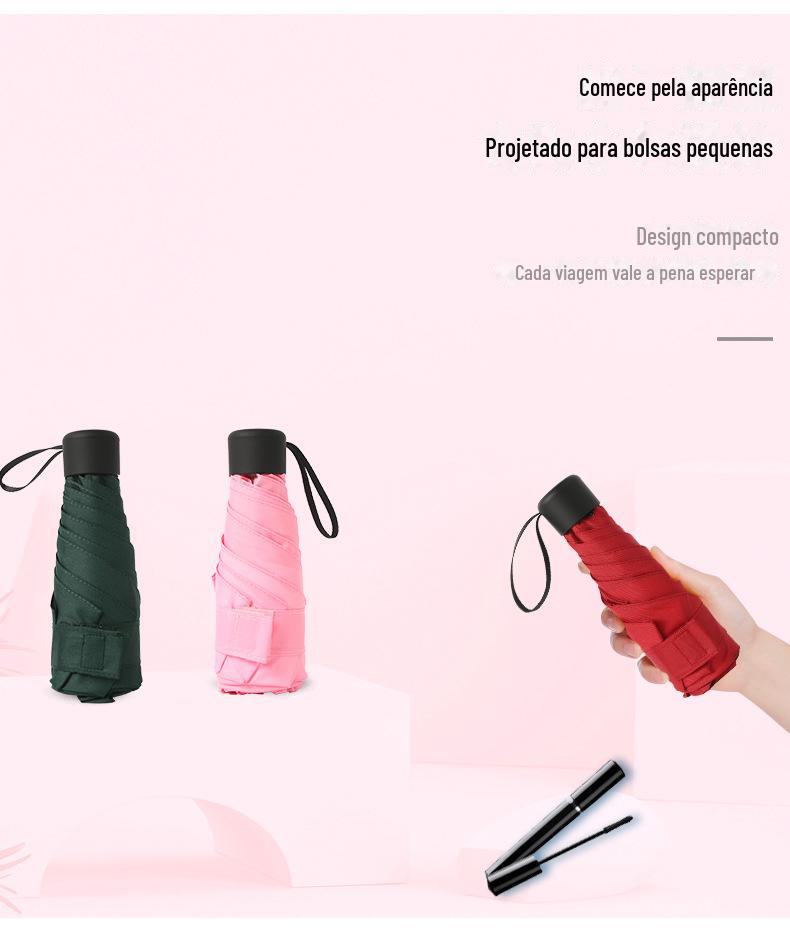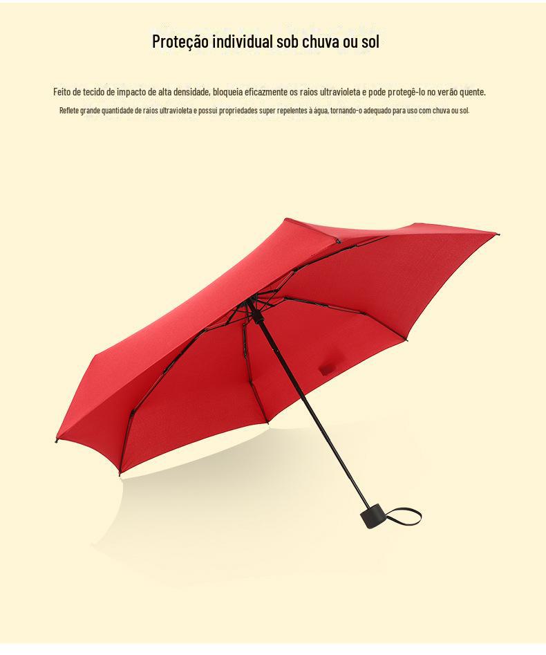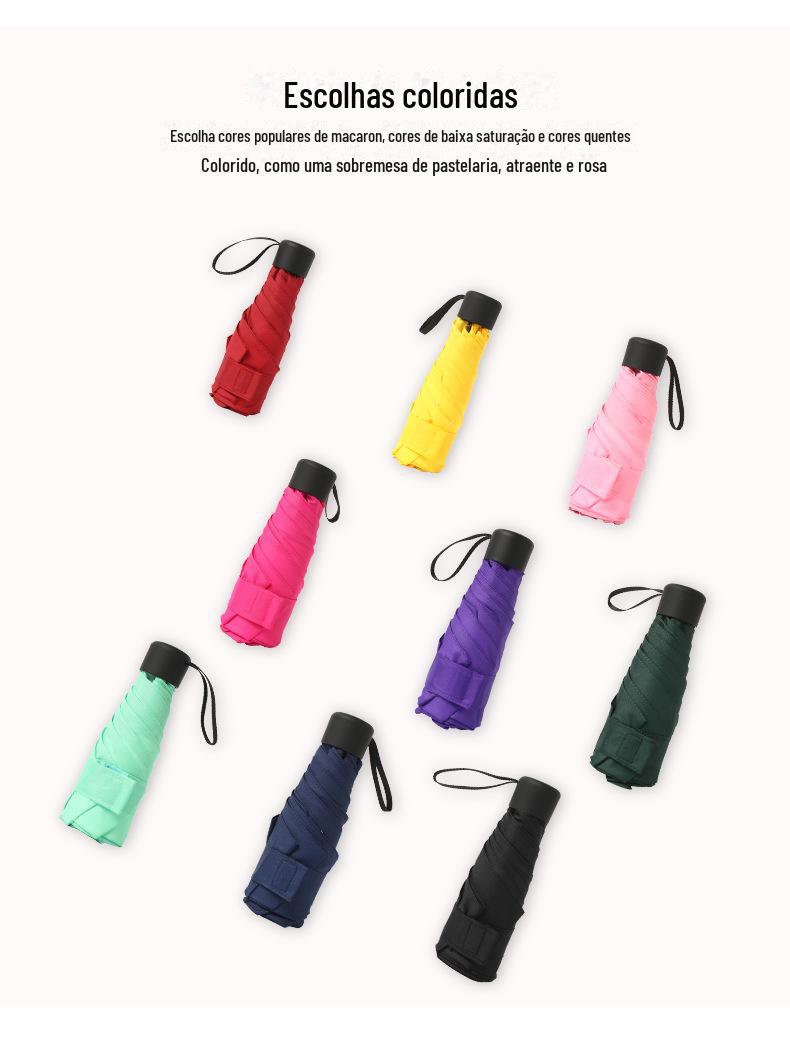 Fornecimento Guarda-chuva Mini Portátil de Bolso Dobrável em Cinco Partes de Cor Sólida Logotipo Personalizável Publicitário Bolso Dobrável em Cinco Partes Guarda-chuva de Sol