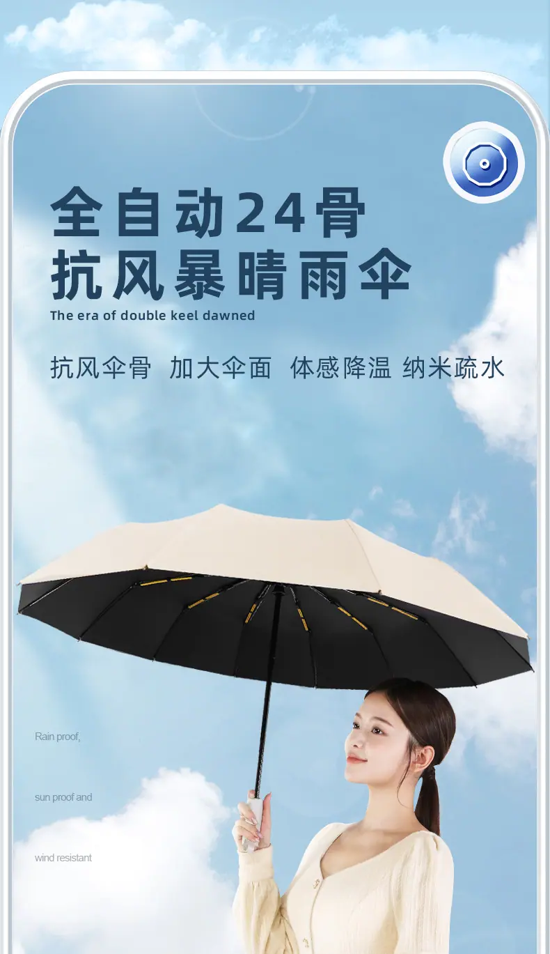 24-bone reinforced noble [vinyl double umbrella] sycamore rice/fully automatic