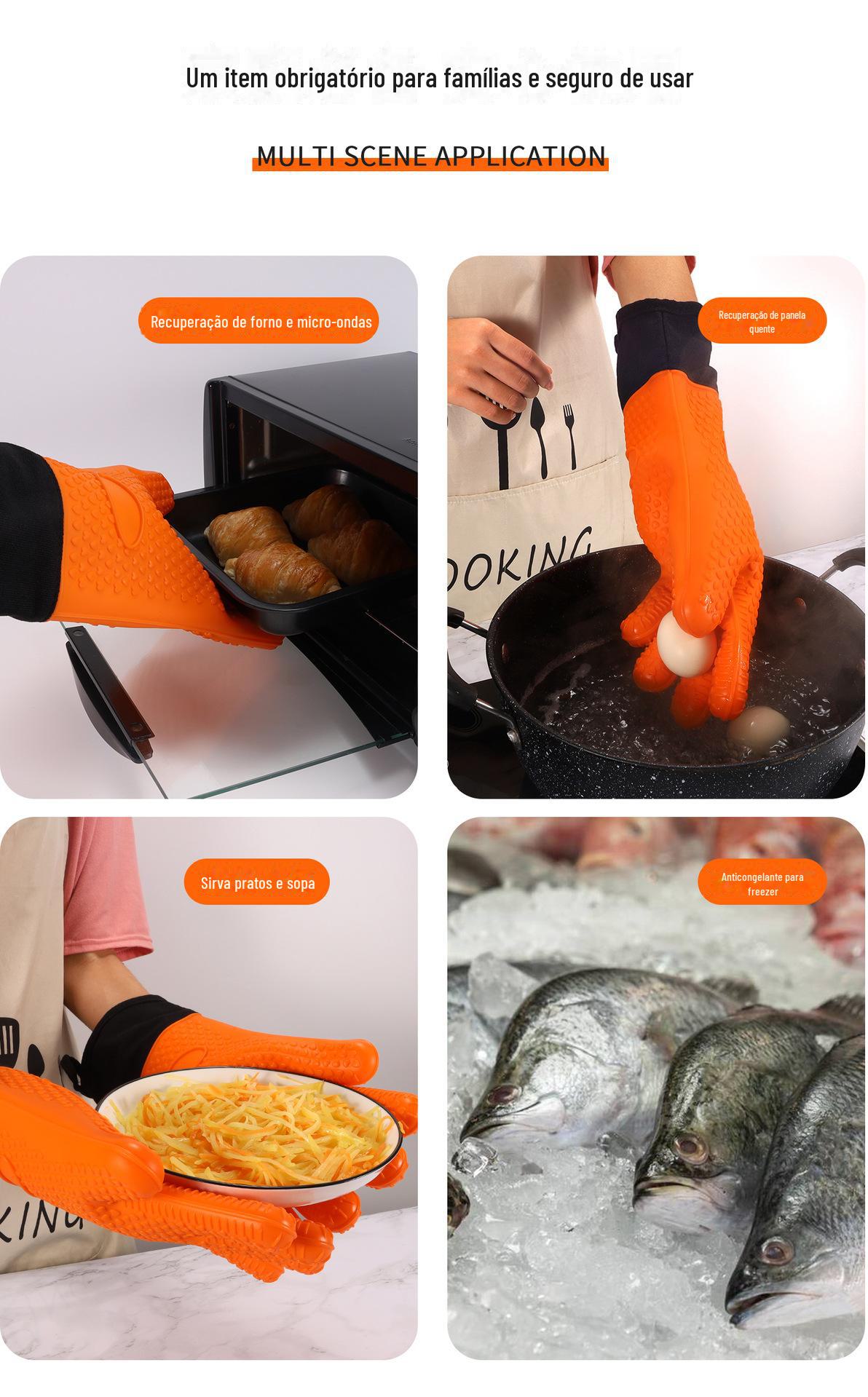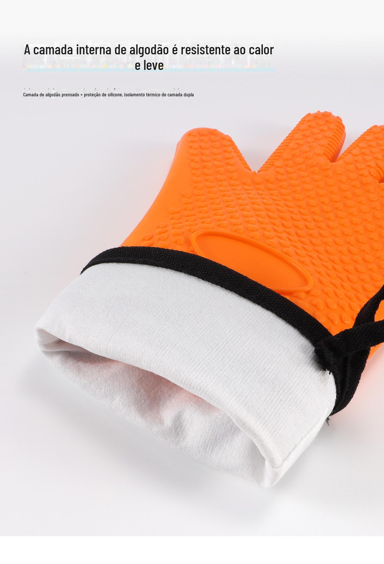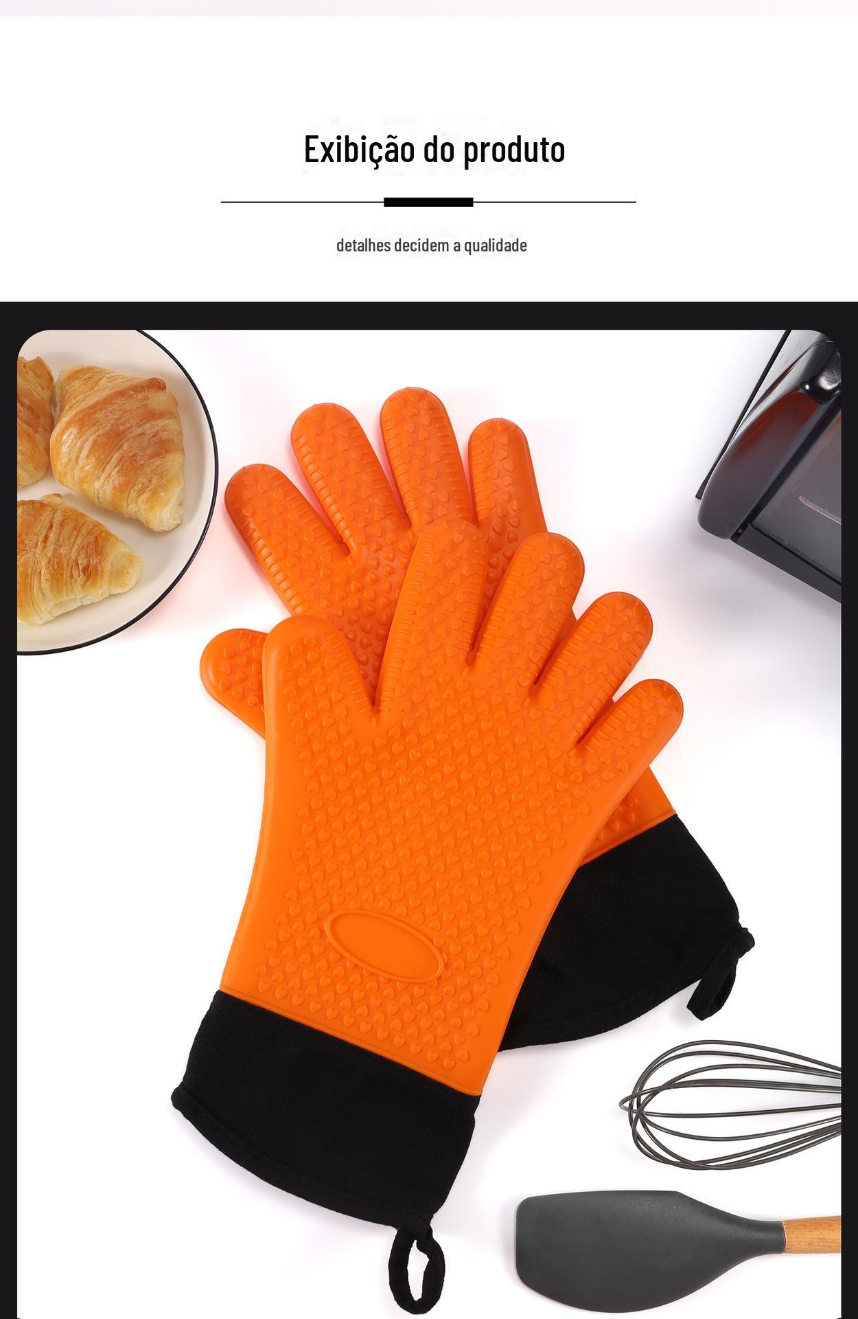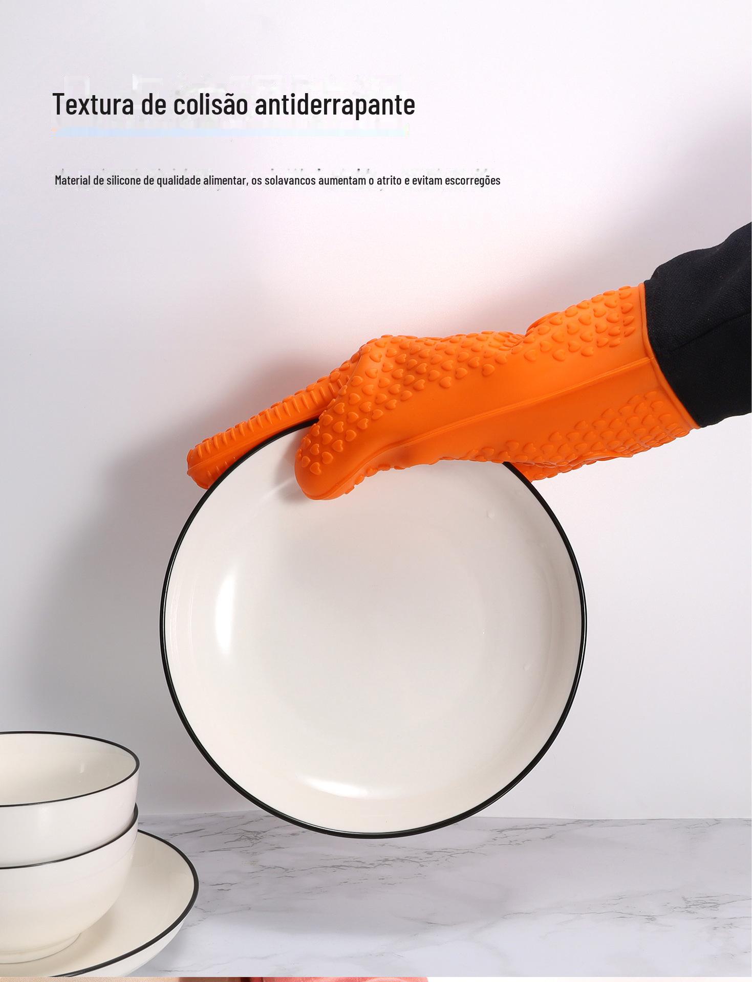 Forno de micro-ondas, silicone, cozinha, luvas de silicone, luvas de isolamento térmico estendidas, luvas de forno de algodão engrossado impermeável