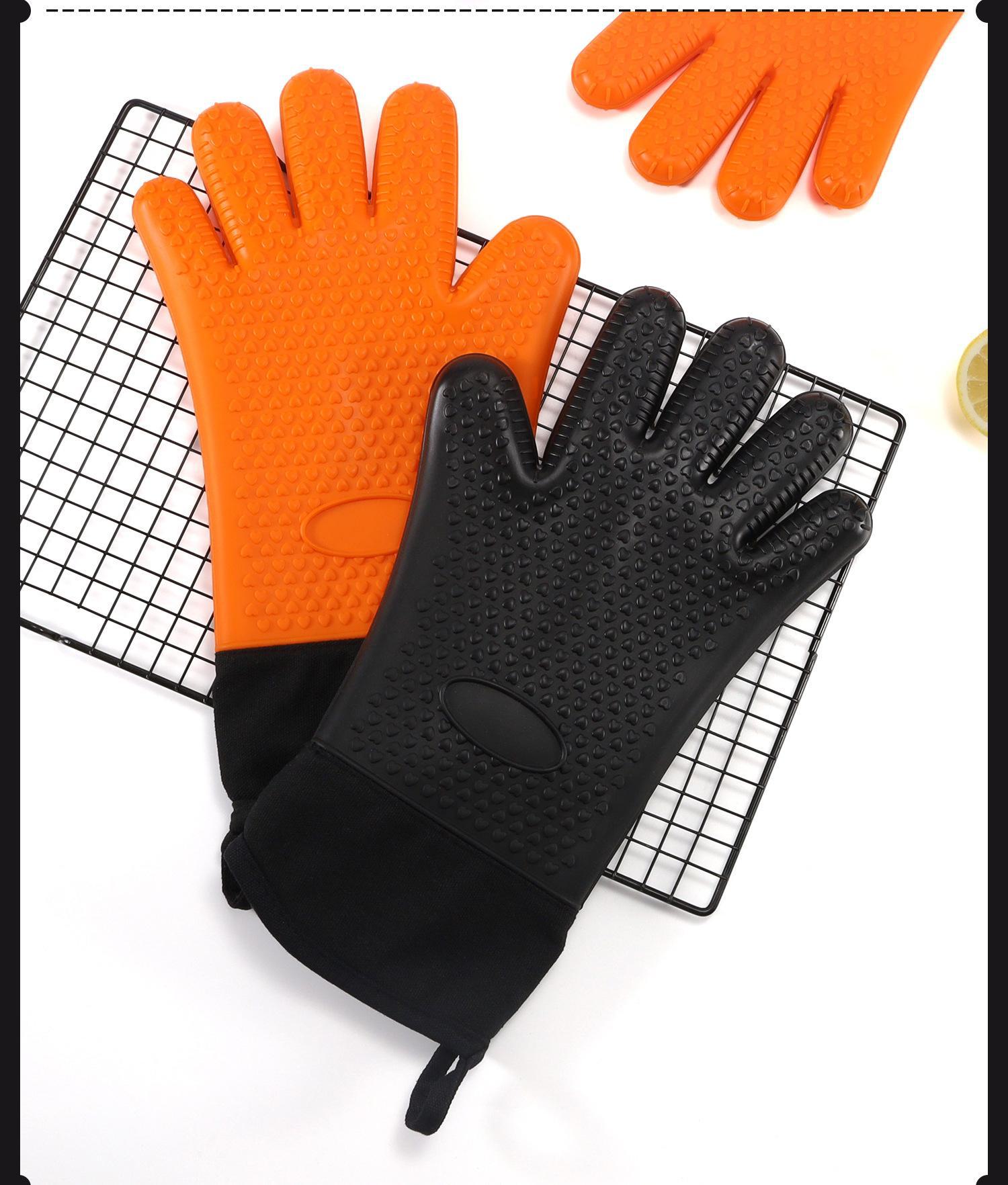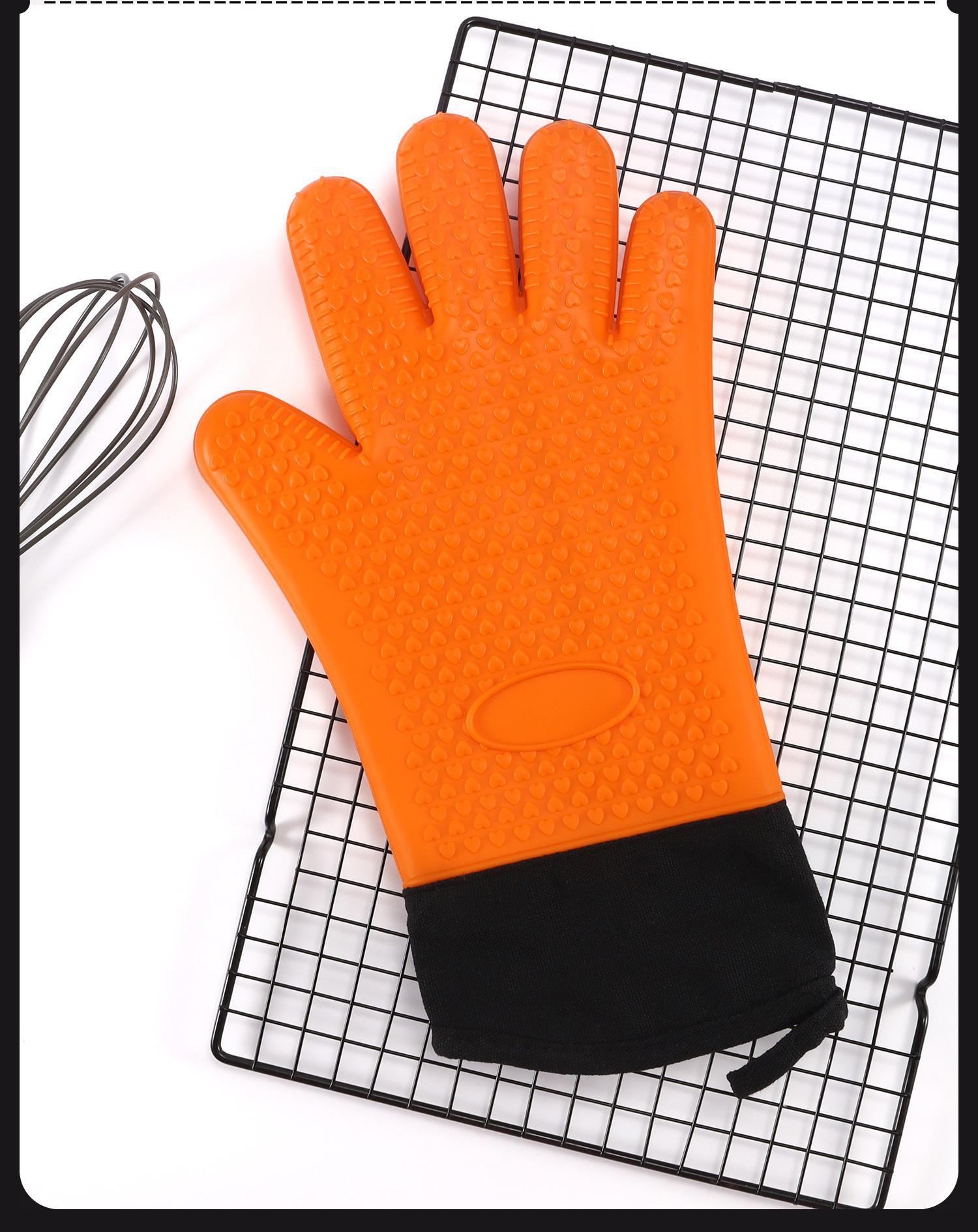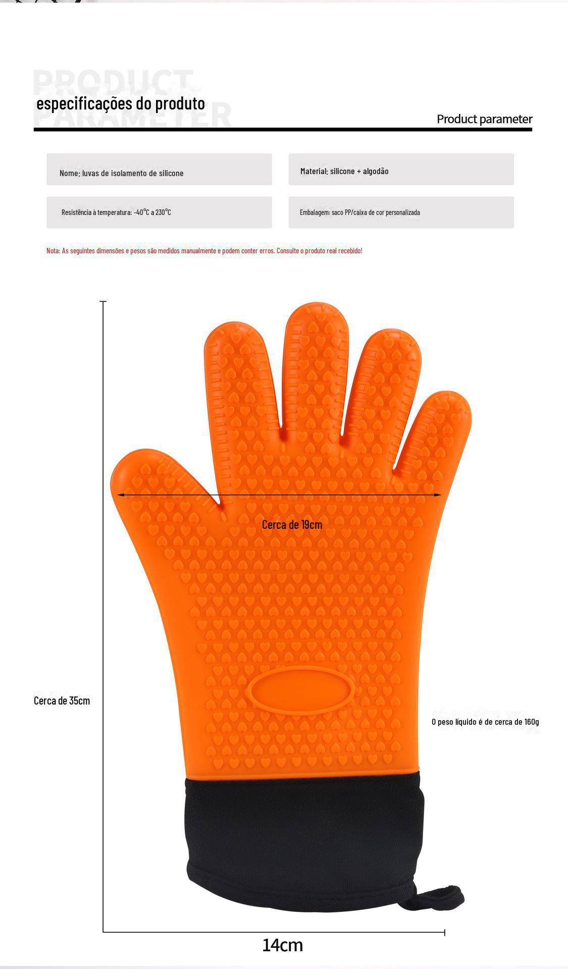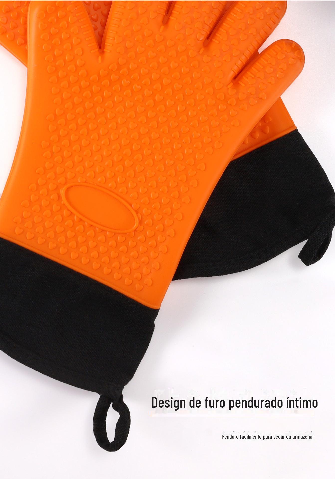Forno de micro-ondas, silicone, cozinha, luvas de silicone, luvas de isolamento térmico estendidas, luvas de forno de algodão engrossado impermeável
