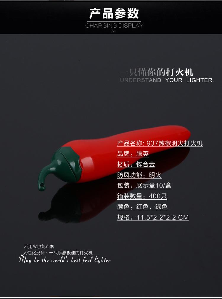Novo estranho chili em forma de isqueiro de chama aberta inflável fábrica de corpo de metal atacado fornecimento transfronteiriço