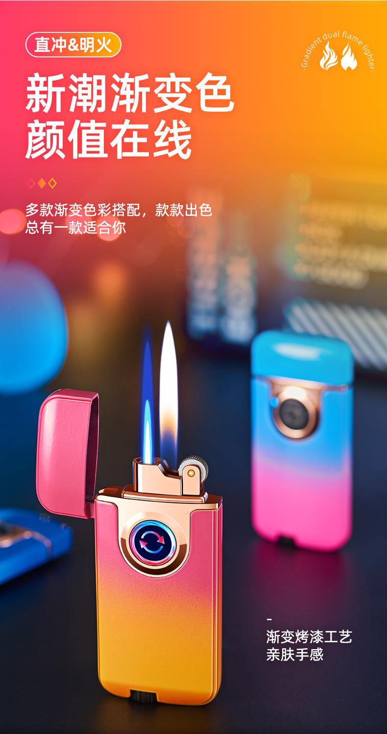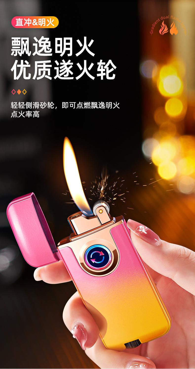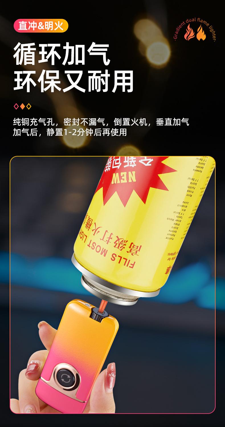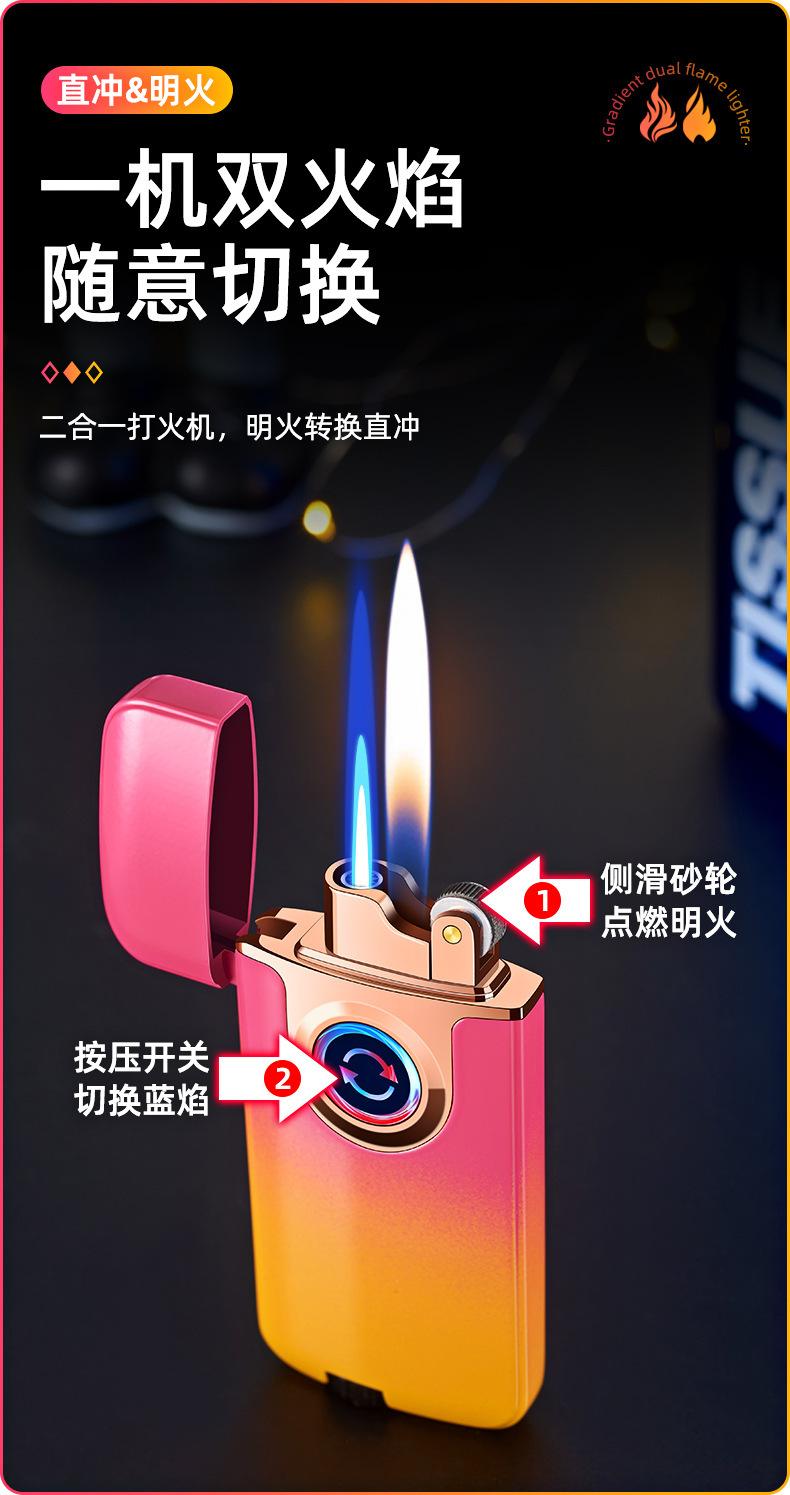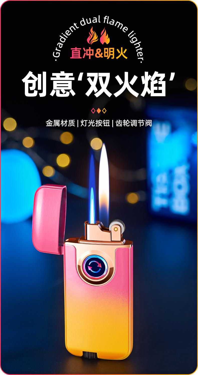 Gradiente isqueiro mágico duplo fogo livre comutação metal inflável roda de moagem isqueiro personalidade moderno presente masculino namorado