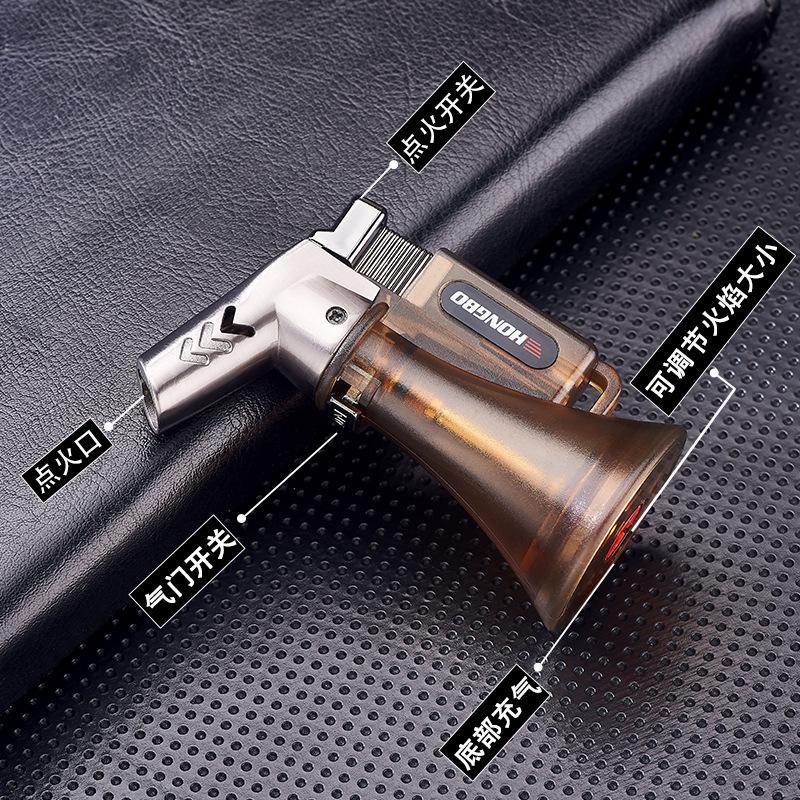 BK854 cônico plástico transparente charuto isqueiro HONGBO bloqueio fogo direto no isqueiro de solda inflável pequeno