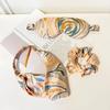 Fornecimento de fábrica de imitação de seda caixa de presente de três peças de cetim chiffon imitação de seda máscara de olho de cabelo banda conjunto