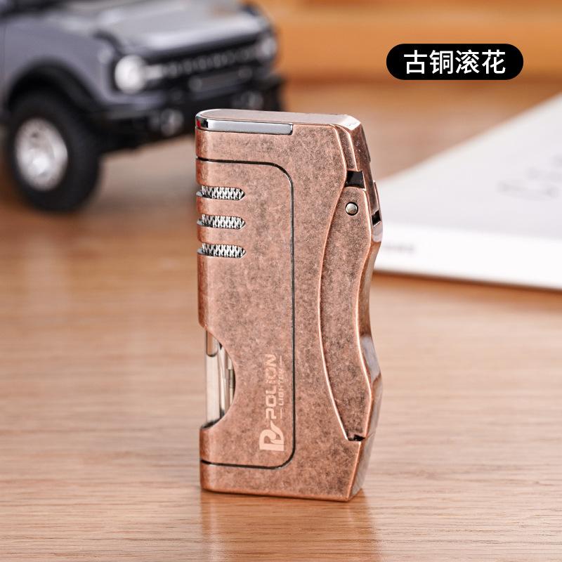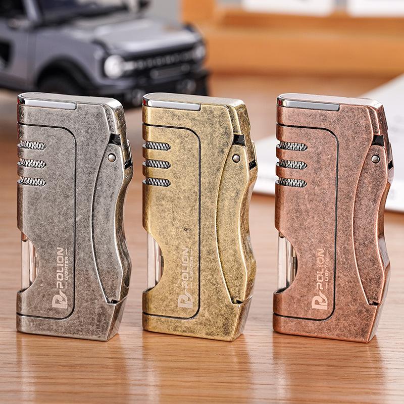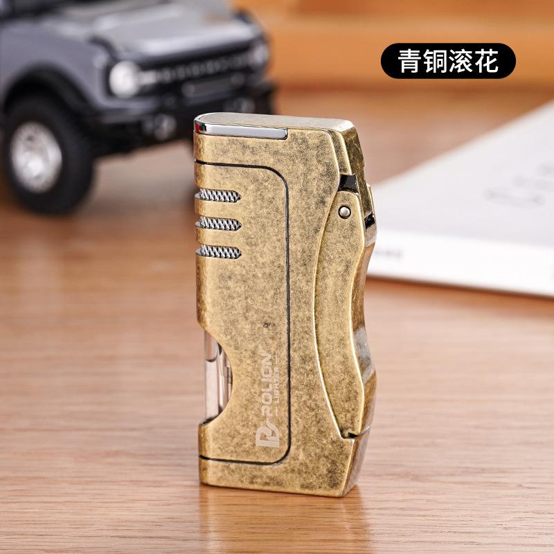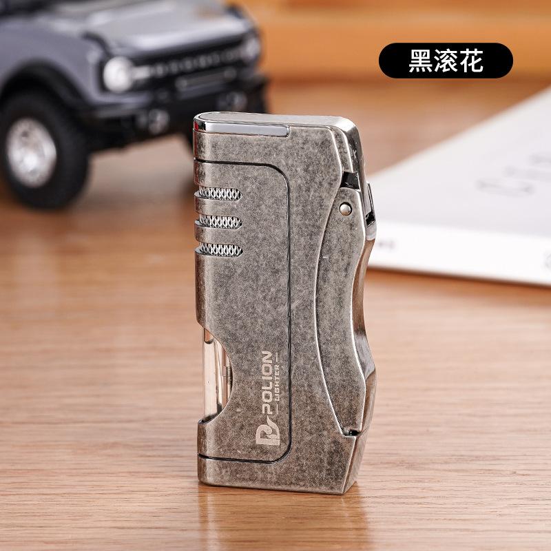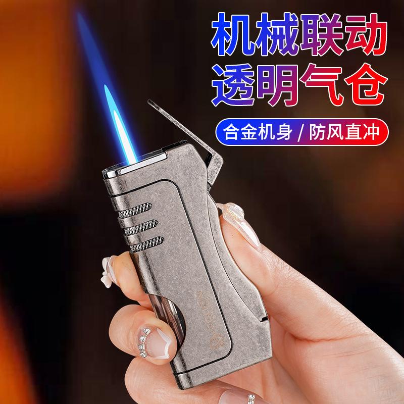 Inflável à prova de vento liso azul chama isqueiro estilo mecânico armazém de gás transparente personalidade criativa cross-border quente atacado