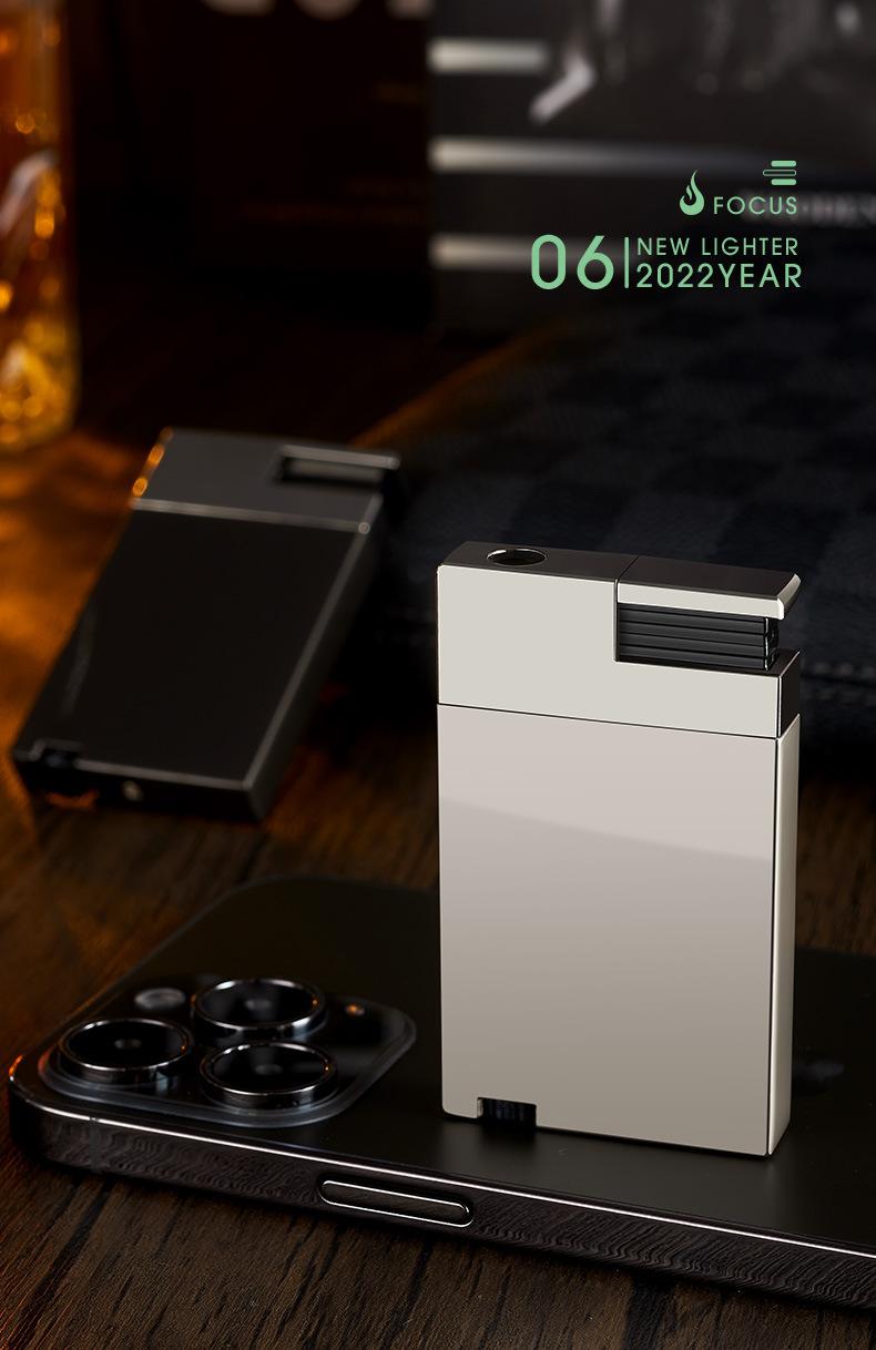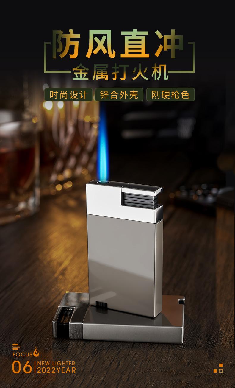 Venda a quente transfronteiriça tipo de prensa ultrafina à prova de vento direta isqueiro metal criativo mais leve presentes high-end
