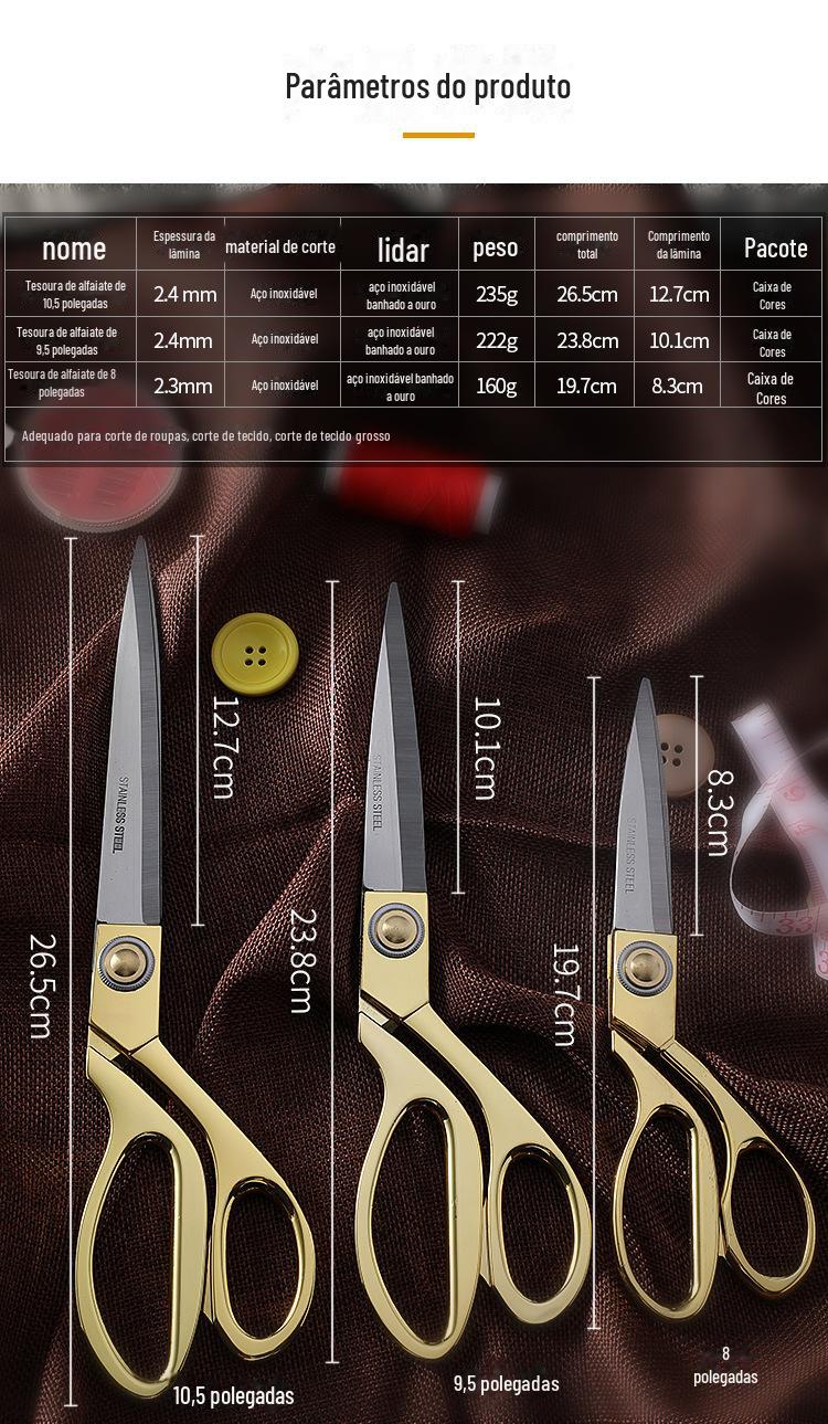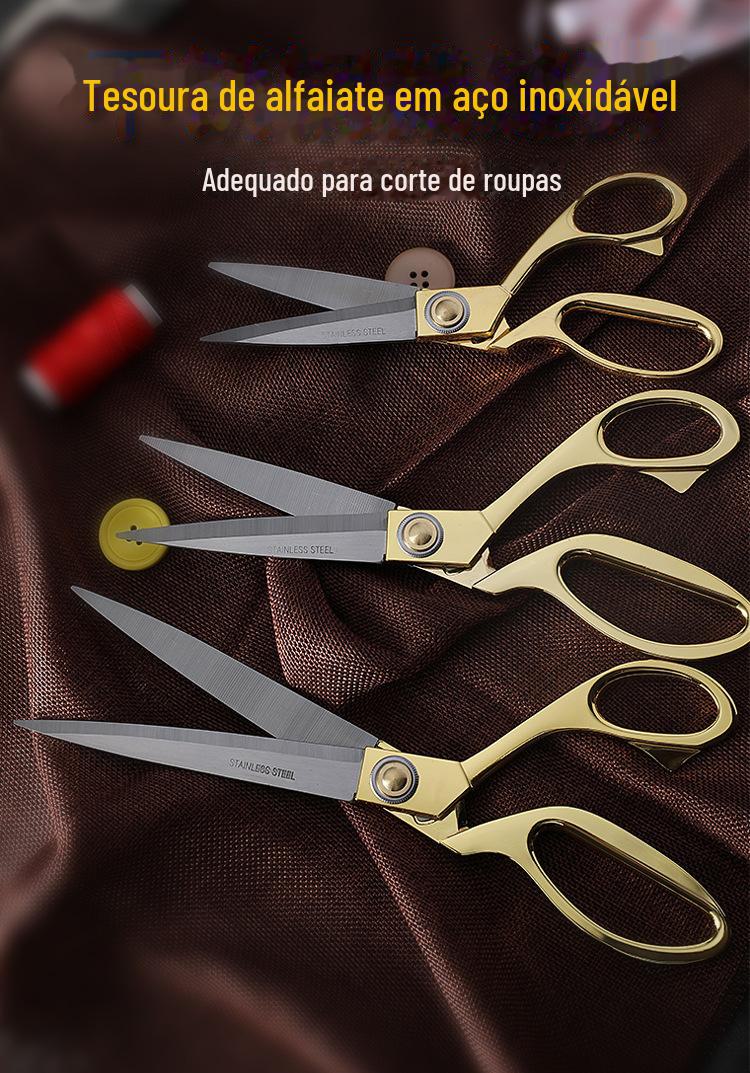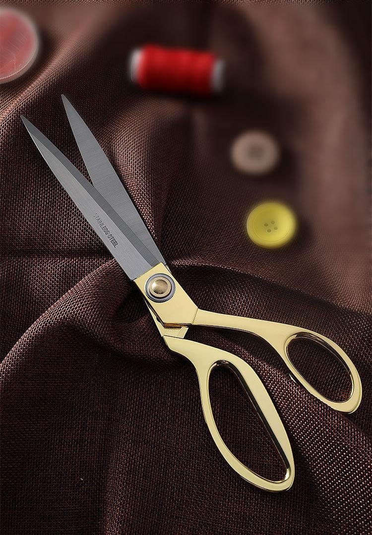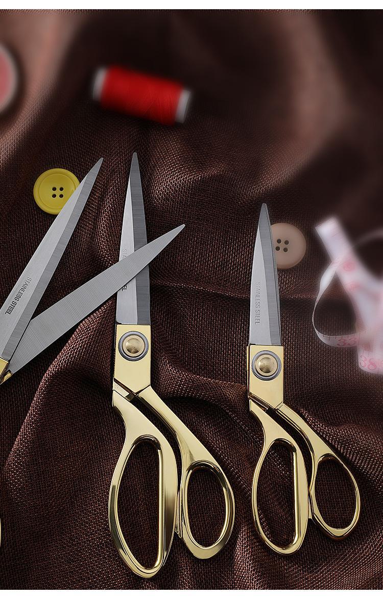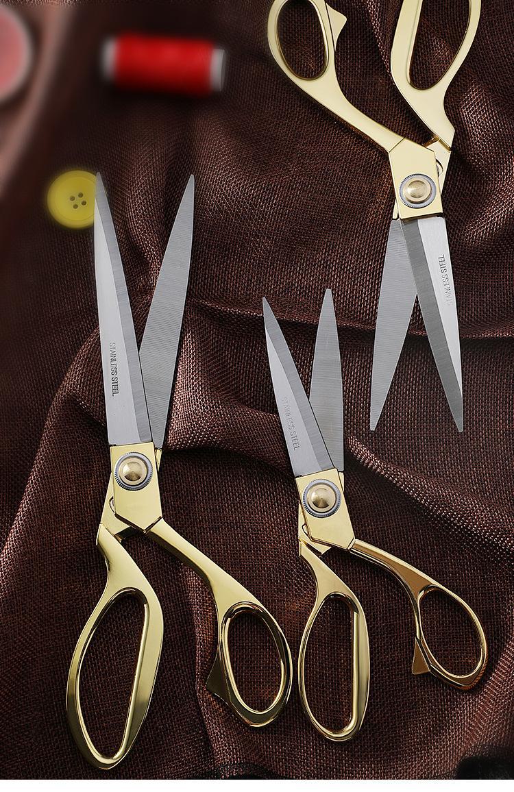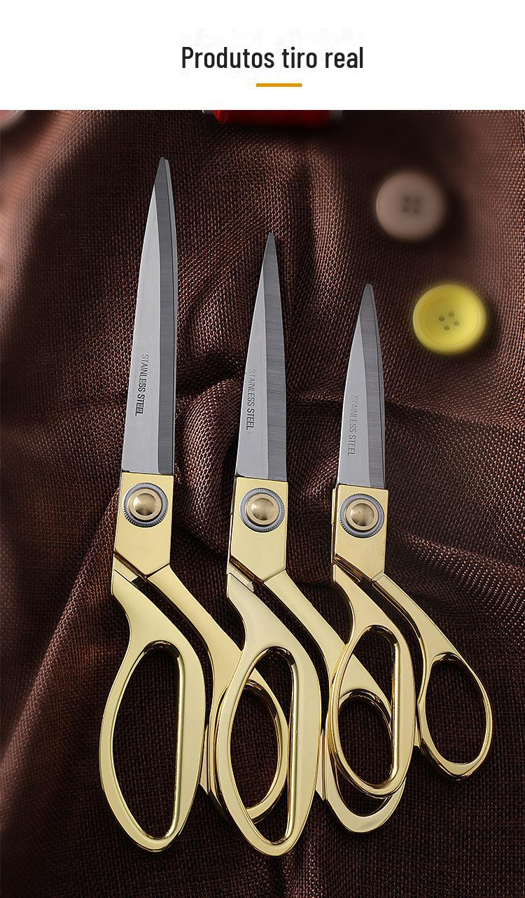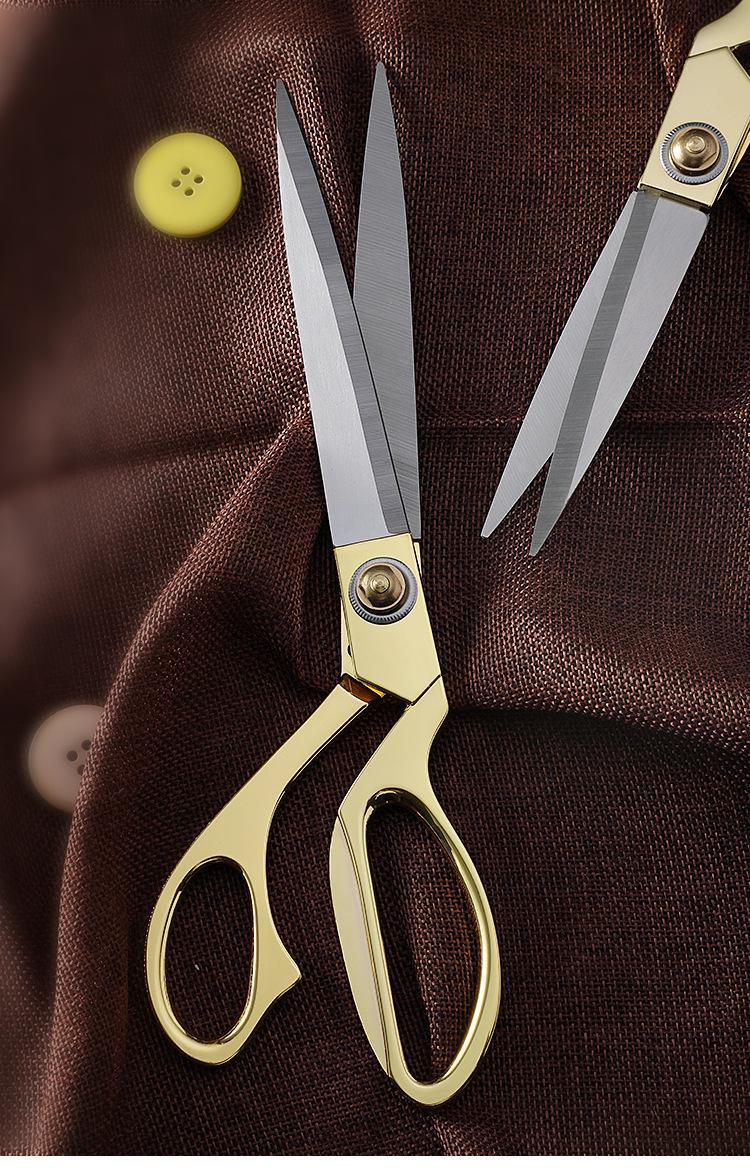Tesoura de alfaiate banhada a ouro, aço inoxidável, tesoura de roupas, costura, corte de roupas, tesoura grande, alfaiataria, tesoura de pano grande