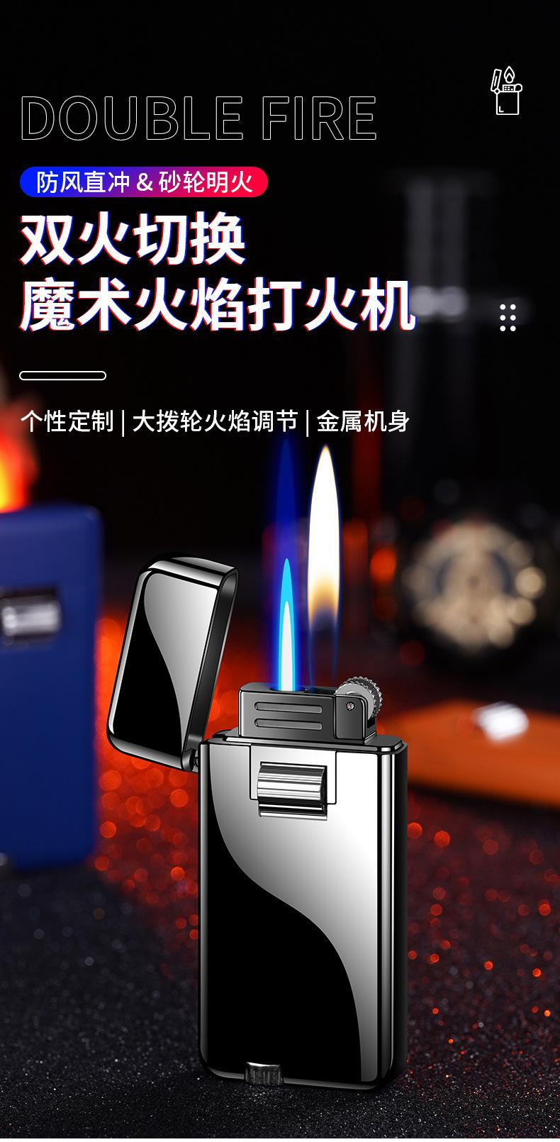 Novo isqueiro de rebolo inflável punção direta fogo aberto dupla conversão de fogo homens high-end presente isqueiro atacado cross-border Moda