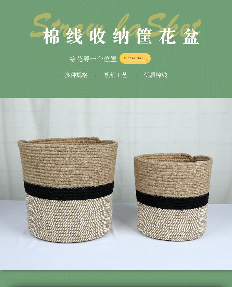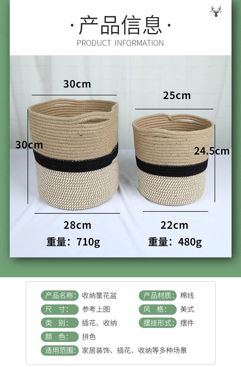 Cesta de armazenamento Cesta de armazenamento Corda de algodão trançada Vaso de flores Cesta de flores Artigos domésticos Cesta de roupas sujas Cesta de armazenamento de palha trançada Cesta de roupas sujas