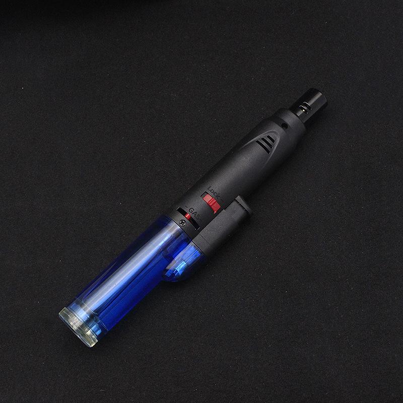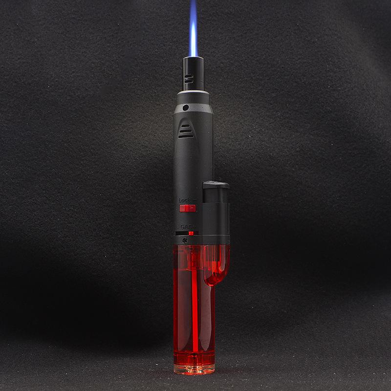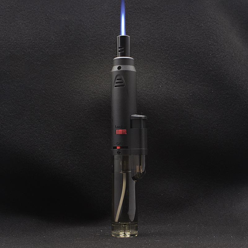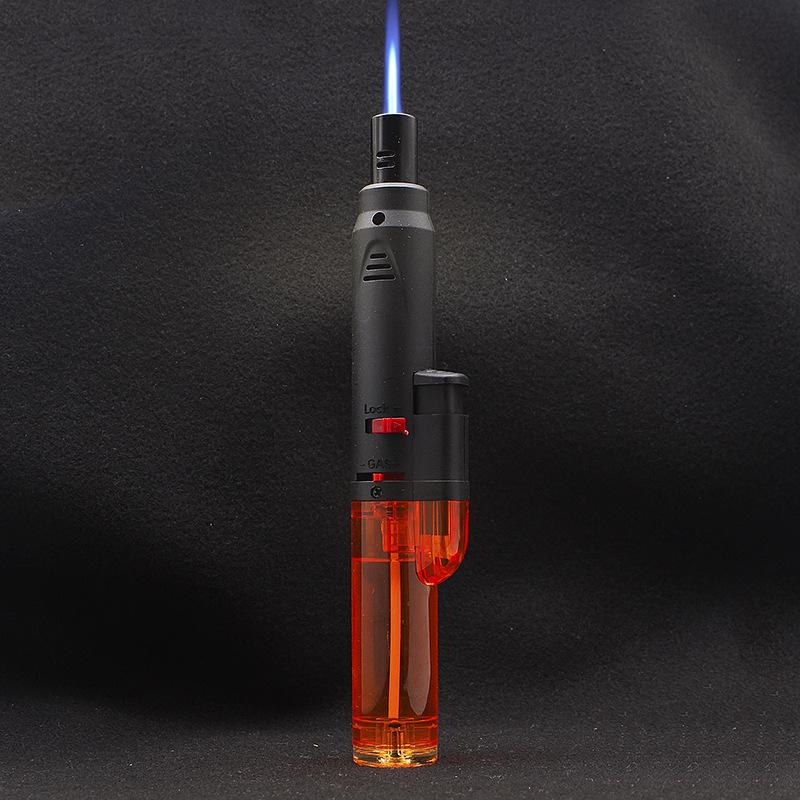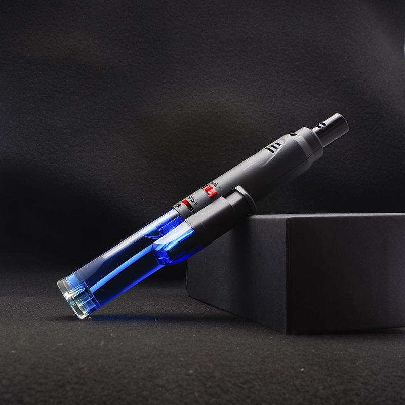 Longo transparente inflável soco reto isqueiro bloqueio canhão de fogo charuto moxabustão isqueiro teste escrito pistola de solda atacado