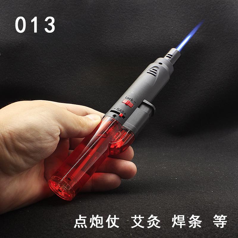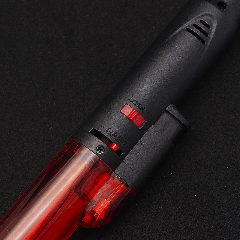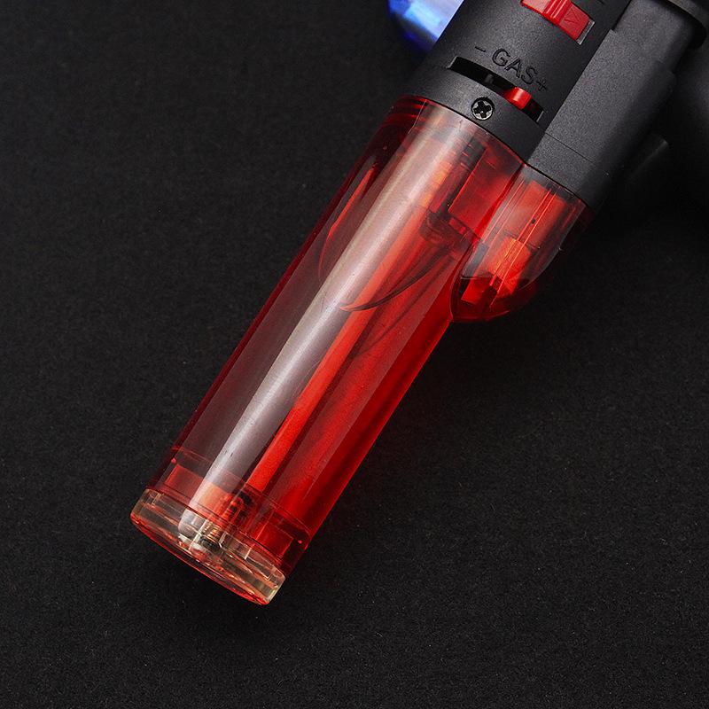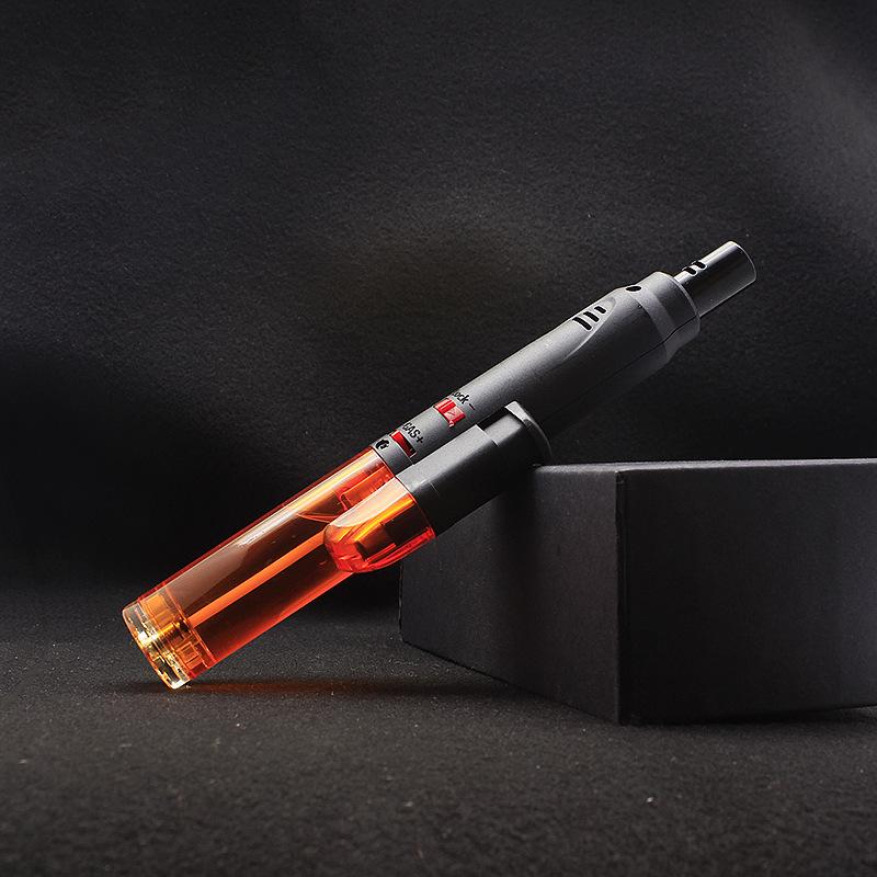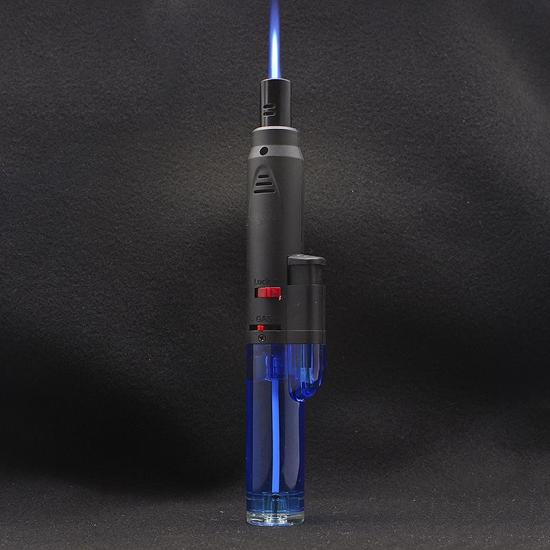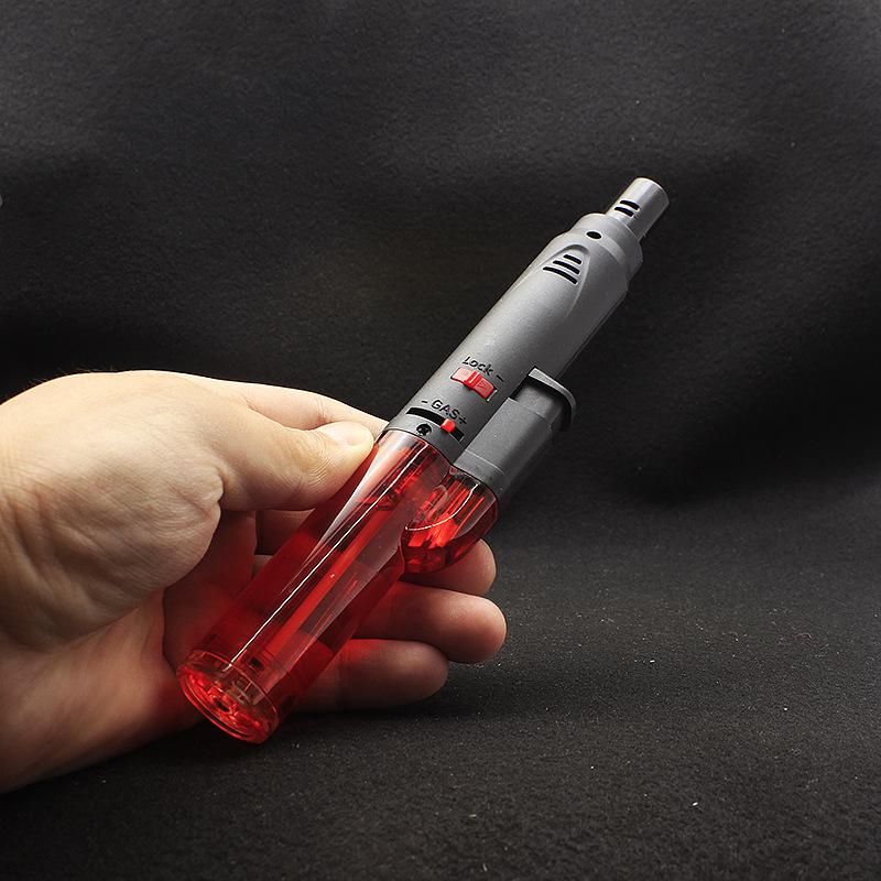 Longo transparente inflável soco reto isqueiro bloqueio canhão de fogo charuto moxabustão isqueiro teste escrito pistola de solda atacado