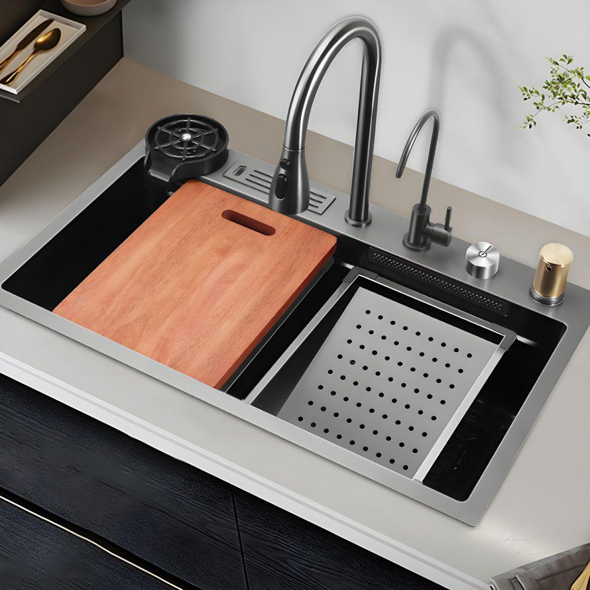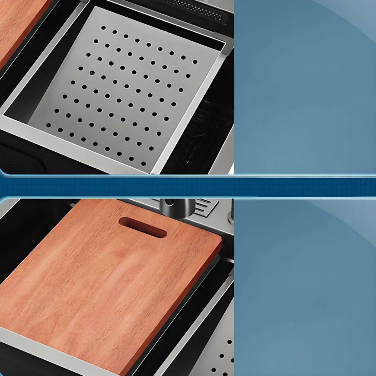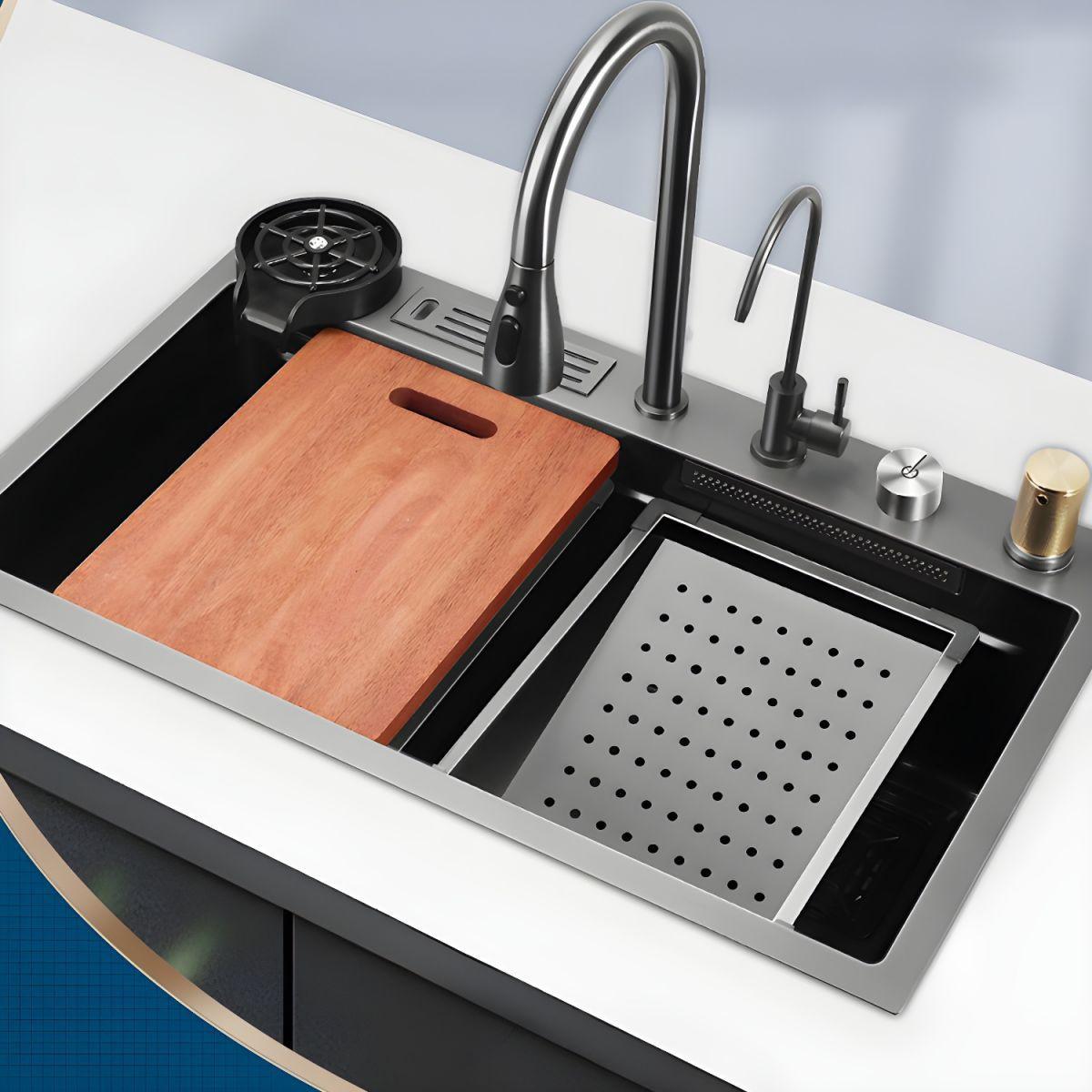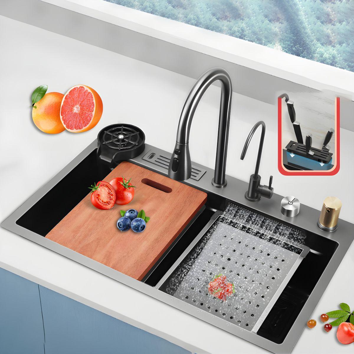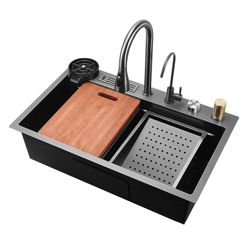 Pia de chuva voadora de cozinha com suporte de faca nano preto engrossado multi-funcional vegetal pia pia mesa de controle de mesa de água lençol freático